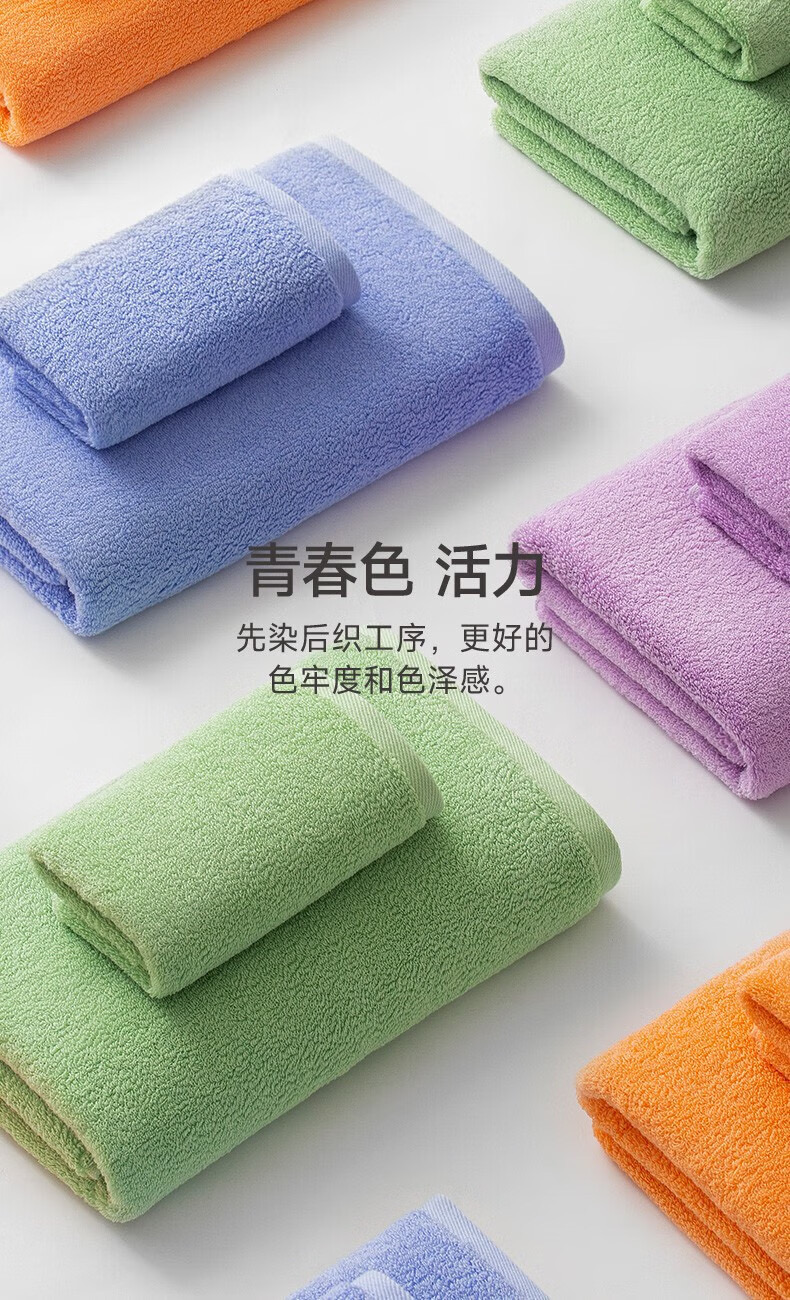 最生活毛巾3A抗菌100%棉新疆棉洗脸吸水毛巾青春款系列【3条装】