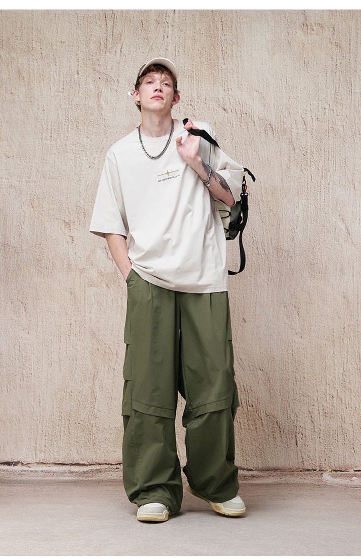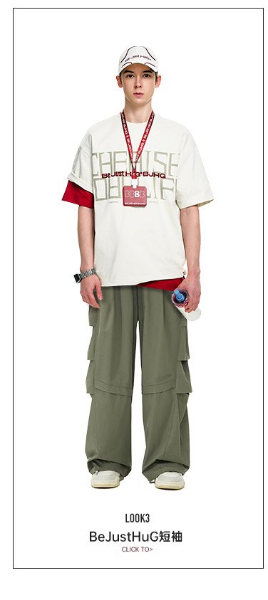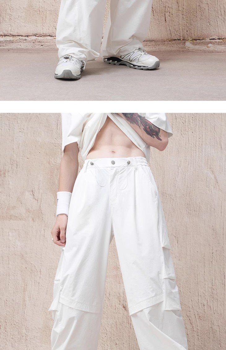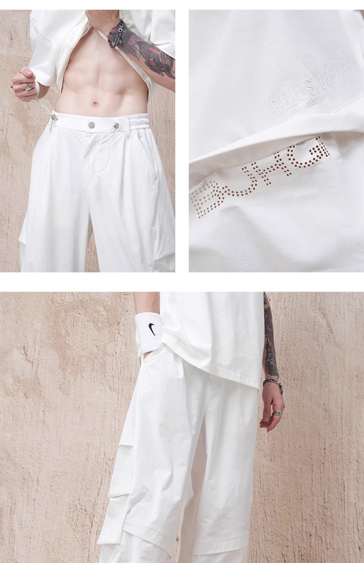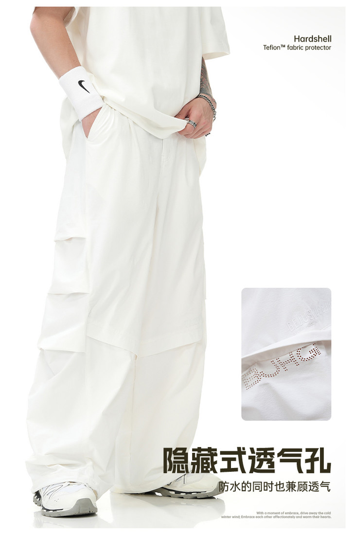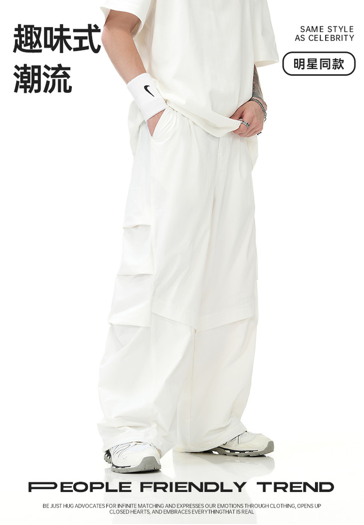 【王栎鑫同款】BJHG新款户外白色工装裤子男款春秋运动阔腿伞兵休闲裤
