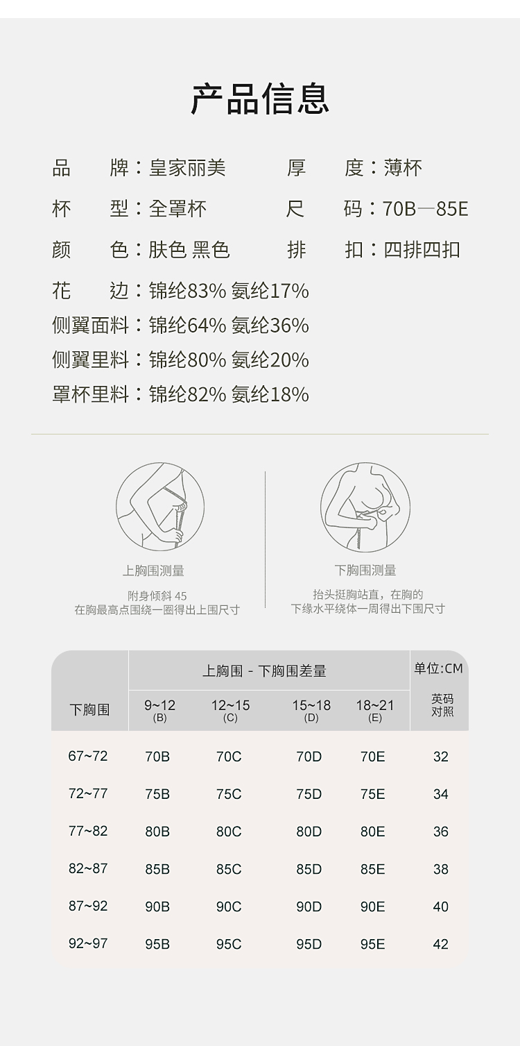 【秒杀品不退不换】皇家丽美调整型内衣无钢圈聚拢收副乳薄杯文胸WW1816-1