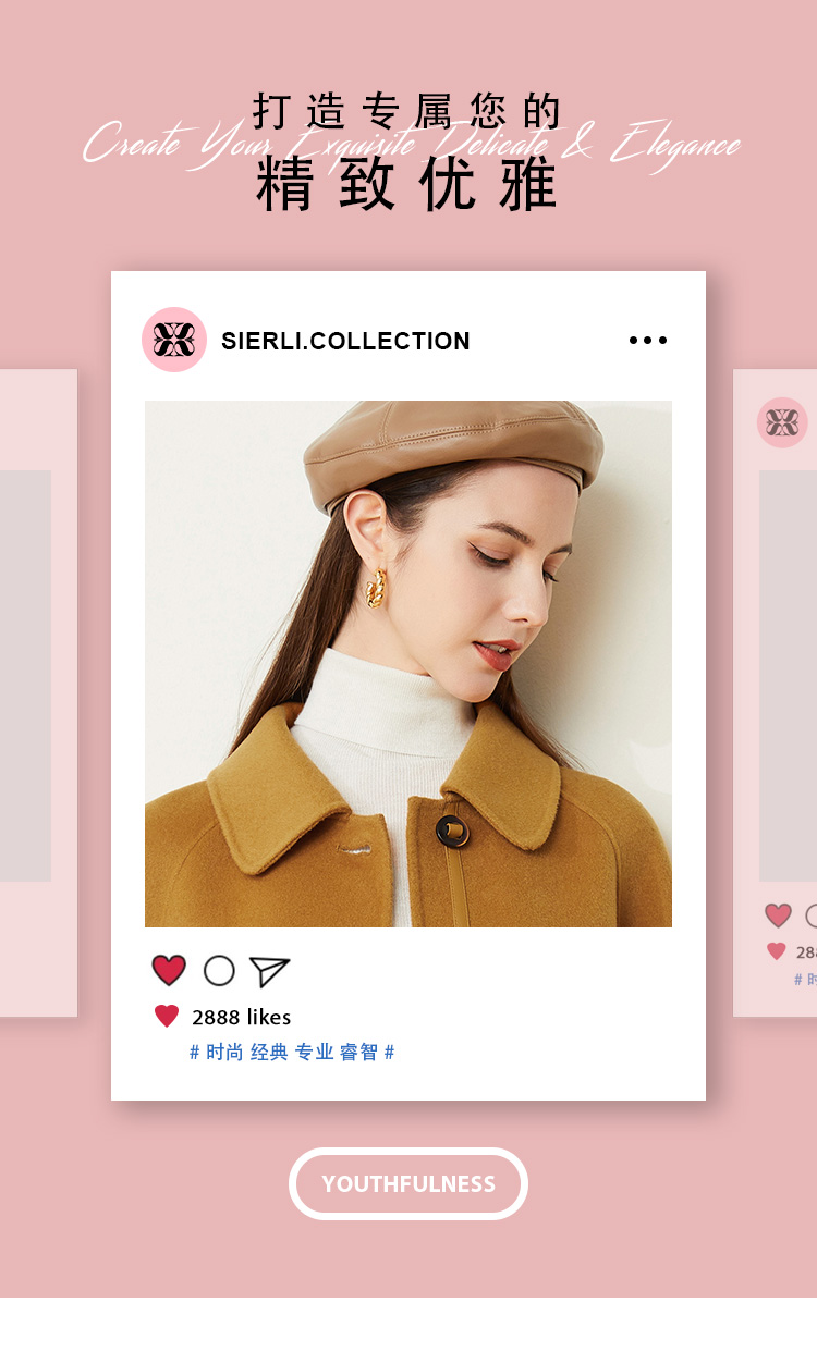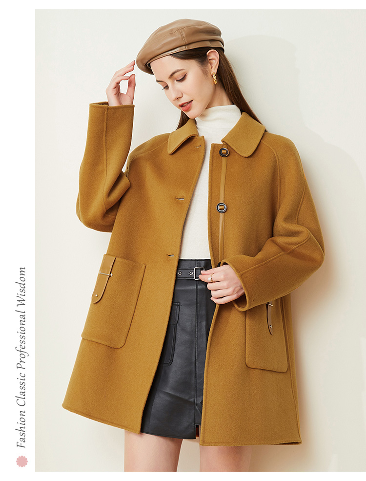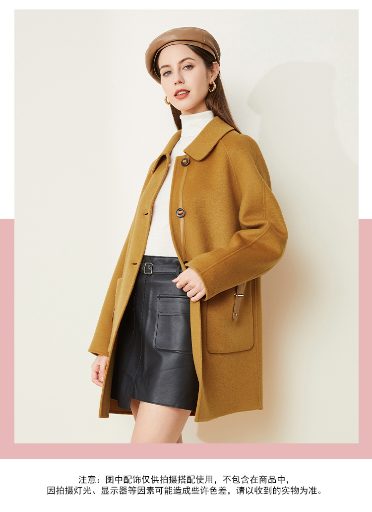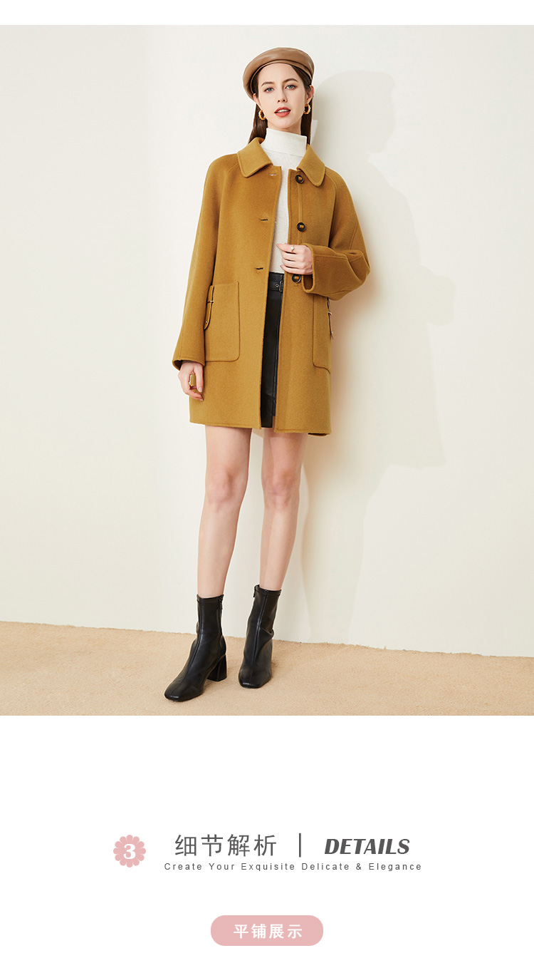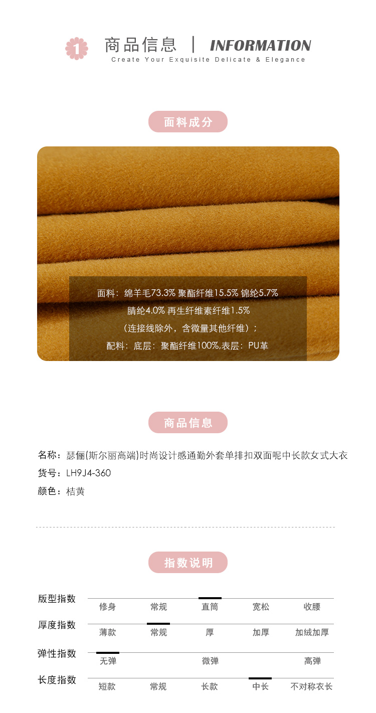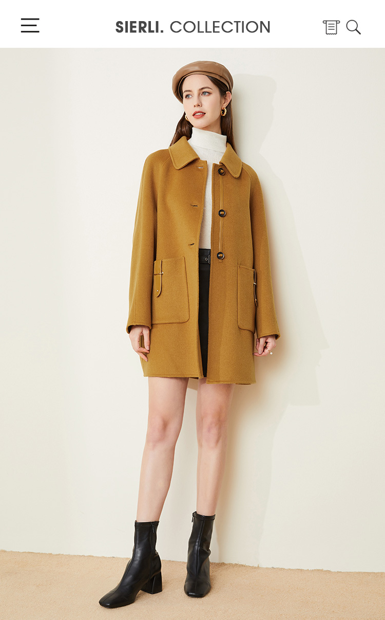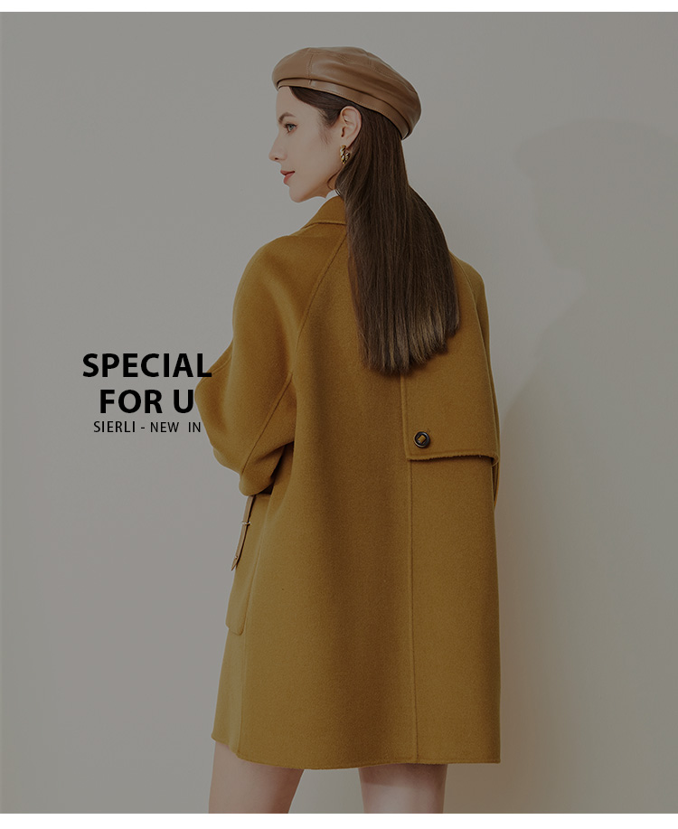 LH9J4斯尔丽2021瑟俪秋冬新款时尚感通勤外套单排扣双面呢中长款大衣
