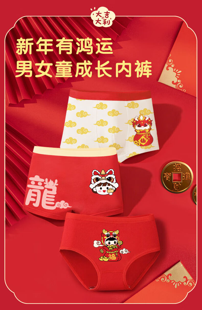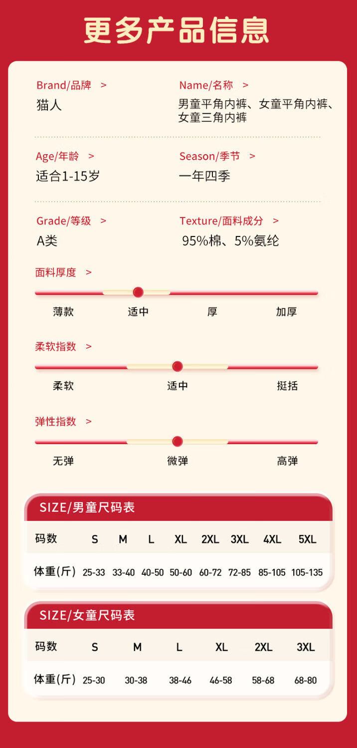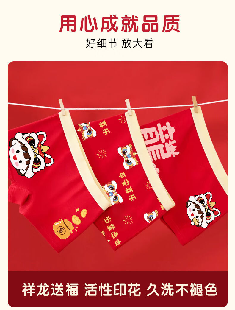 猫人龙年儿童男孩女孩平角纯棉内裤 XHR