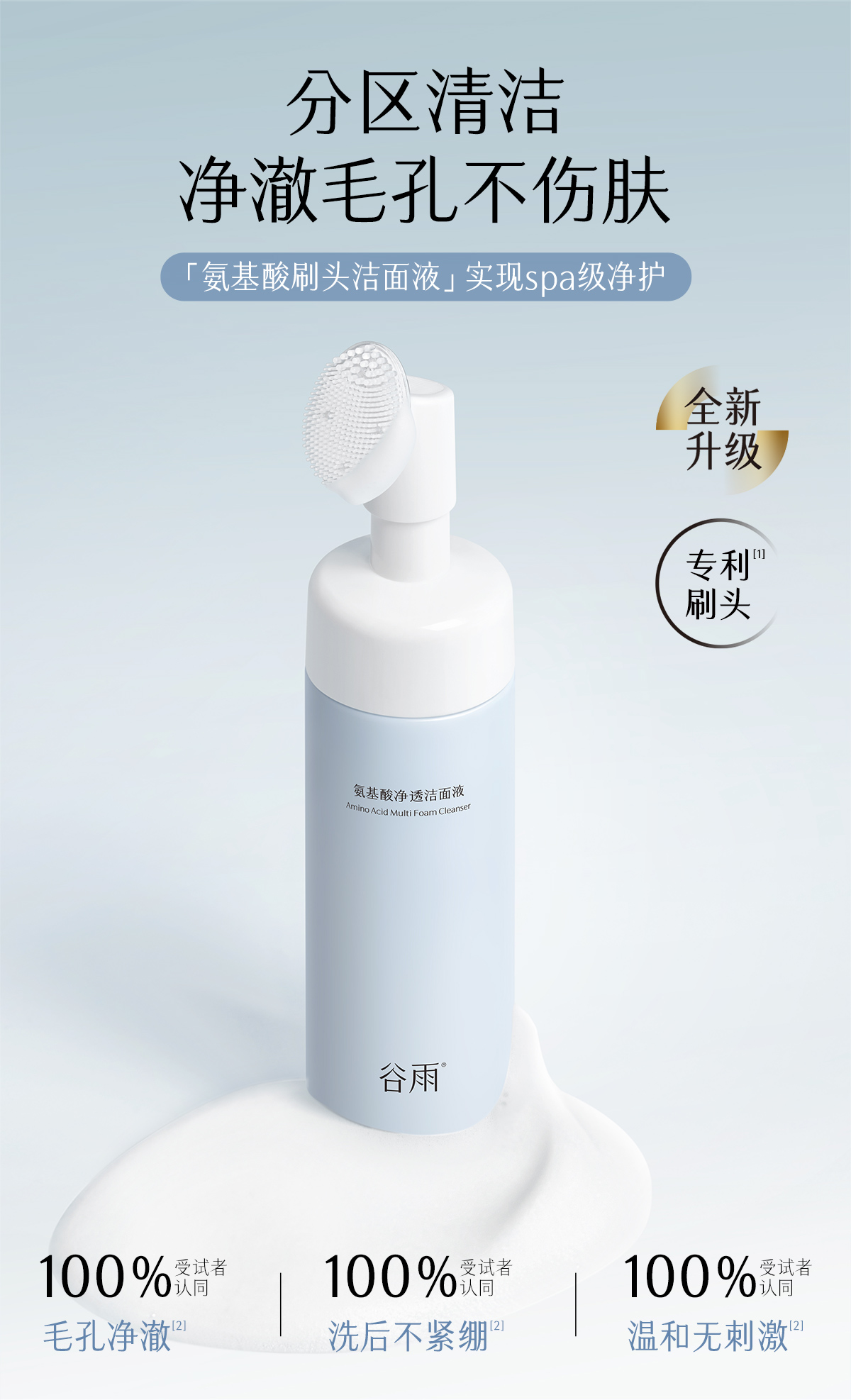 【分区清洁不伤肤】谷雨氨基酸刷头洁面 温和净透洁面液