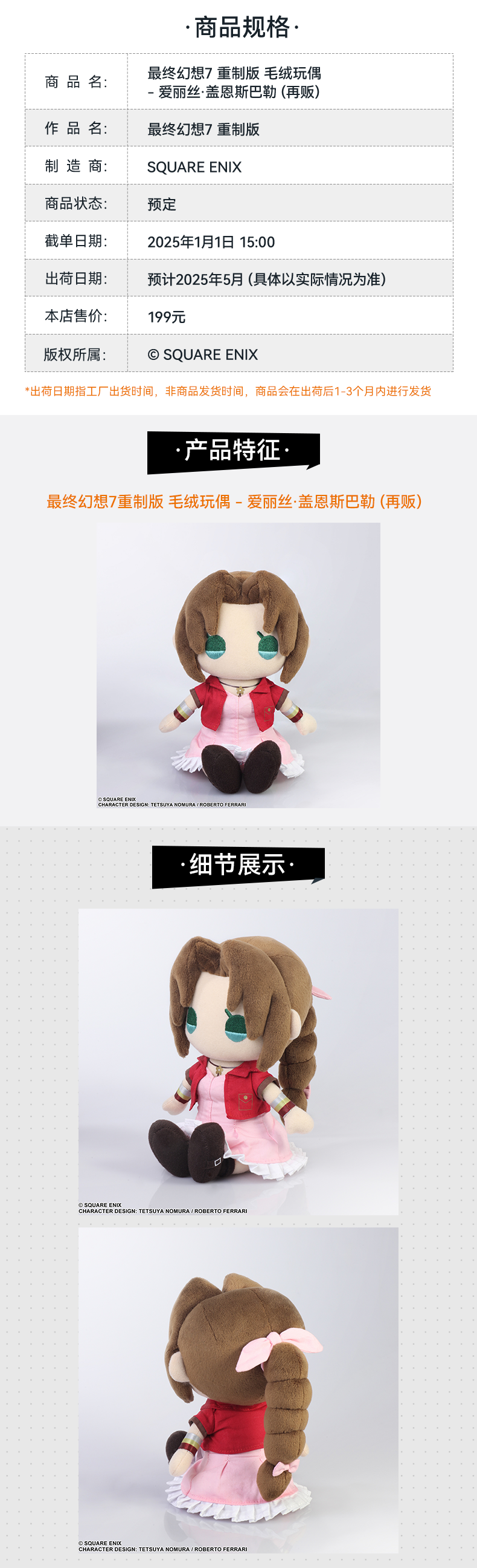【GSC补款】最终幻想7重制版 毛绒玩偶 爱丽丝·盖恩斯巴勒/蒂法·洛克哈特