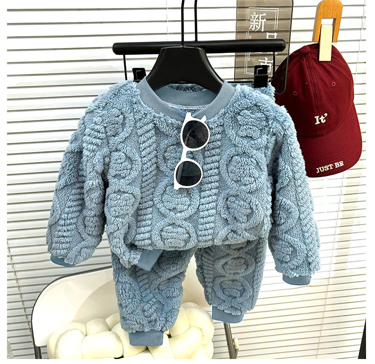 儿童秋冬法兰绒睡衣套装韩版男童加绒加厚家居服女童保暖内衣套装