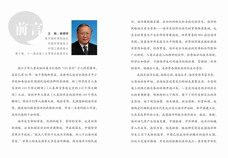 主编路甬祥是原中国科学院院长,领衔编著者王小波2014年被中国科协聘为全国海洋学首席科学传播专家。