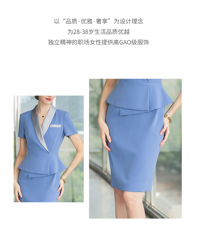 IWY/蓝色缎面拼接都市时尚设计感职业女士西装连衣裙白领工作服上班职业装Q690