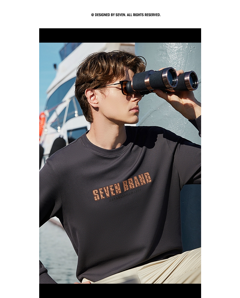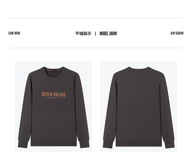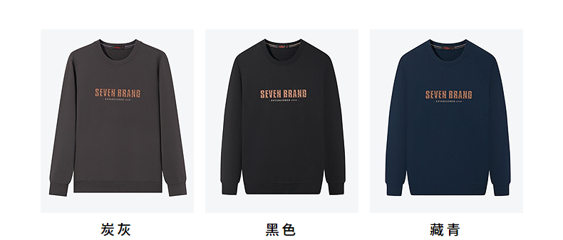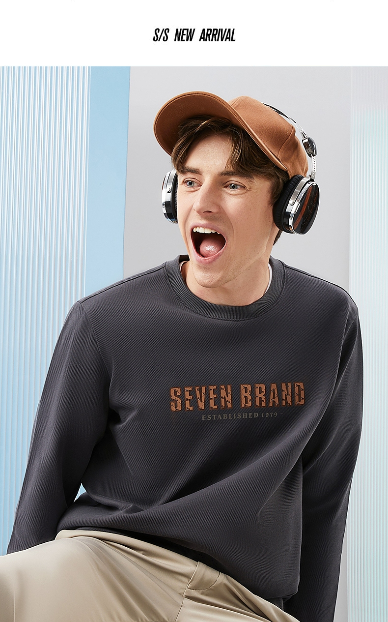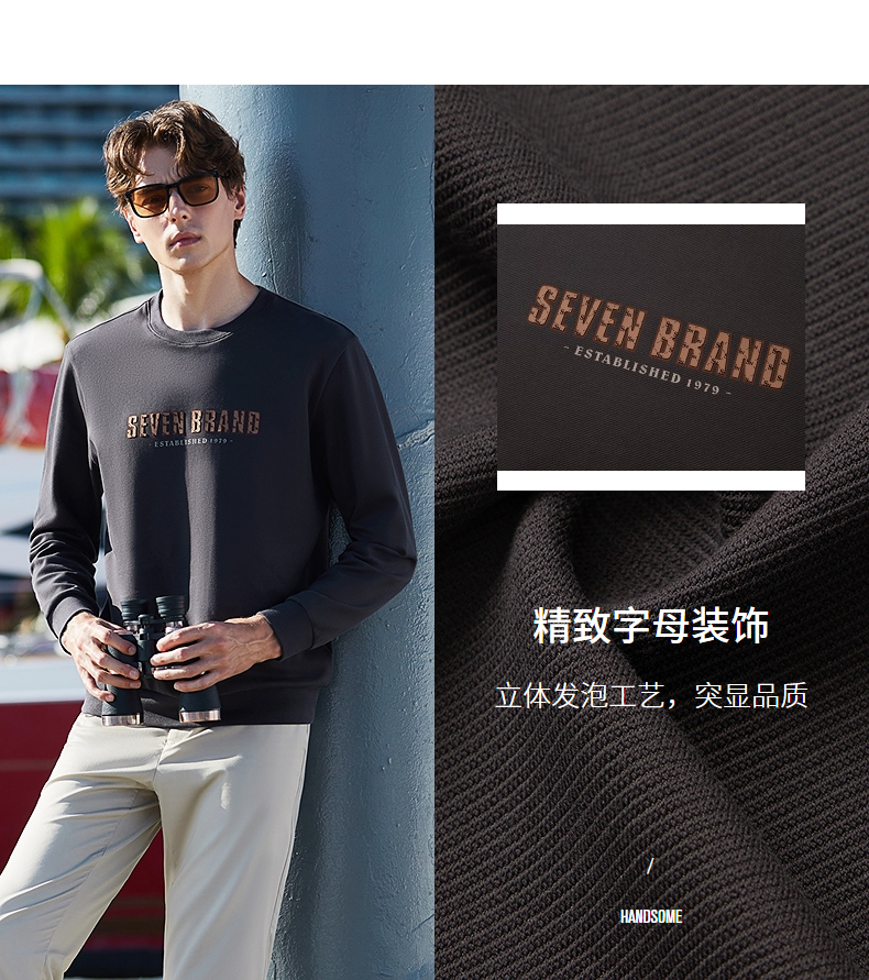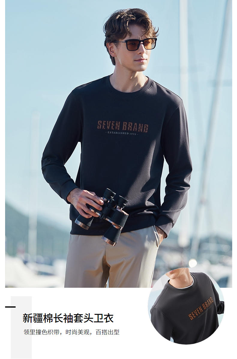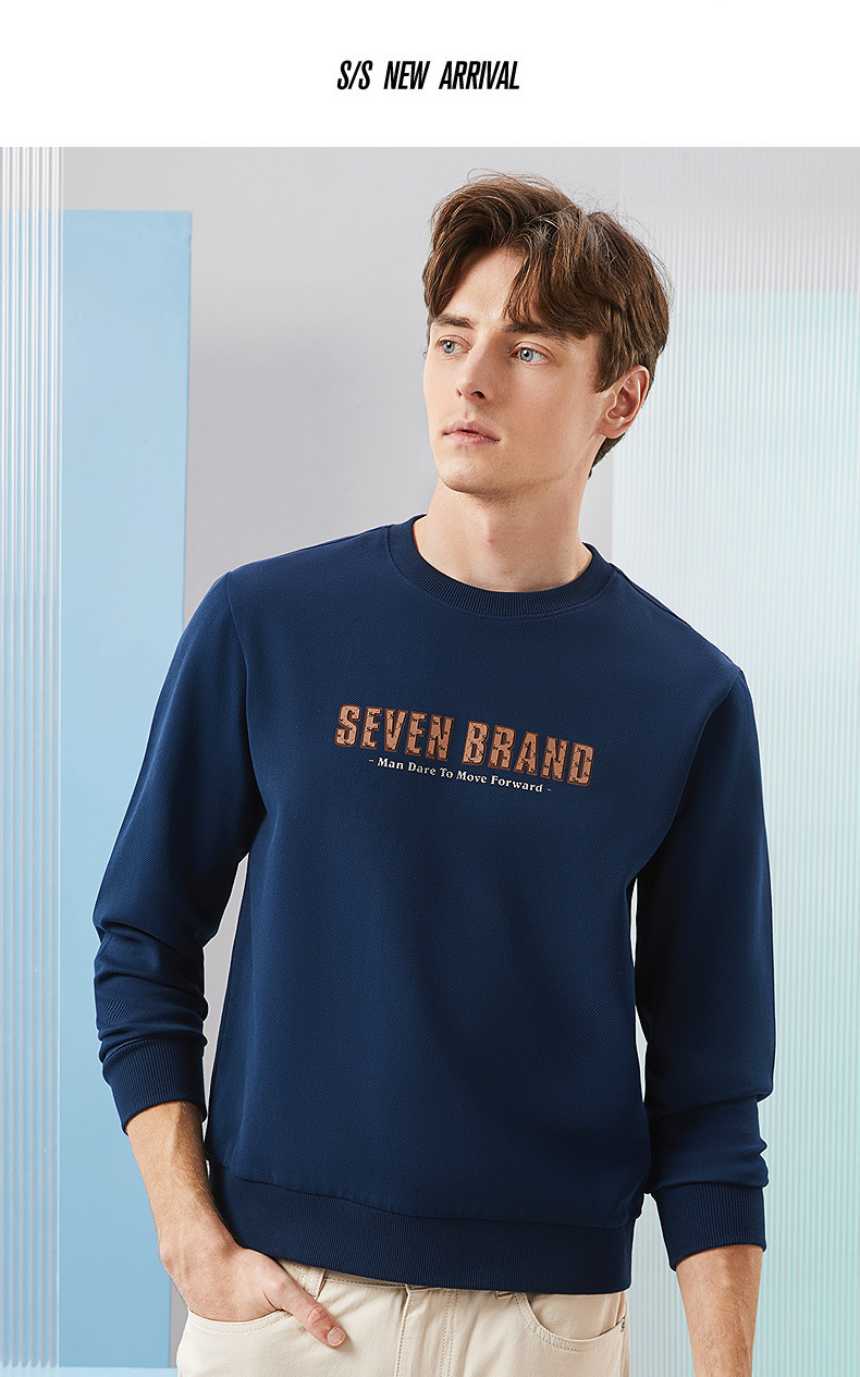 柒牌男士圆领卫衣2024春季新款时尚潮流青年休闲百搭套头长袖上衣 126W70140