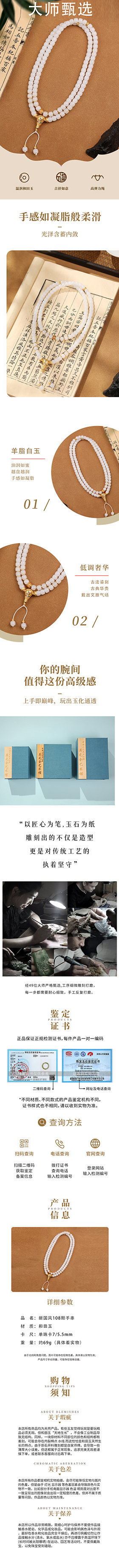 和田玉 108 颗多圈手串 国风金饰配饰佛珠项链 百搭转运手
