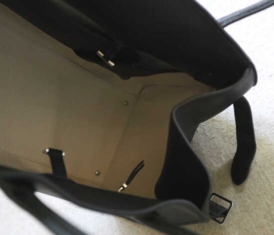 这两种规格 都是敞开式包口 里面有个小搭扣 两侧可收皮绊 包底四角防磨钉