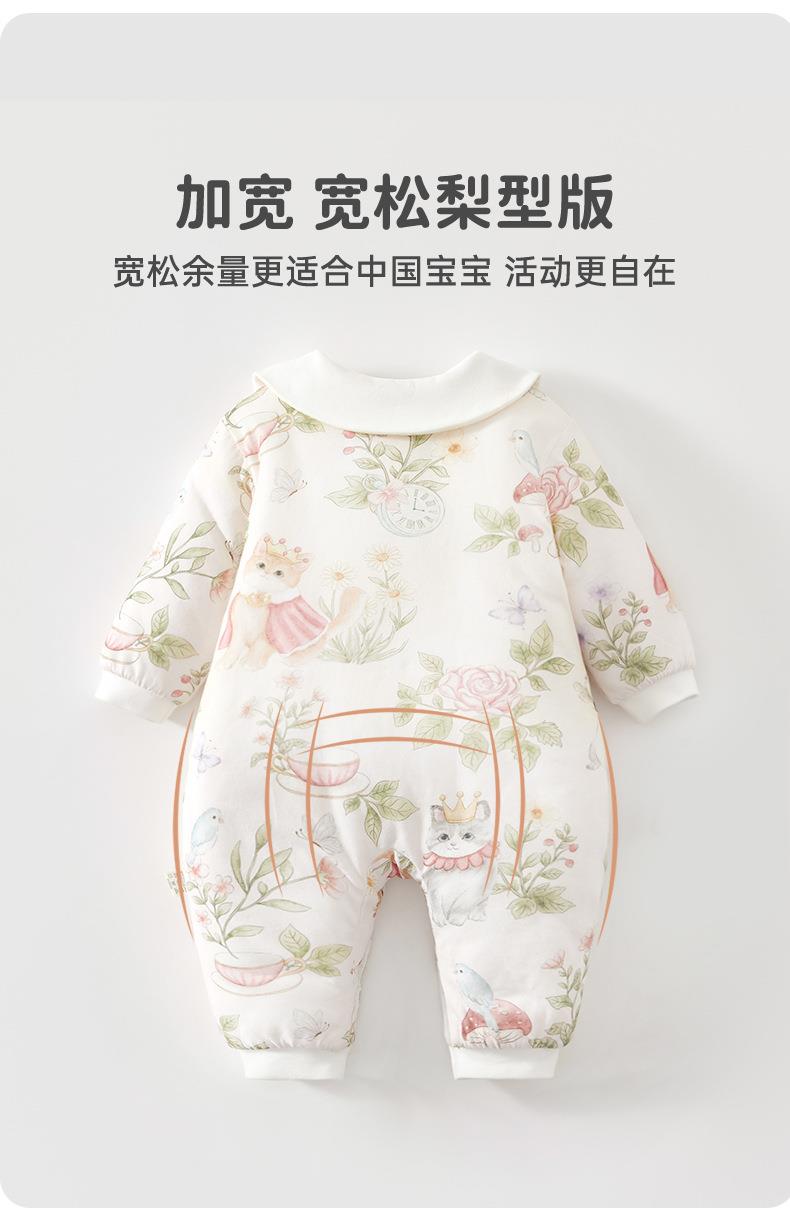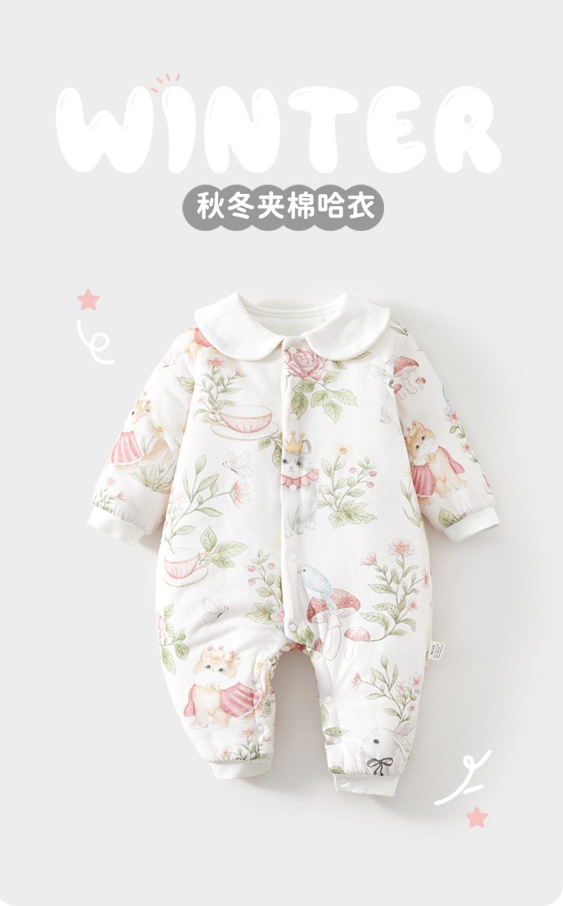 婴儿夹棉连体衣150克宝宝秋冬季a类加棉爬爬服哈衣外出新生儿棉服