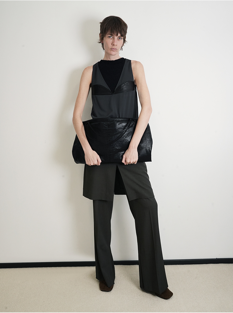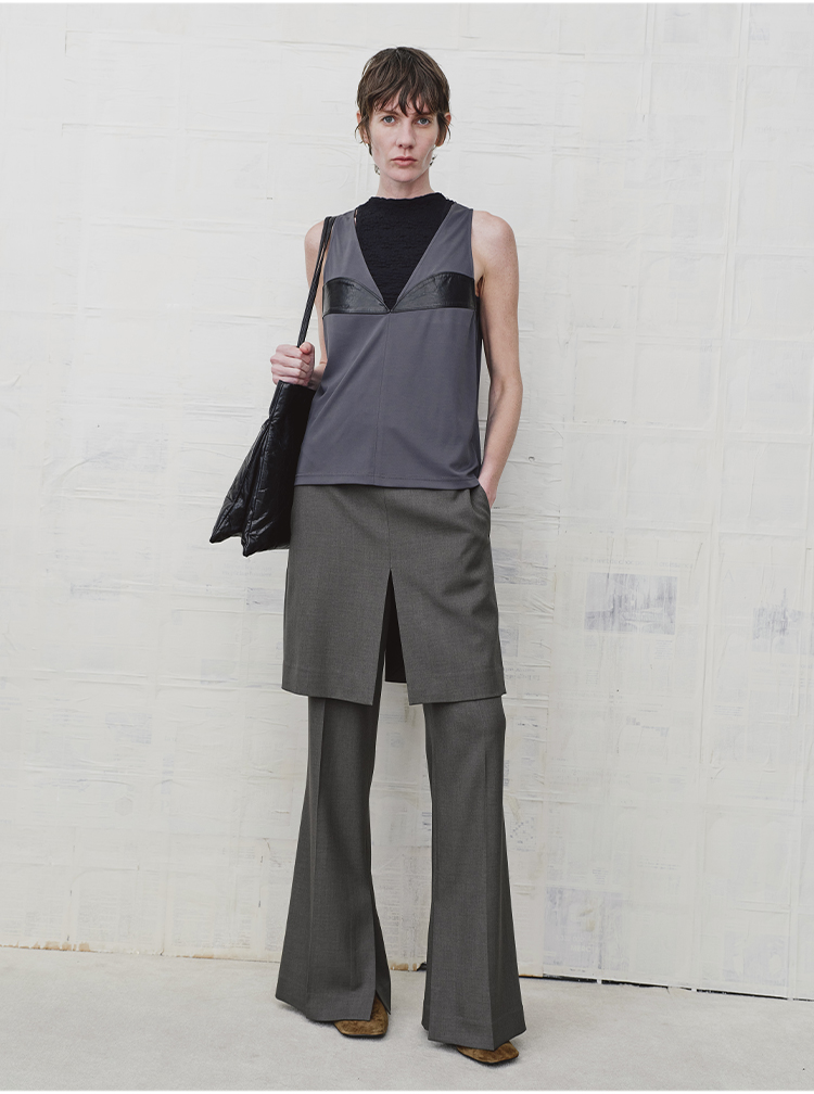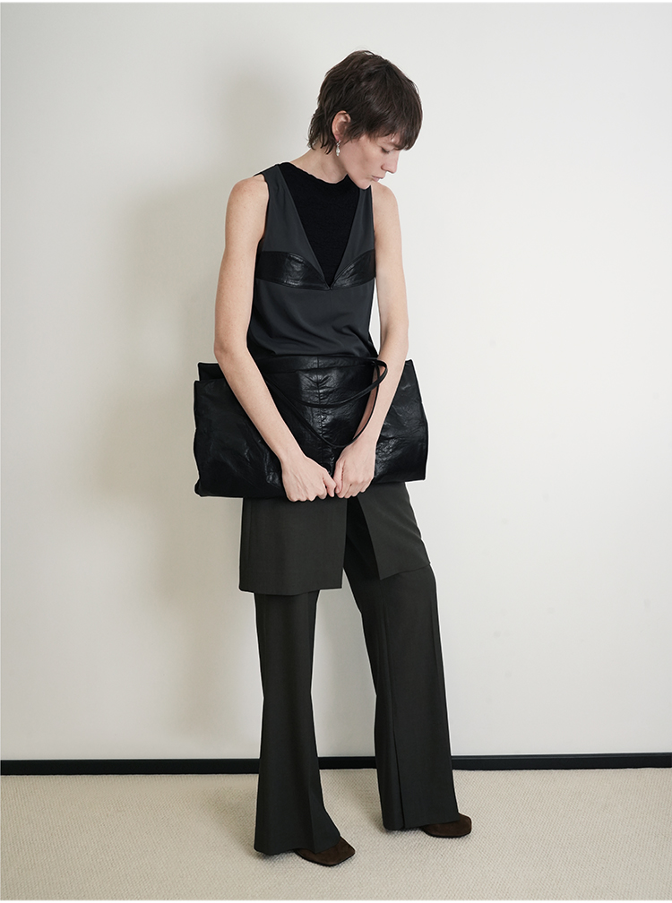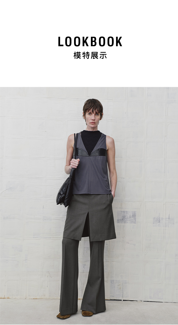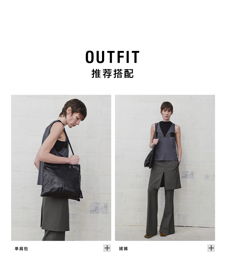 HIDEMI 设计感油蜡皮拼接套装深V领无袖背心上衣