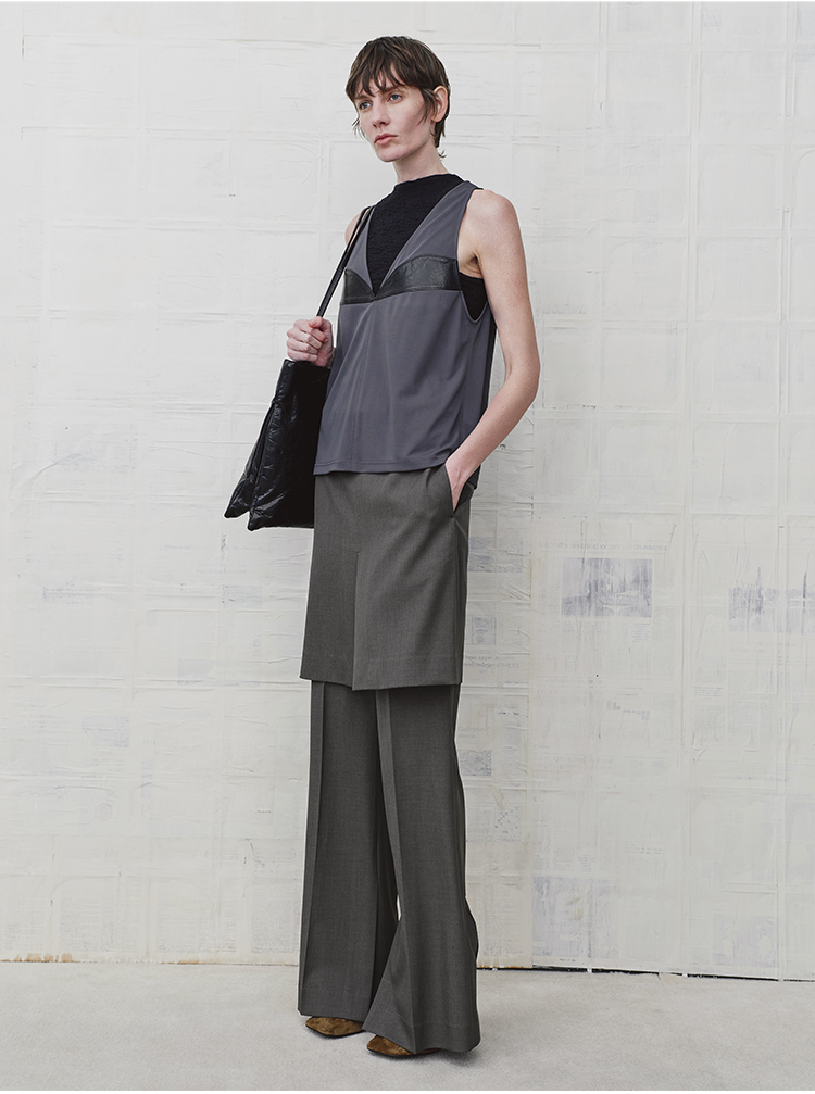 HIDEMI简约设计感v领系带套装 上衣/长裤