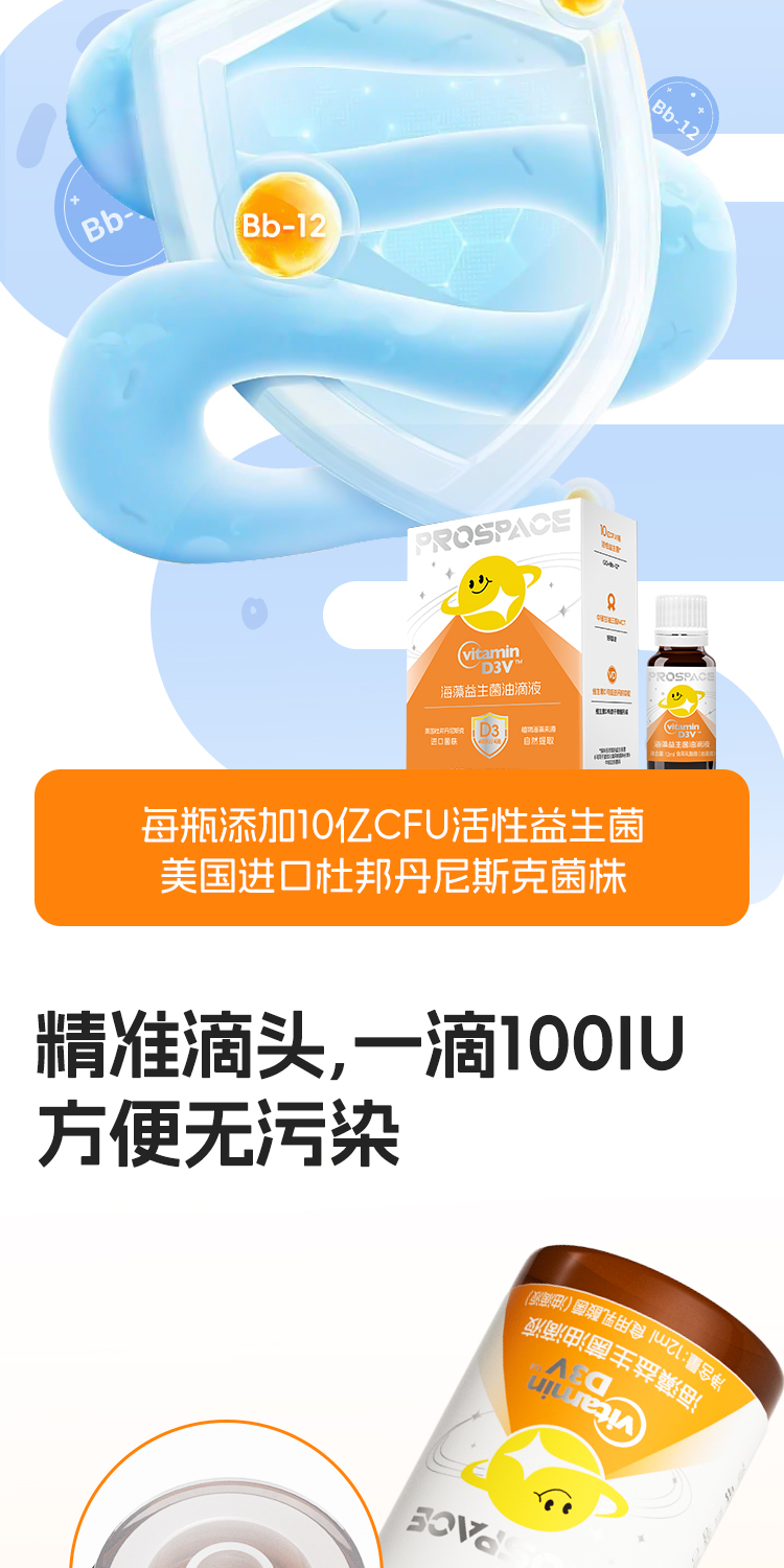 ³ 买6送1【益生菌维生素D油滴剂】每滴100VD+动物双歧杆菌乳亚种Bb-12+鼠李糖乳酪杆菌GG 12ml/瓶 XN03-CRMM-HPK(HOT)