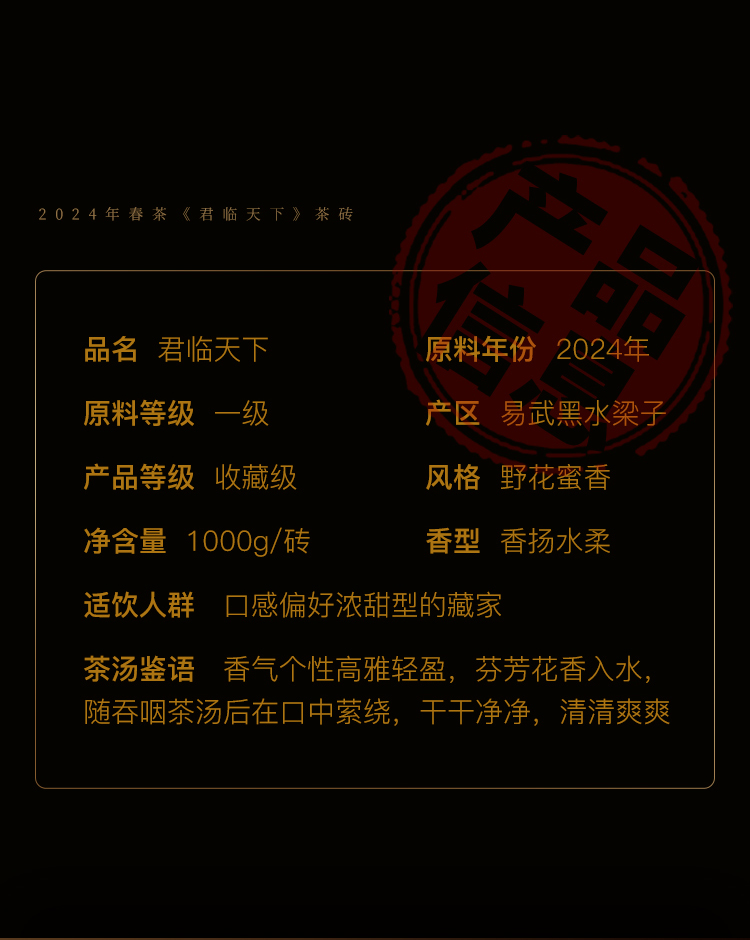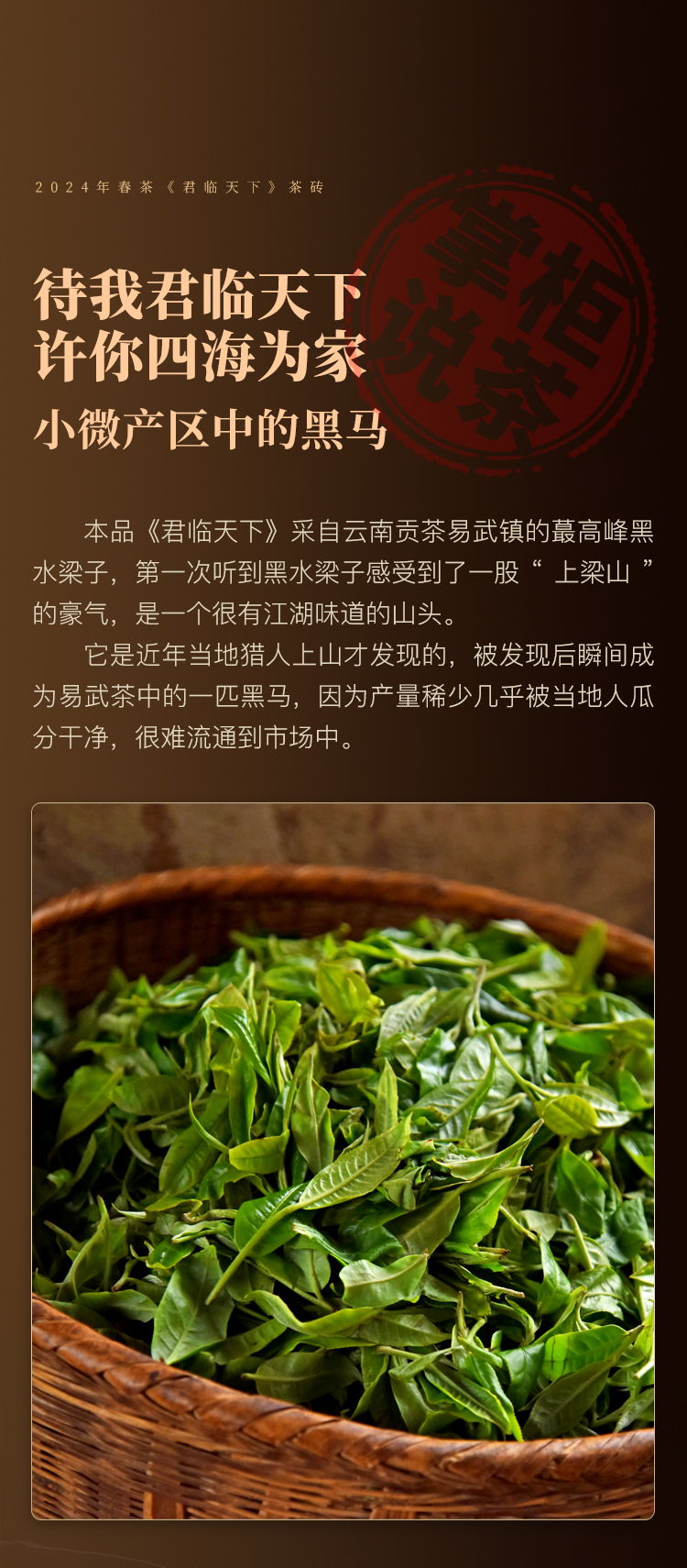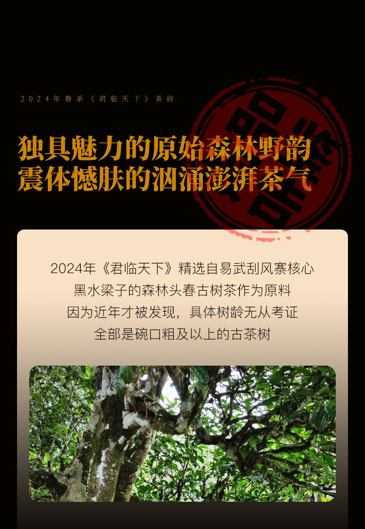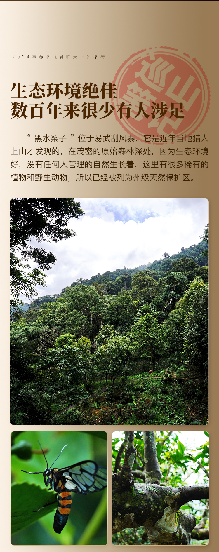 【君临天下】2024年头春头采易武刮风寨核心黑水梁子古树茶,精微高端产区一匹黑马!独具魅力的原始森林野韵,大分量1000克/砖 拍5发6