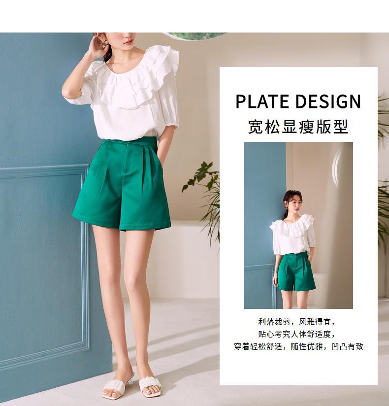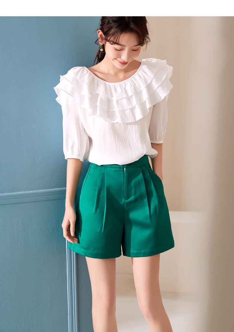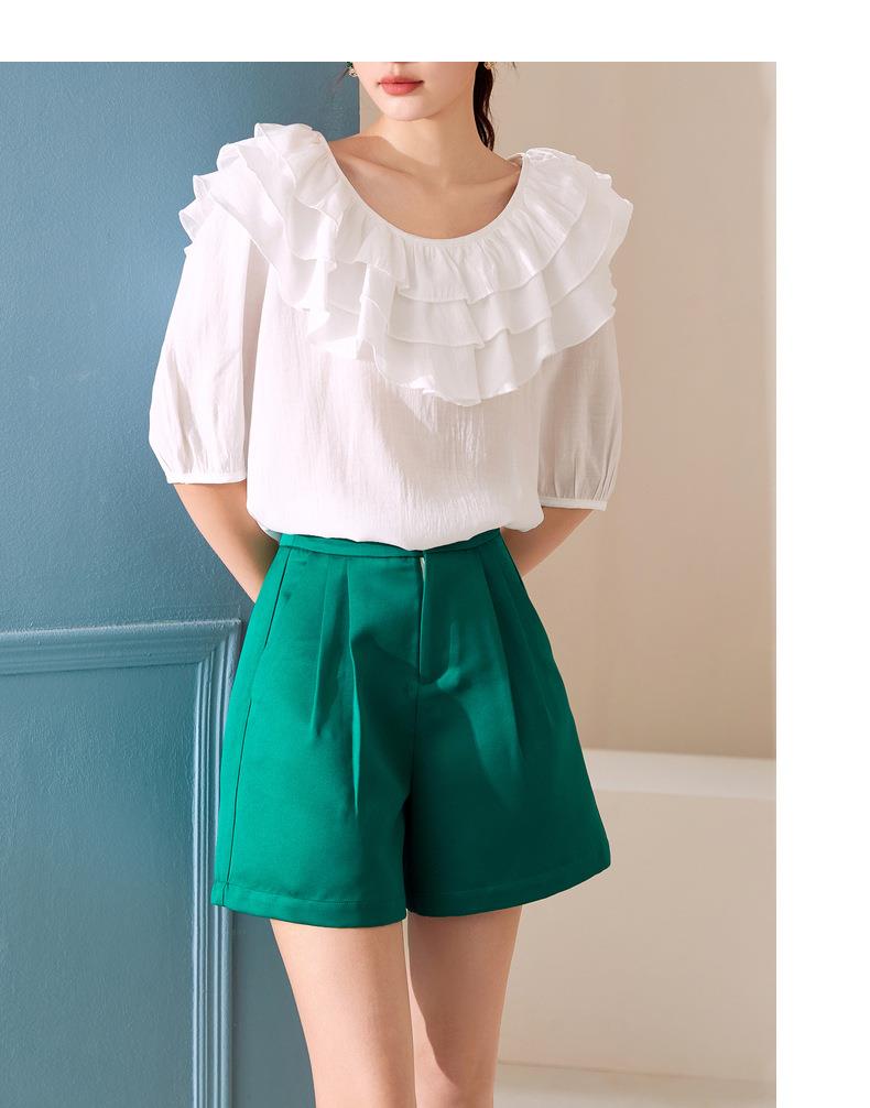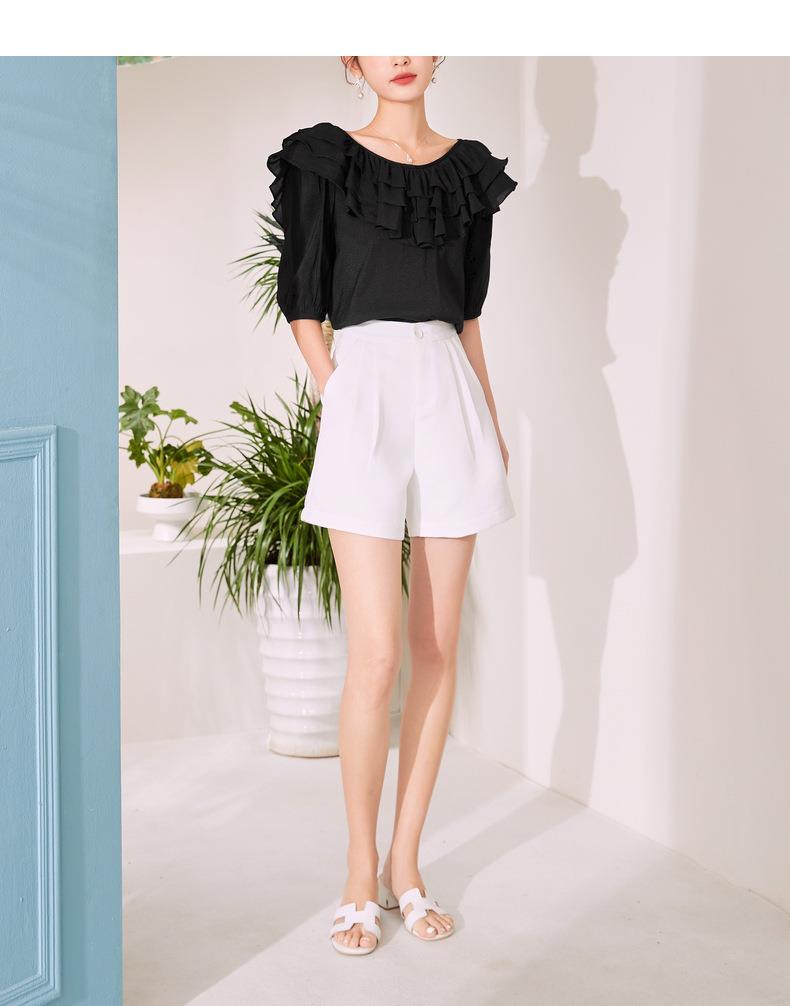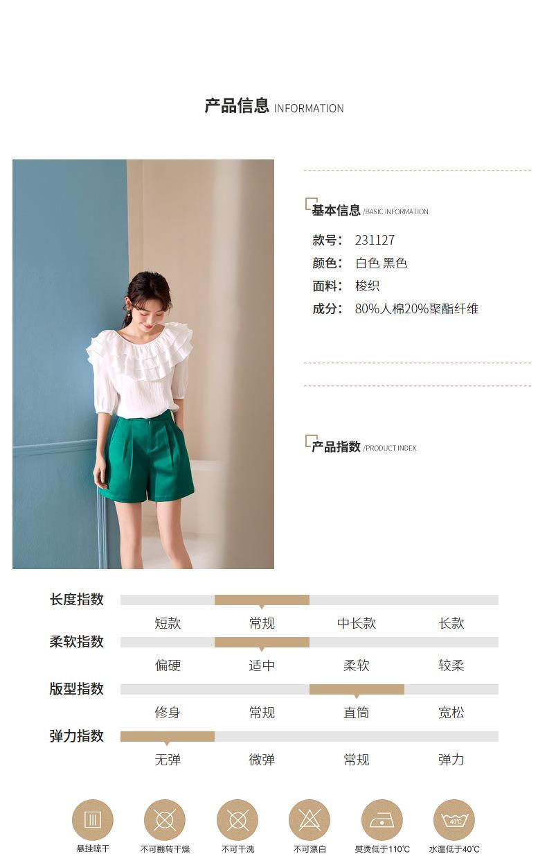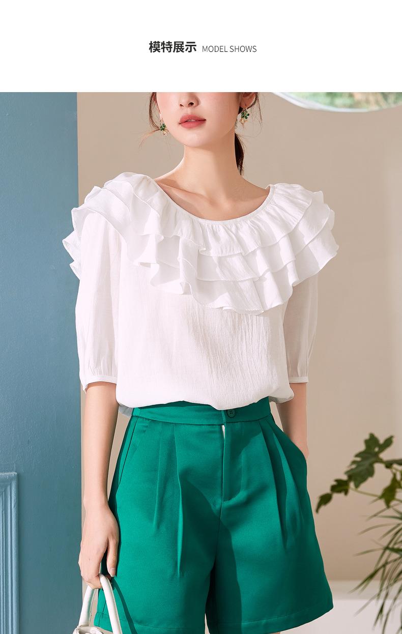 百姿 新款时尚荷叶边上衣气质露背短袖雪纺衫女231127