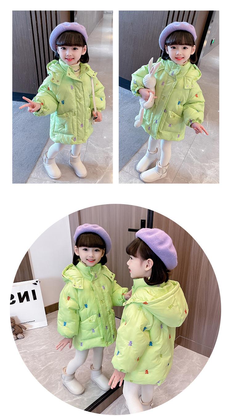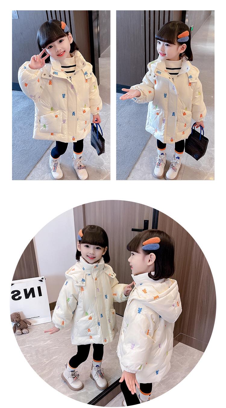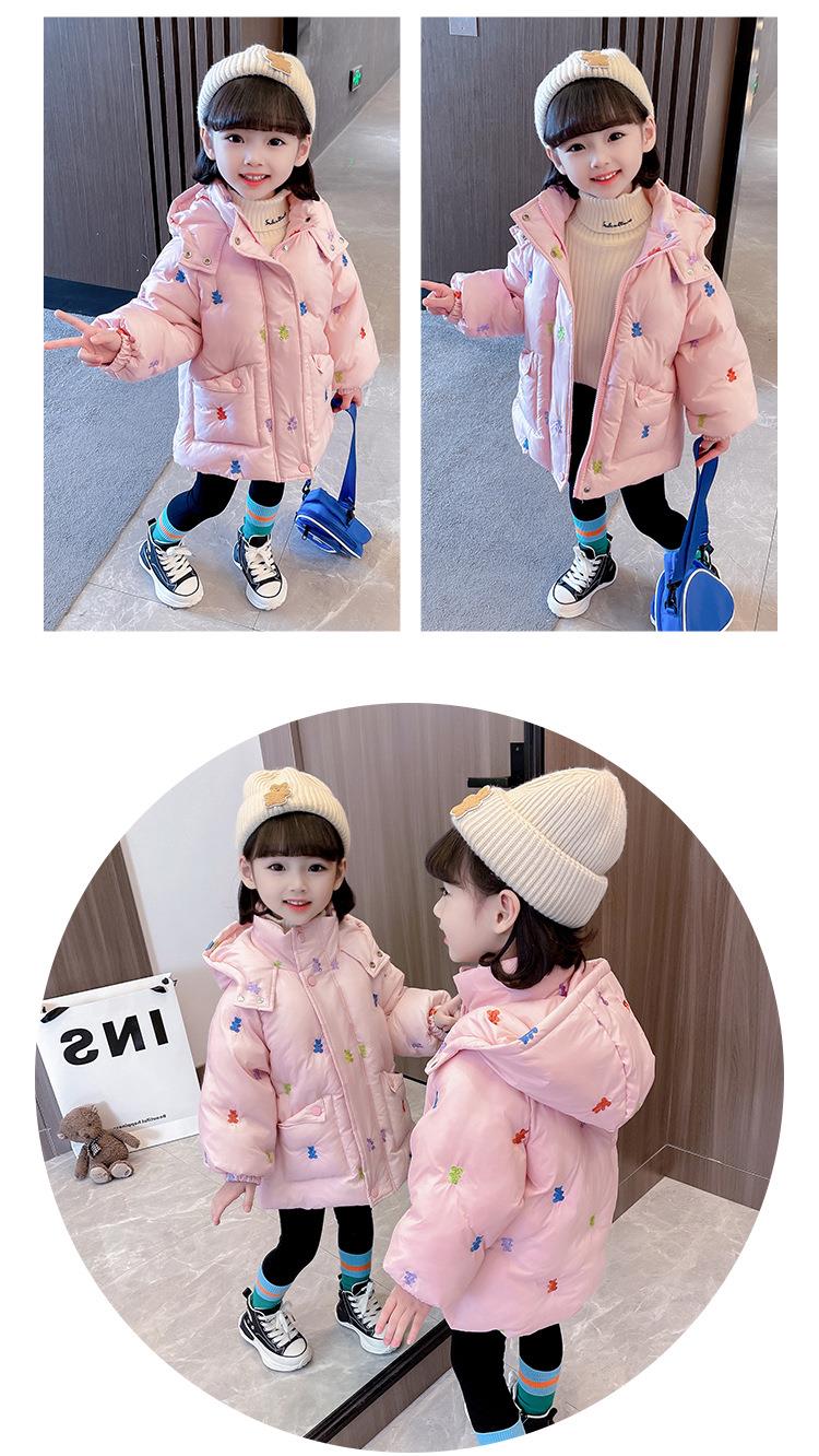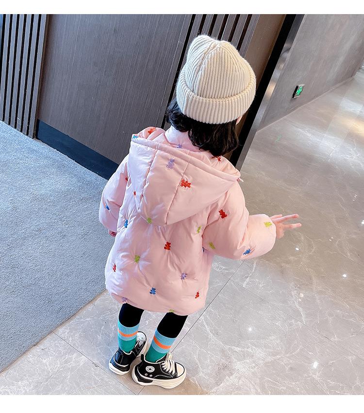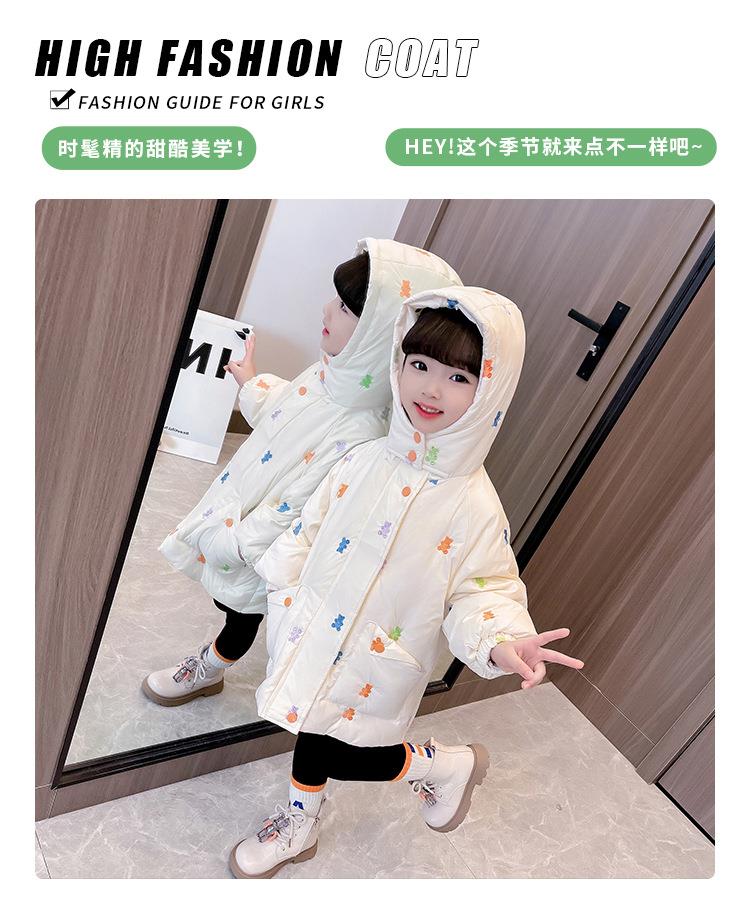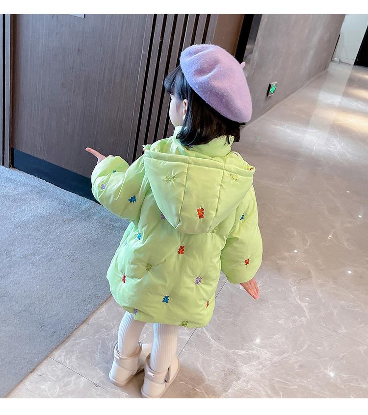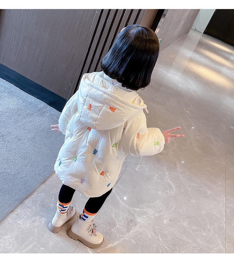 女童小熊刺绣棉衣冬装洋气外套宝宝中长款大衣儿童童装潮