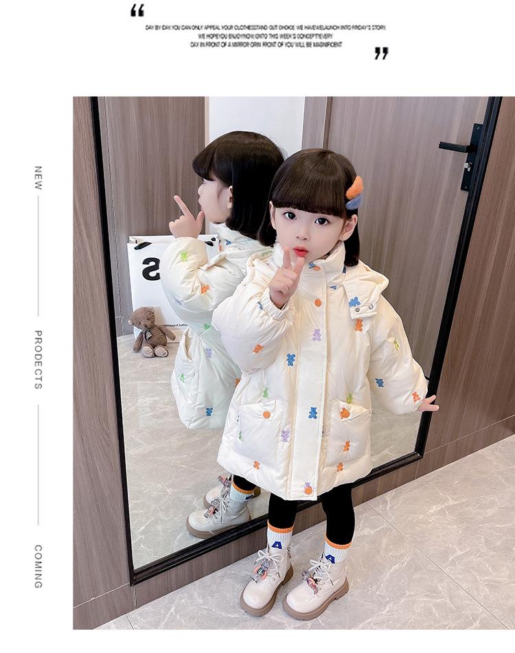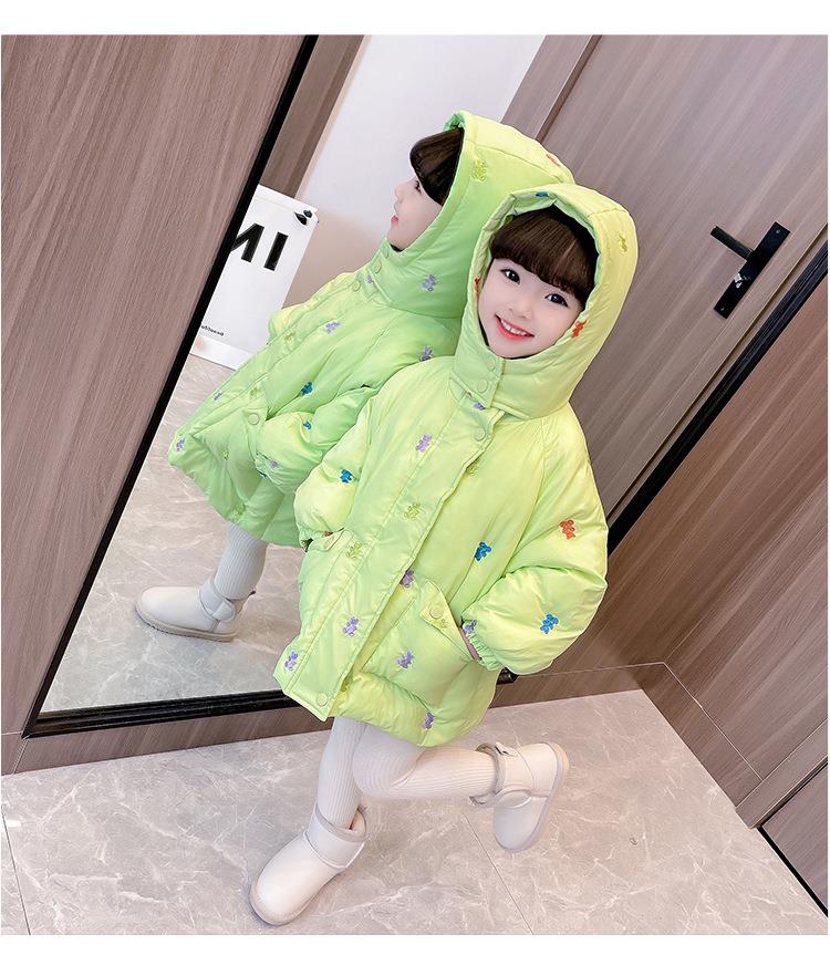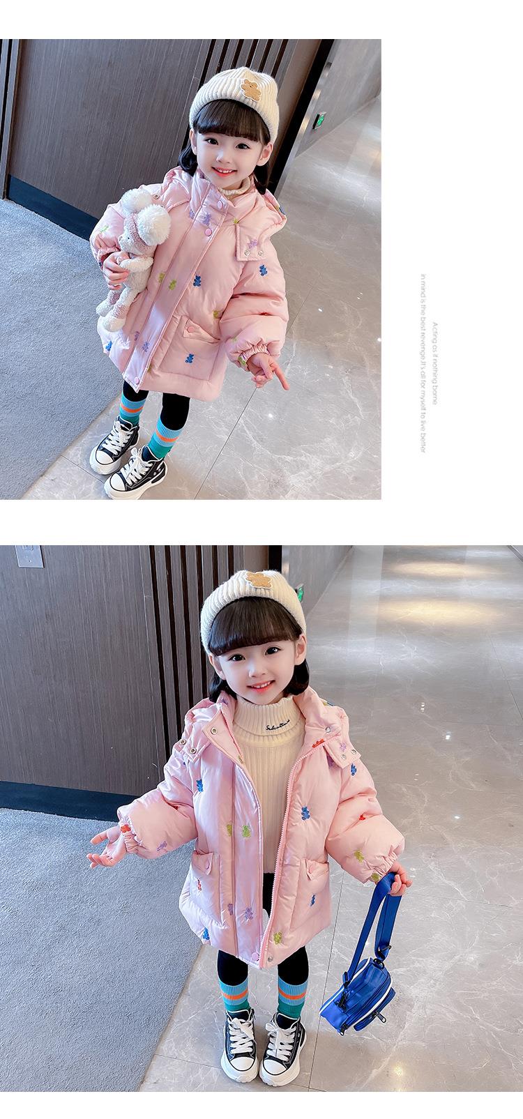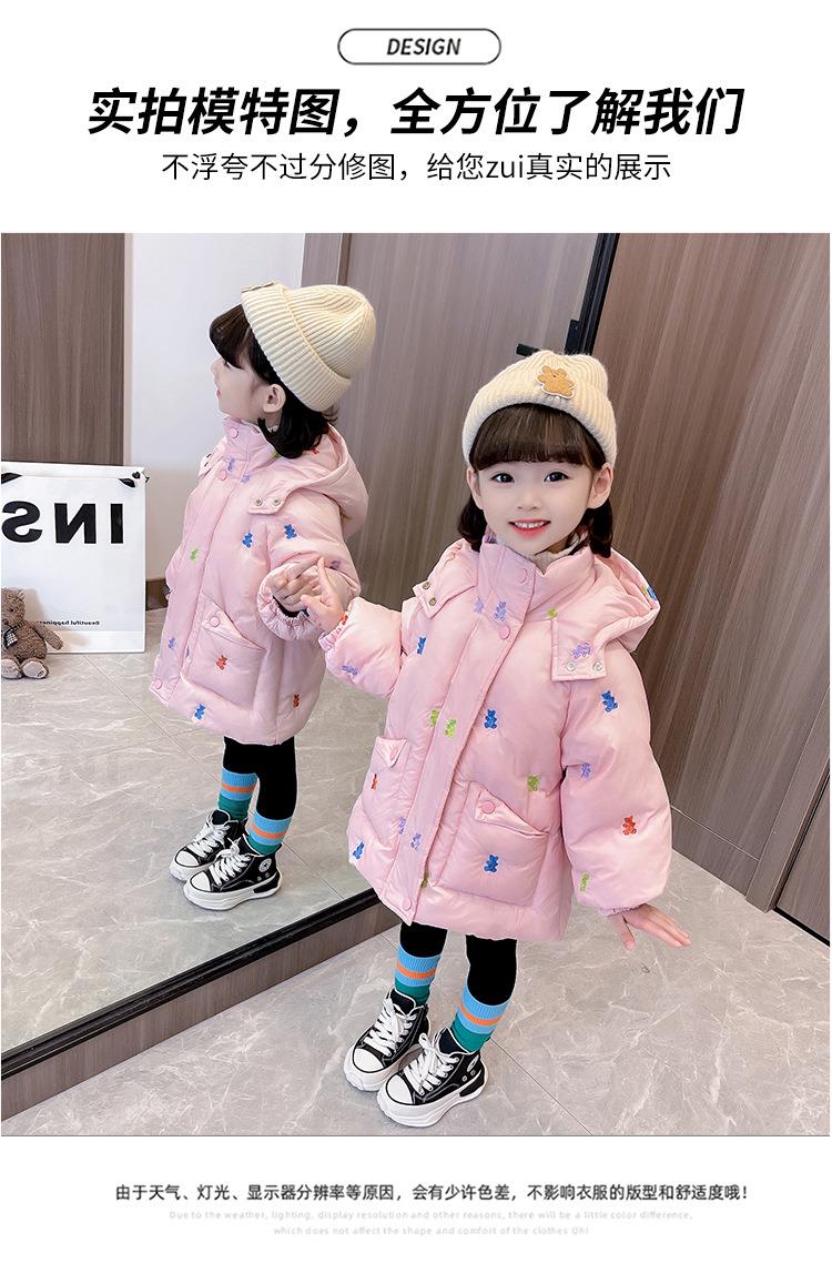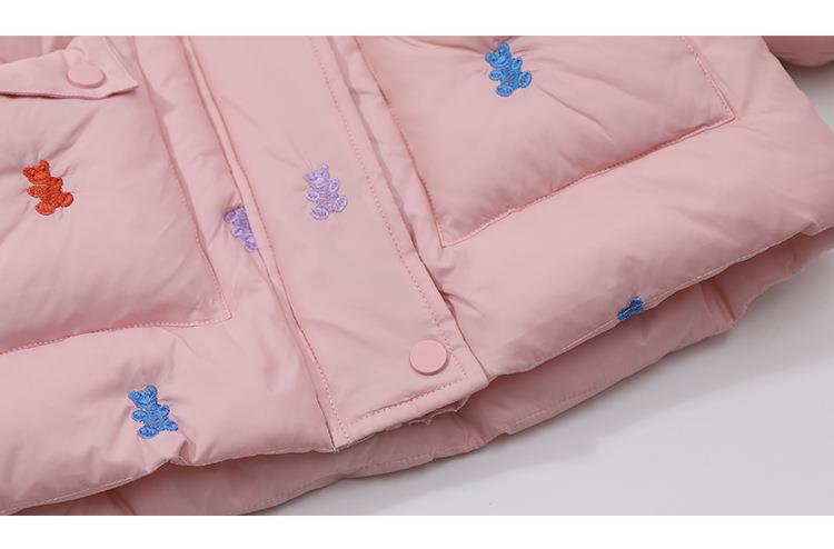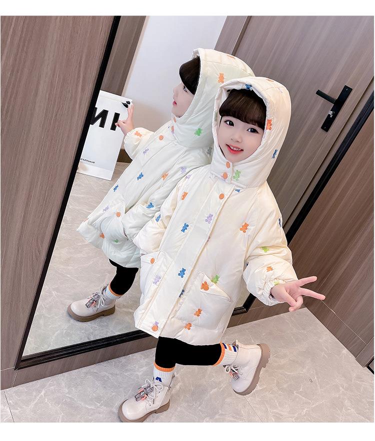 女童小熊刺绣棉衣冬装洋气外套宝宝中长款大衣儿童童装潮