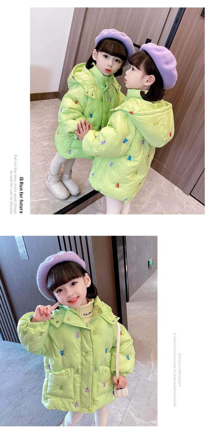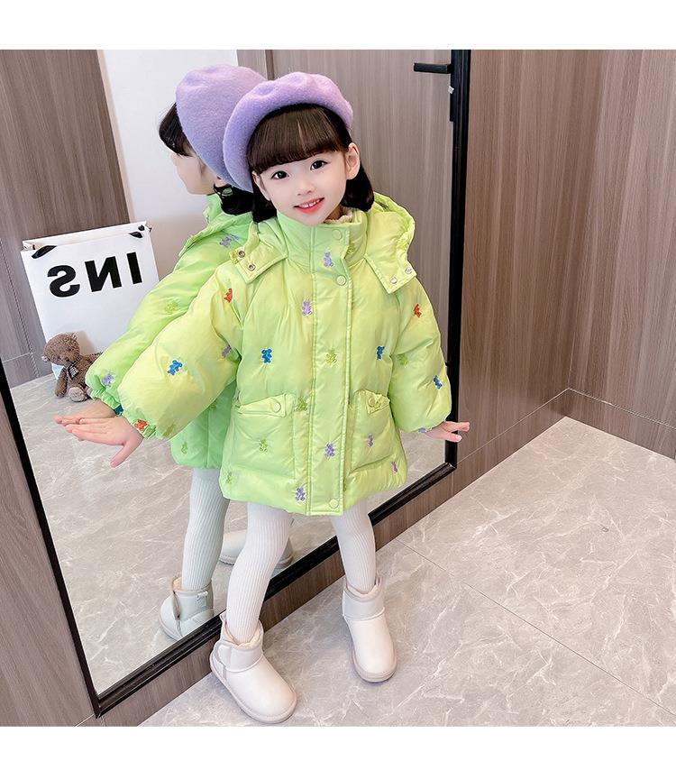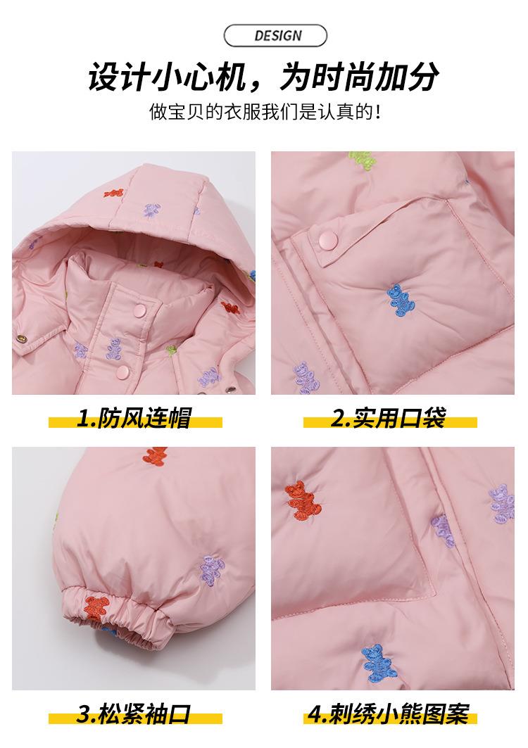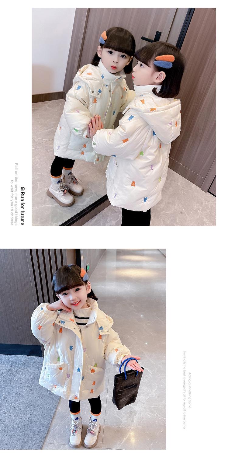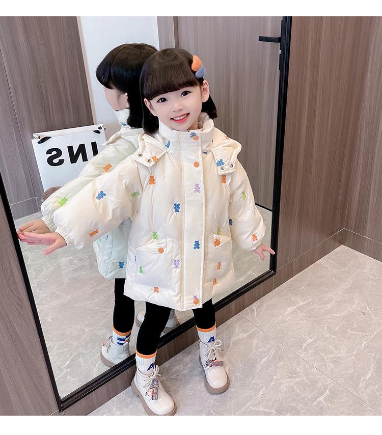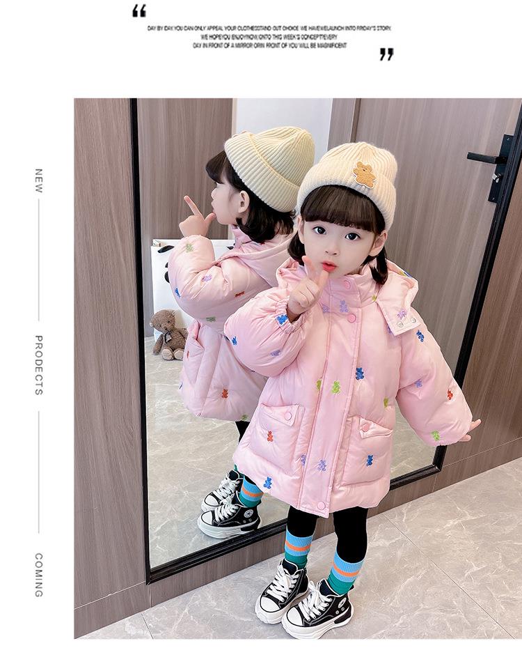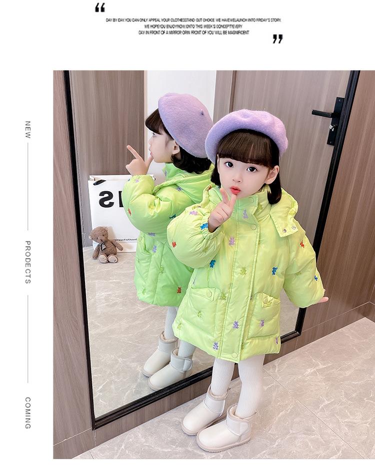 女童小熊刺绣棉衣冬装洋气外套宝宝中长款大衣儿童童装潮