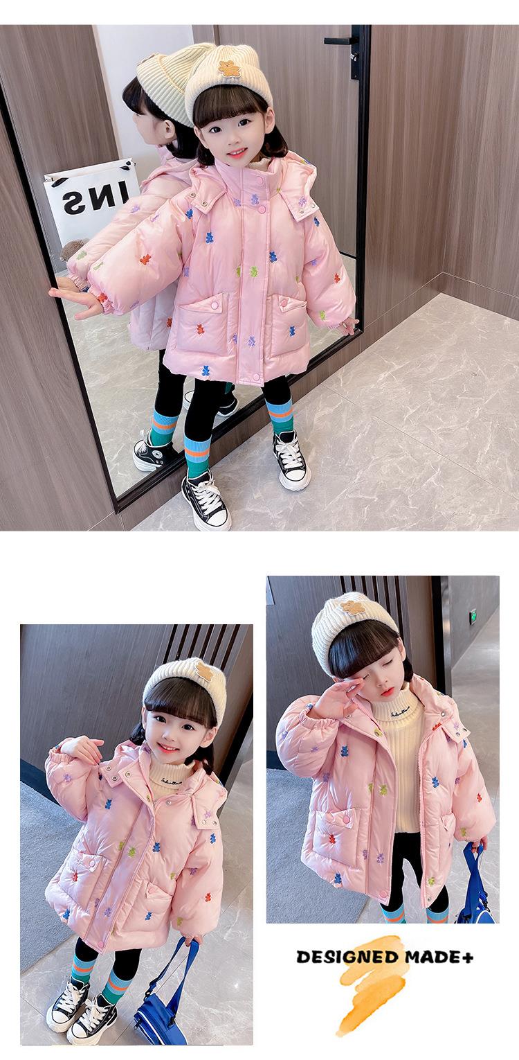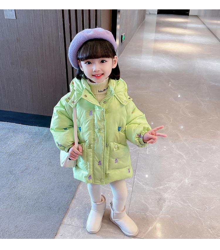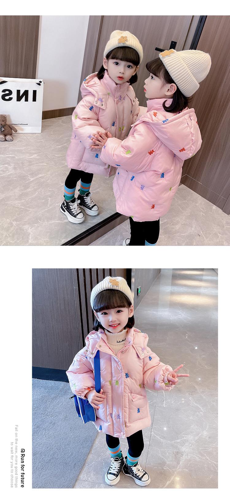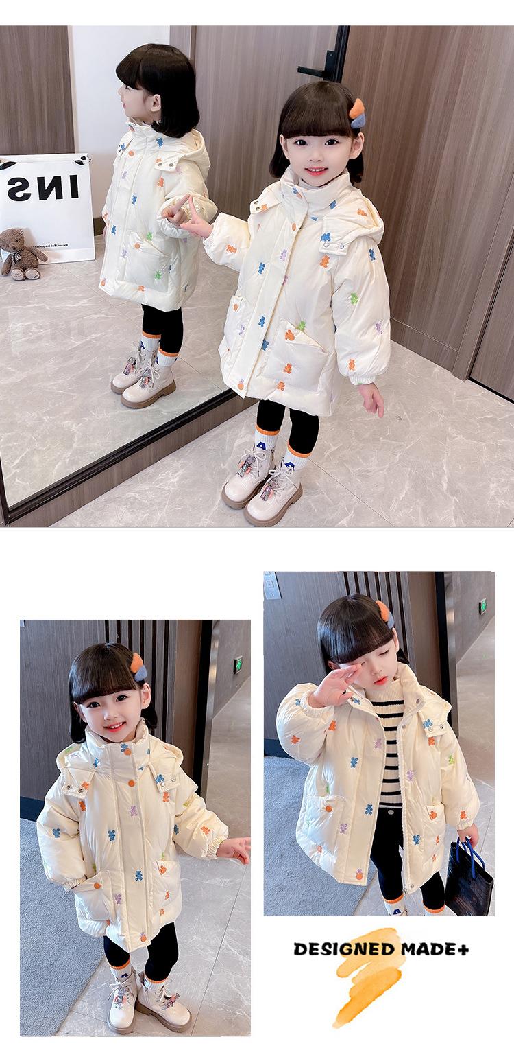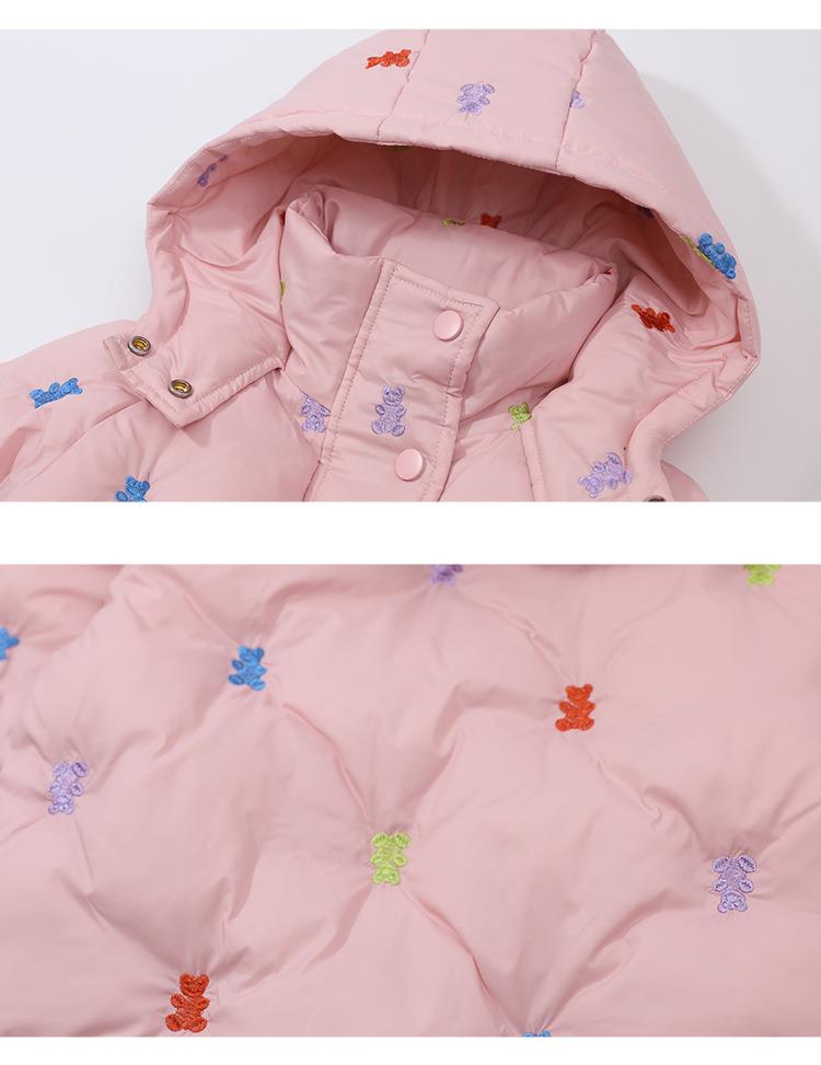 女童小熊刺绣棉衣冬装洋气外套宝宝中长款大衣儿童童装潮