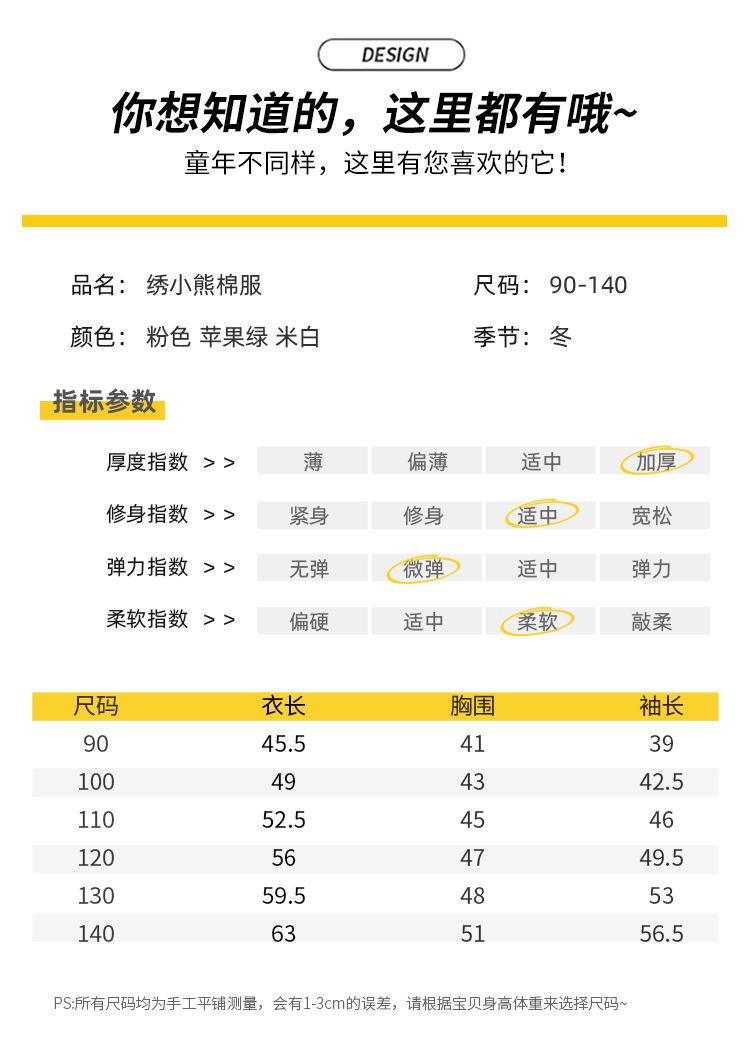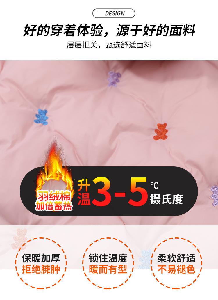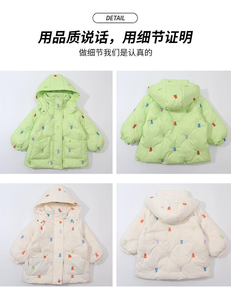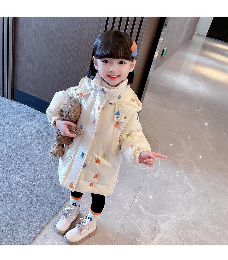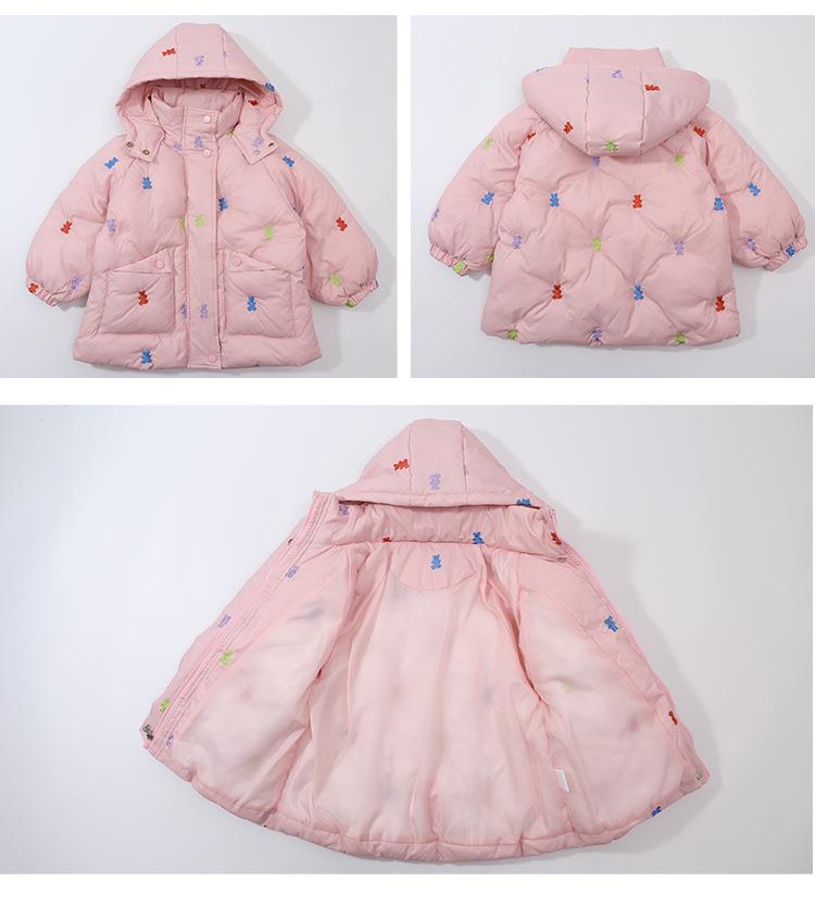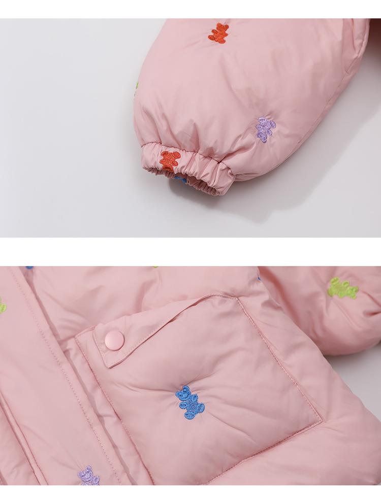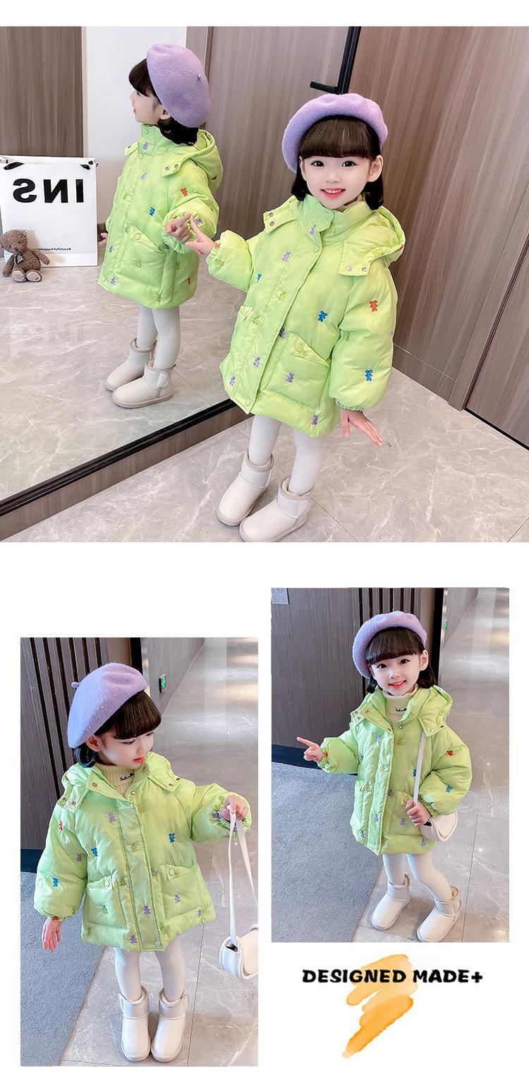 女童小熊刺绣棉衣冬装洋气外套宝宝中长款大衣儿童童装潮