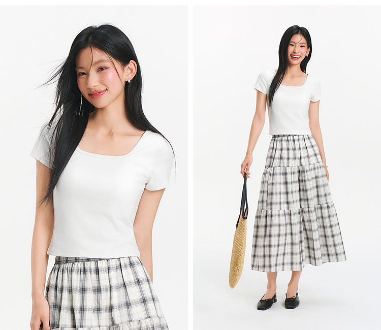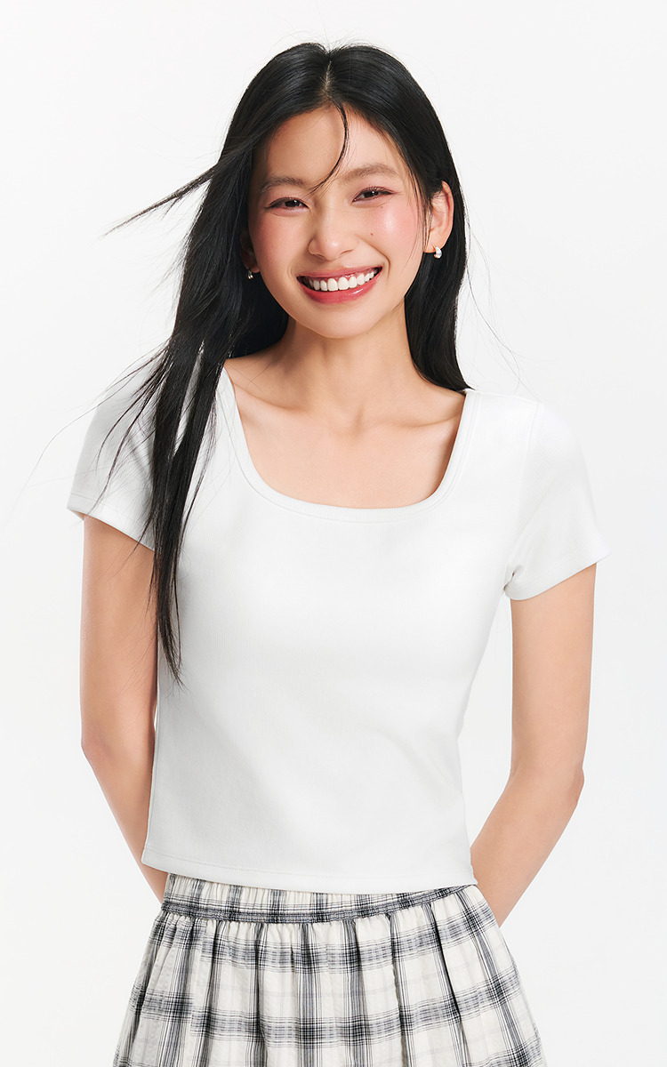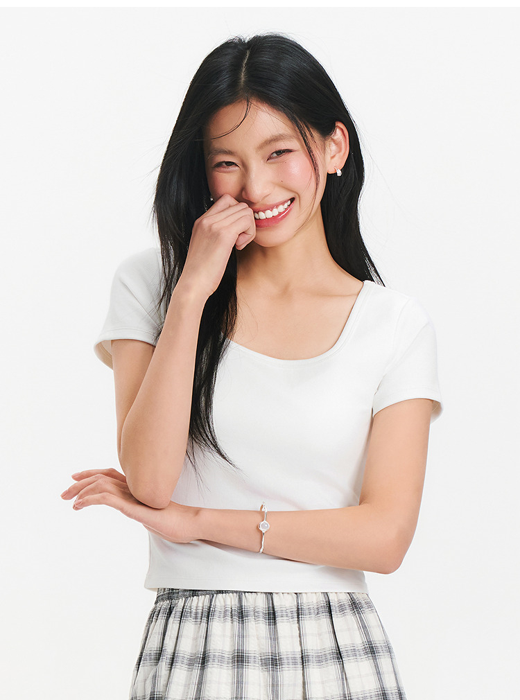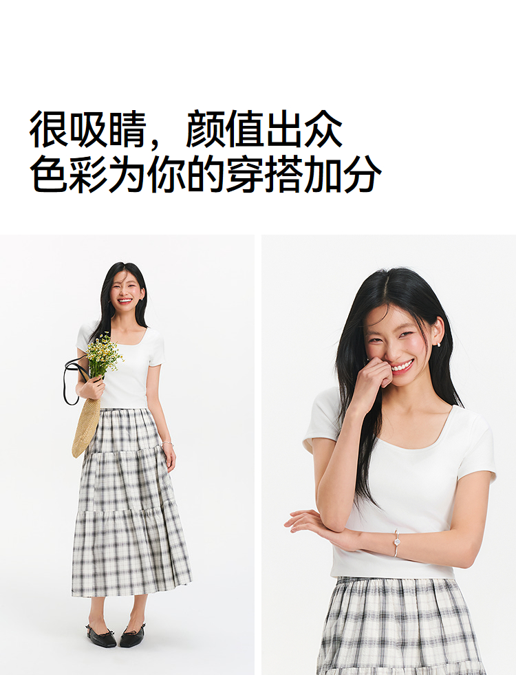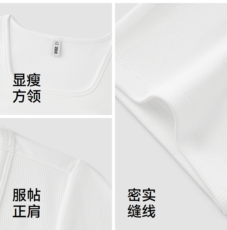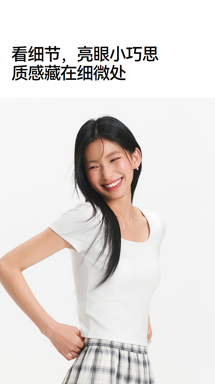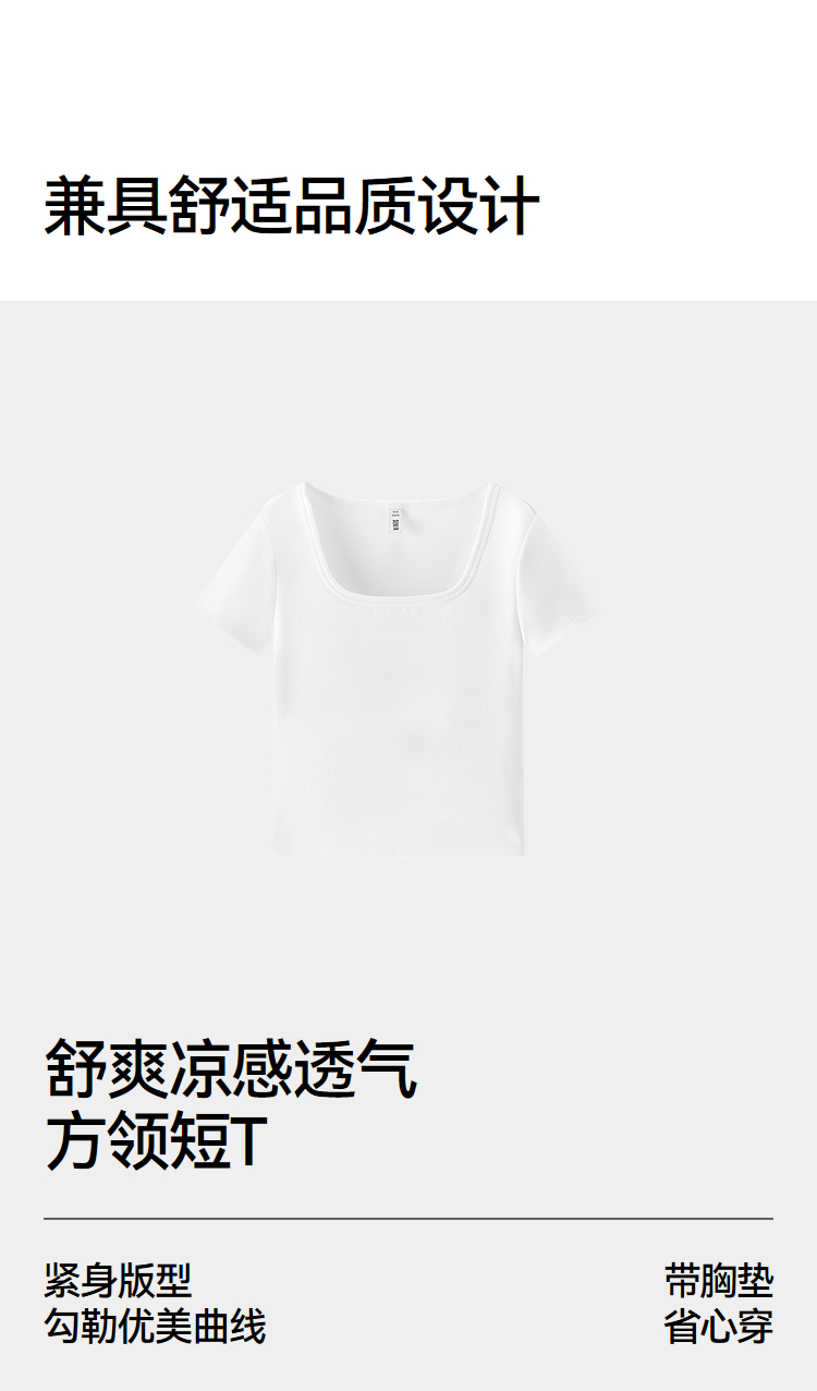 凉感T|森马短袖T恤女夏短款方领带胸垫紧身正肩显瘦百搭气质上衣