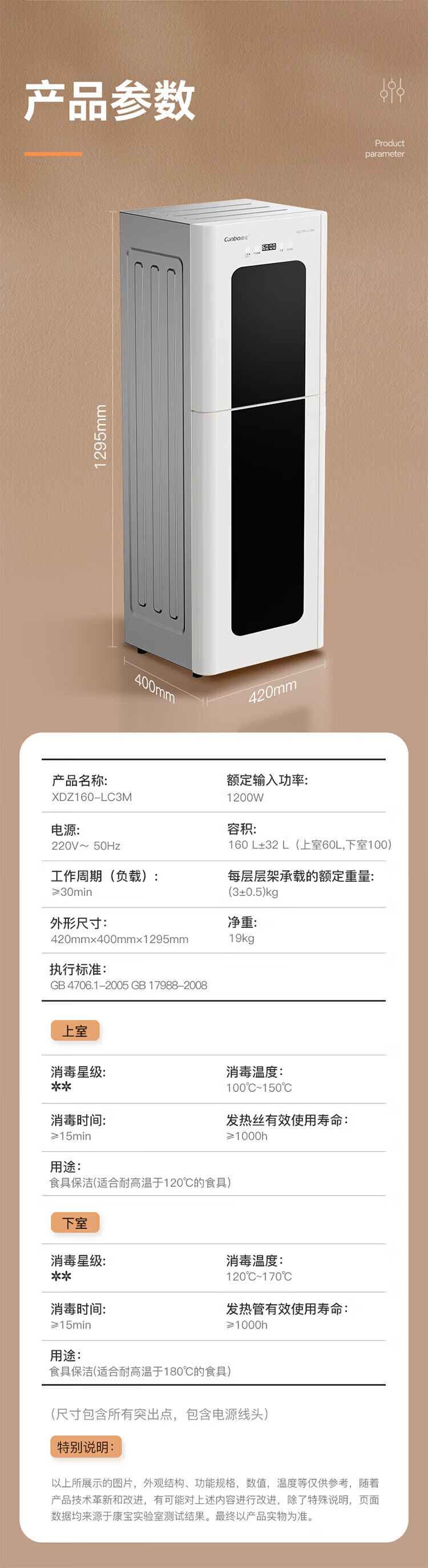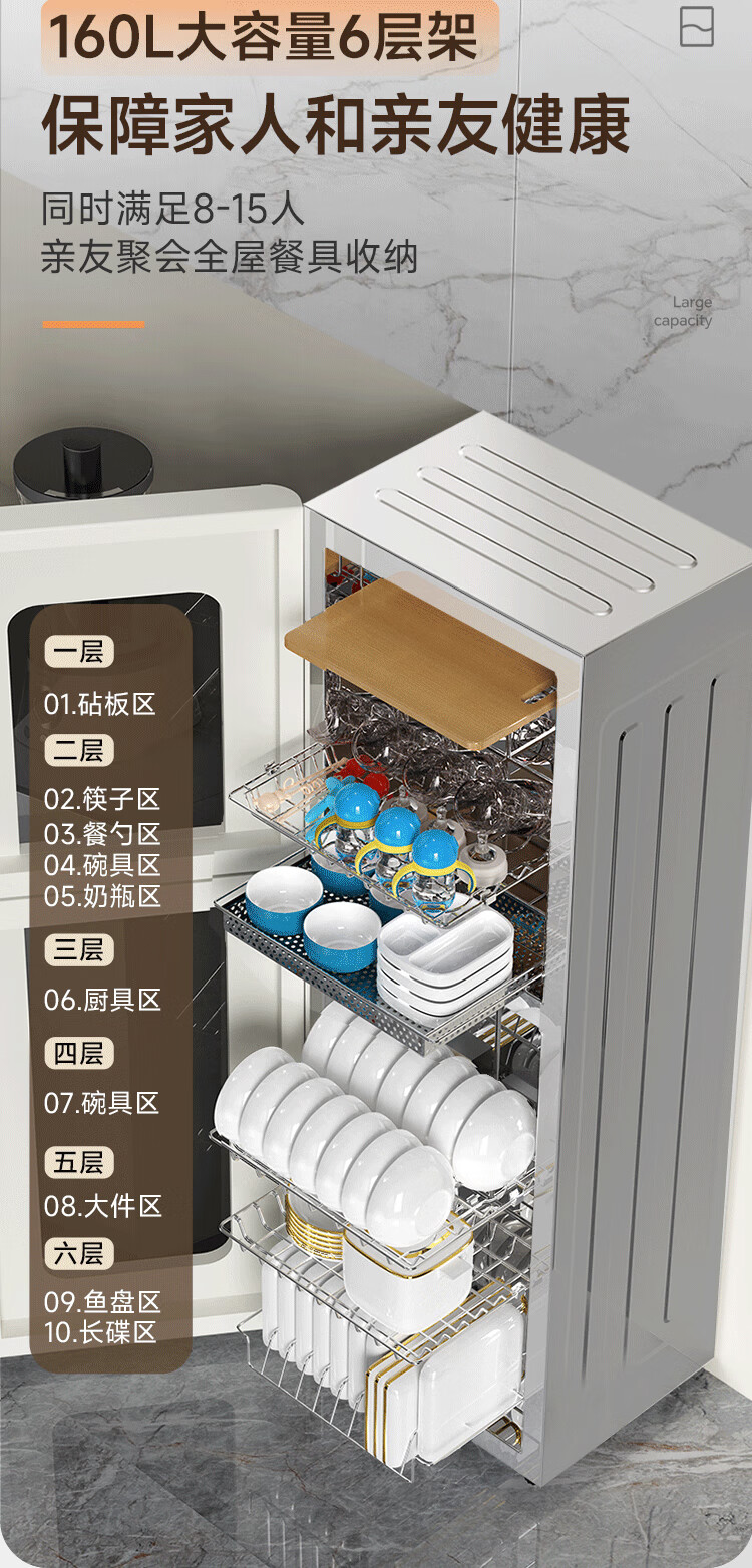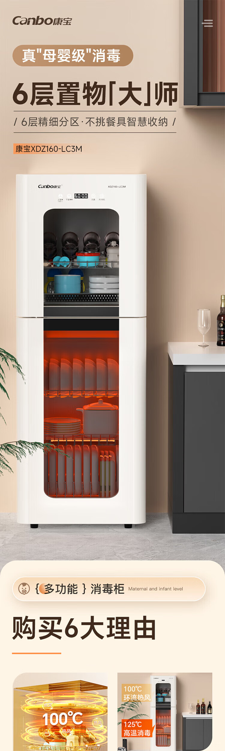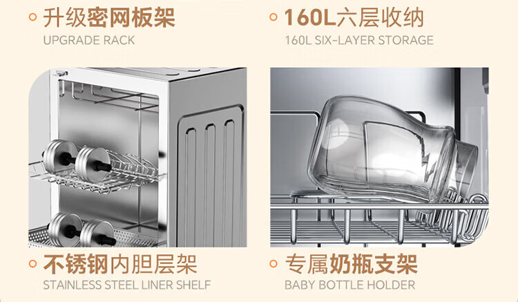 康宝(Canbo)消毒柜家用 立式 母婴奶瓶消毒 无菌储存 高温环流热风循环 二星级消毒 厨房客厅碗筷柜 白色双层 二星级 160L 【不锈钢架】XDZ160LC3M