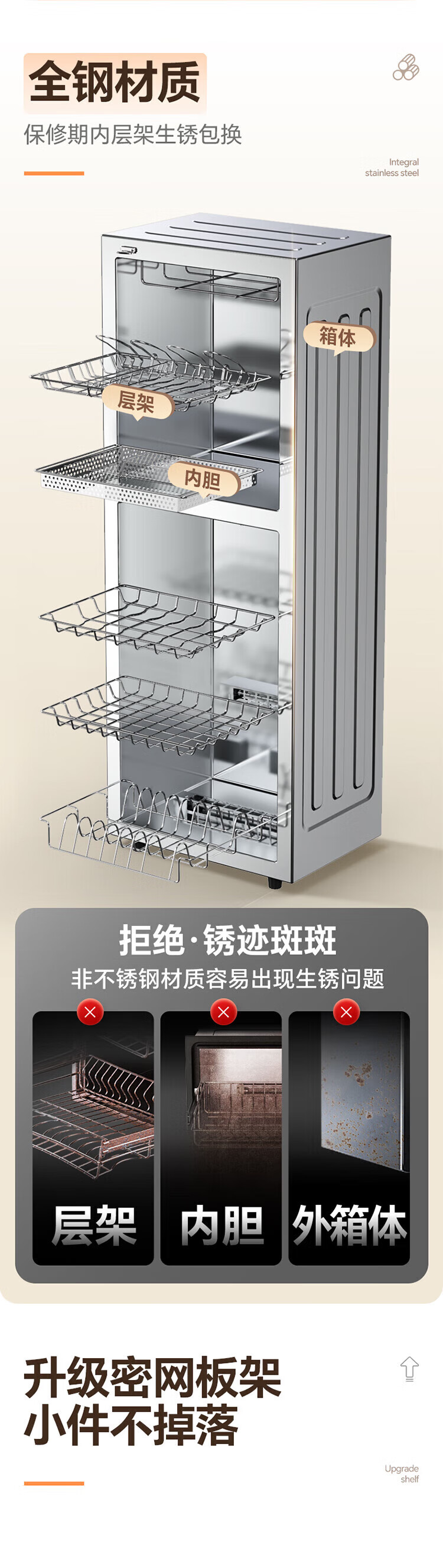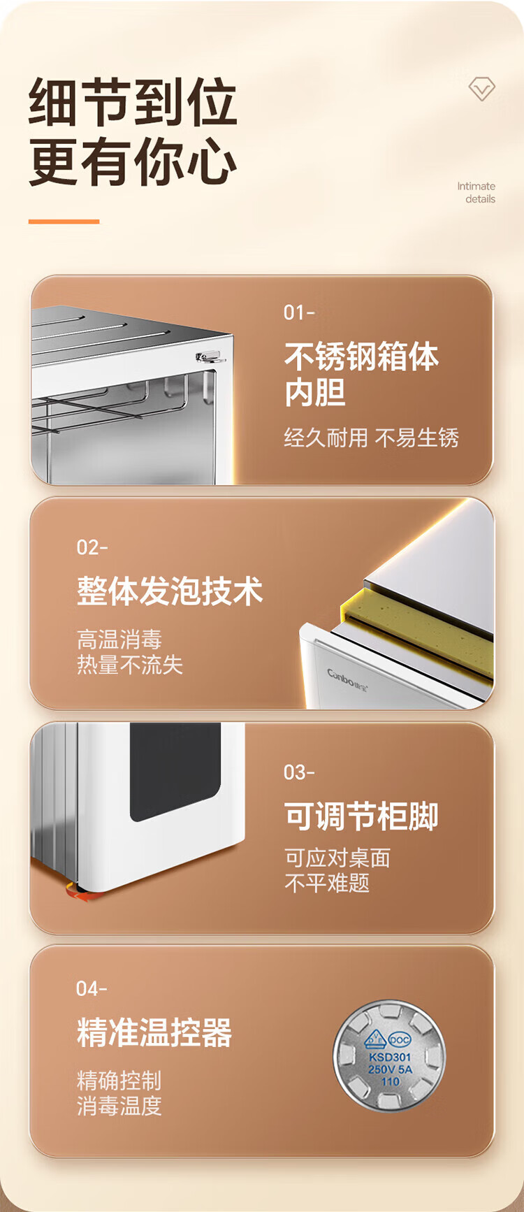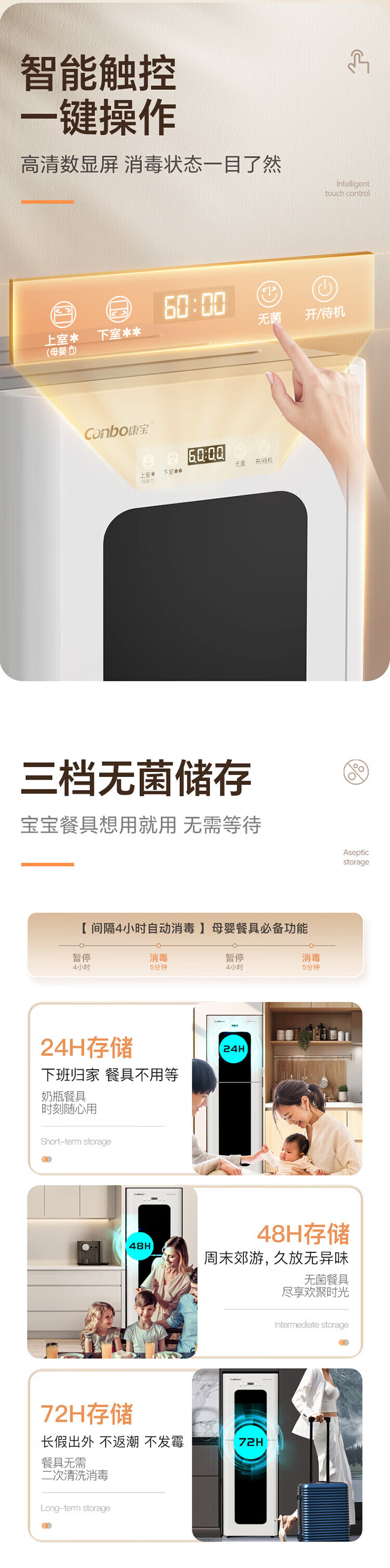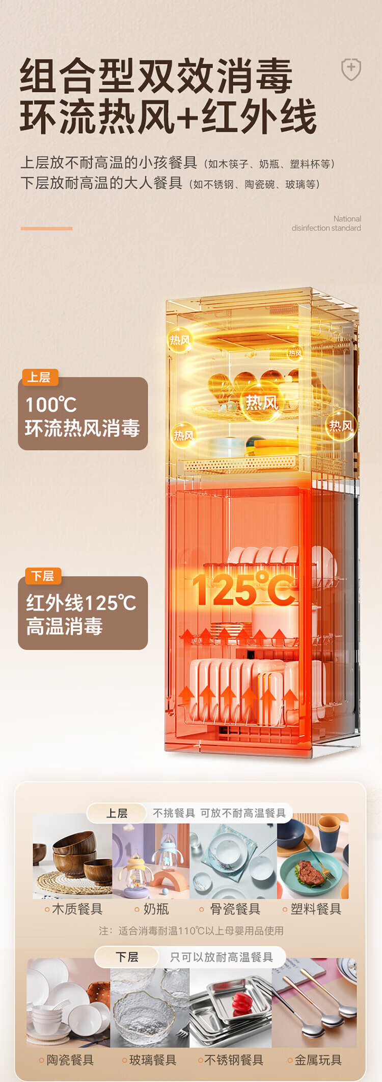 康宝(Canbo)消毒柜家用 立式 母婴奶瓶消毒 无菌储存 高温环流热风循环 二星级消毒 厨房客厅碗筷柜 白色双层 二星级 160L 【不锈钢架】XDZ160LC3M