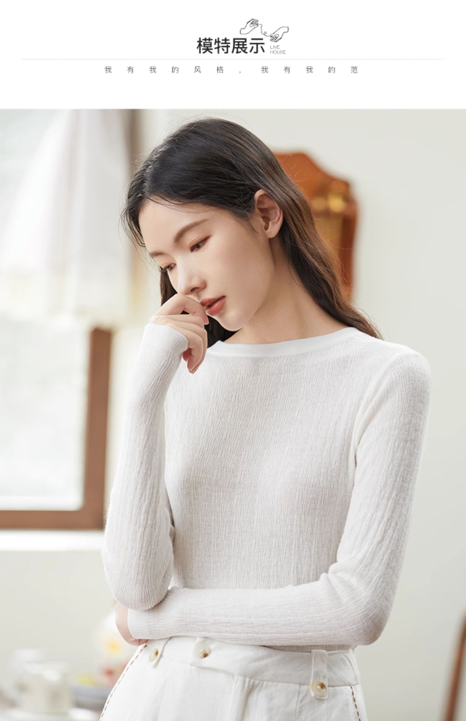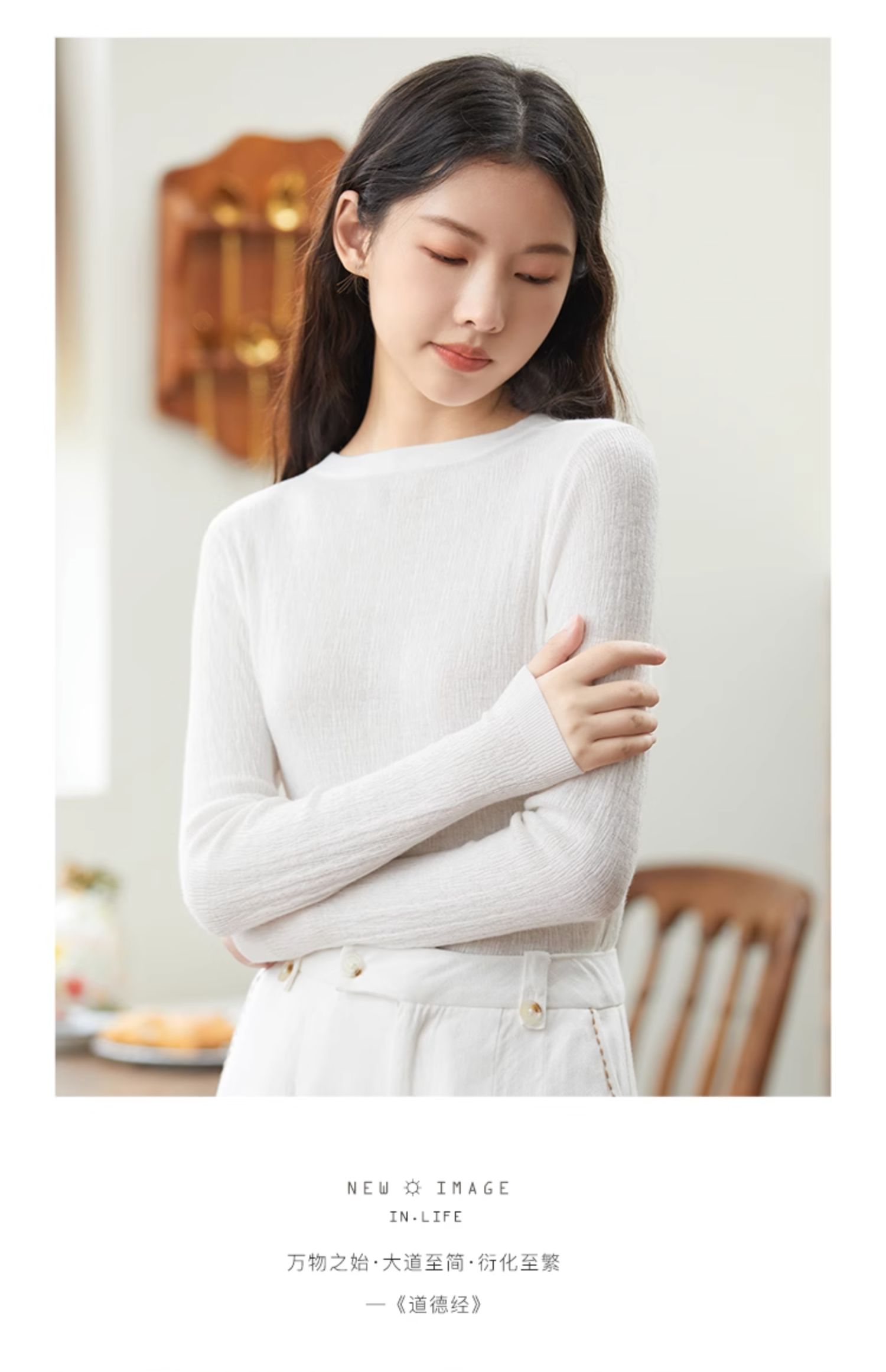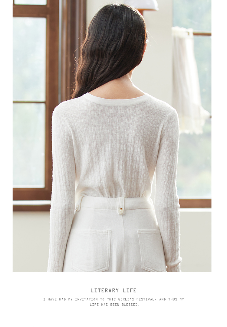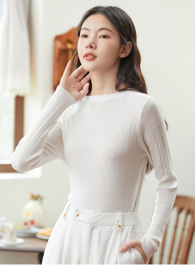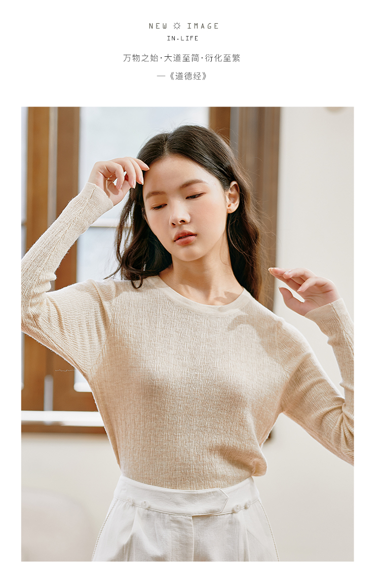 Famecoco范可儿套头毛衫圆领内搭上衣长袖女装打底衫D221DB405