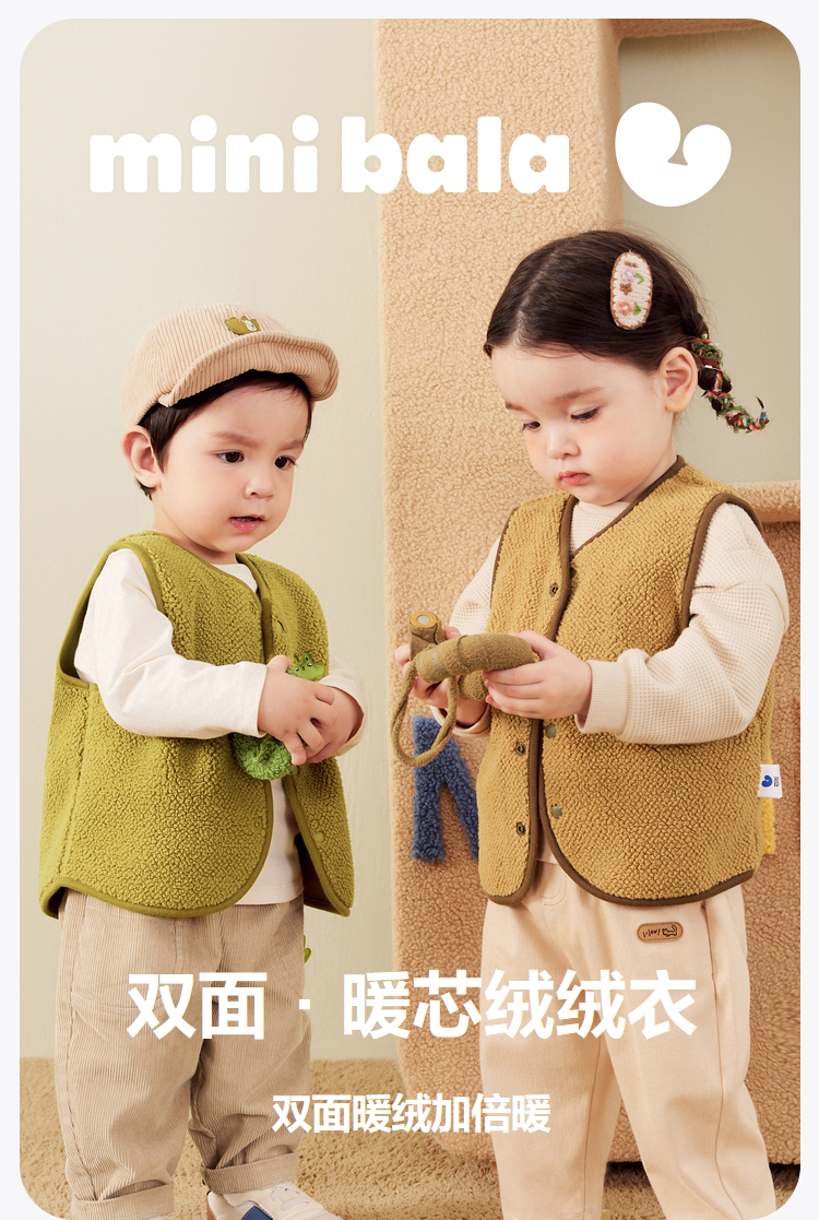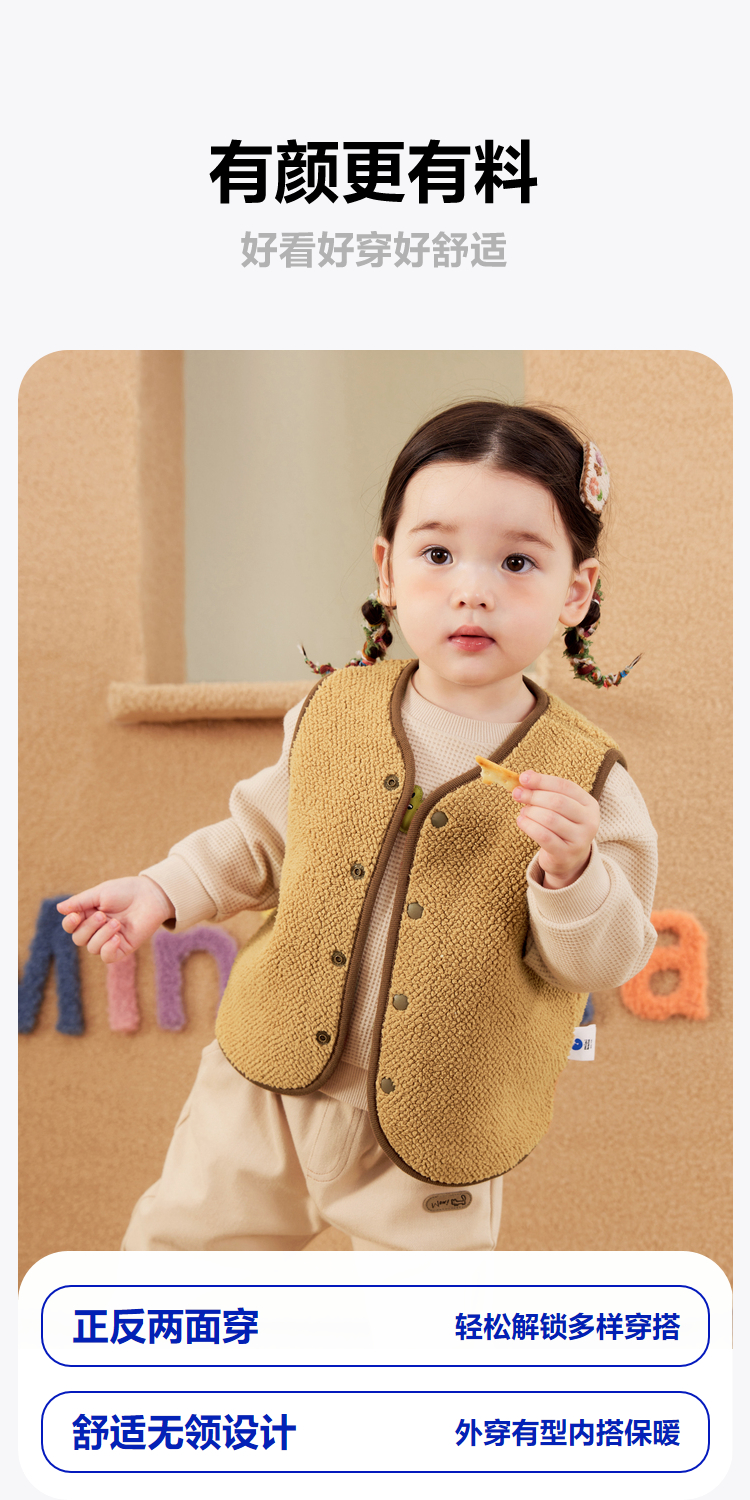 【爆品主推】【绒绒衣】迷你巴拉冬新款男女童双面暖马甲宝宝保暖毛绒背心