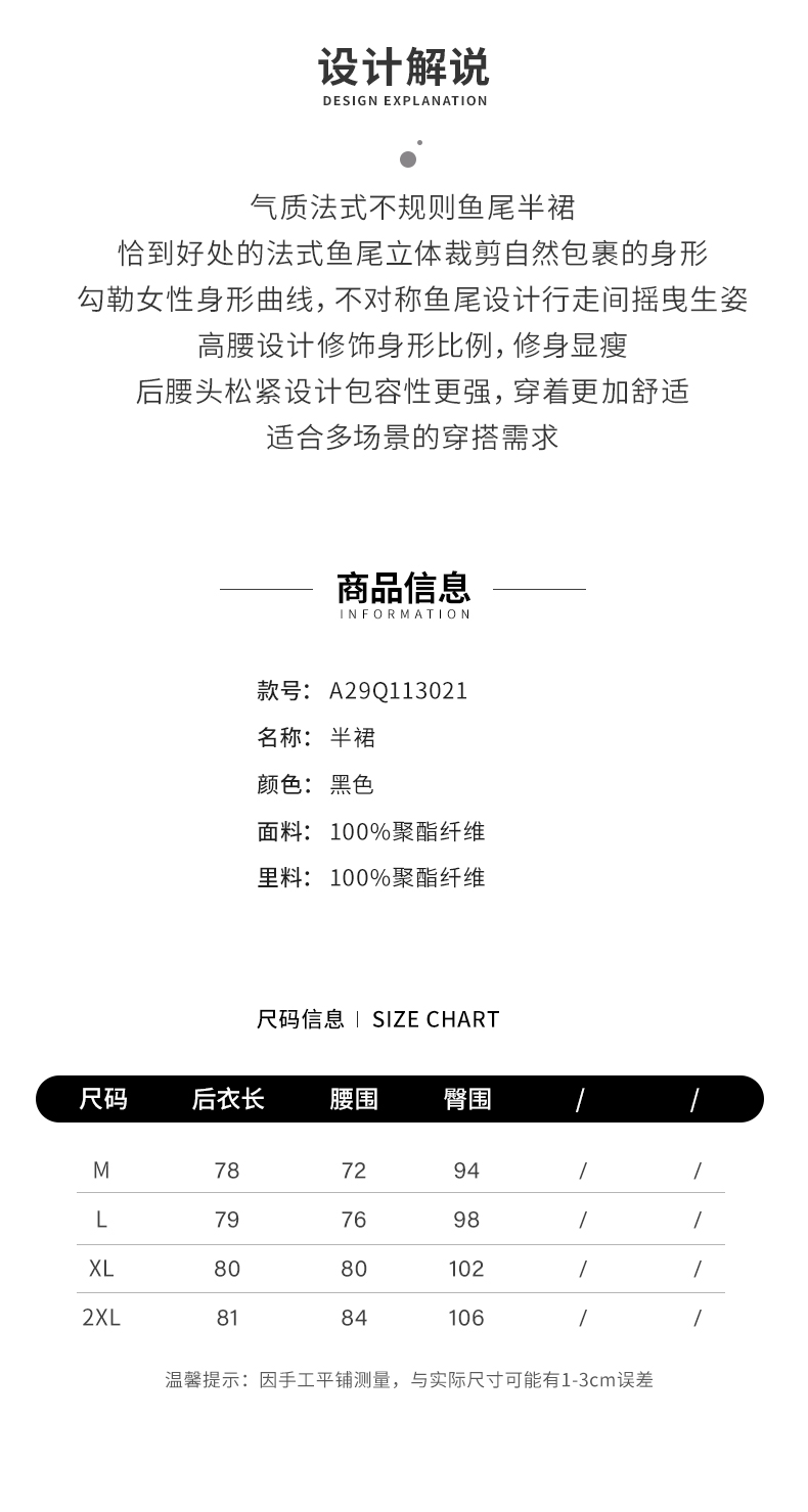 【商场同款】阿菁娜2024秋季新款气质法式不规则鱼尾半裙A29Q113021