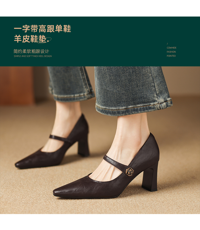 阿么手工女鞋极简风一字带高跟鞋气质高级感百搭女款真皮单鞋7CM 商品图0