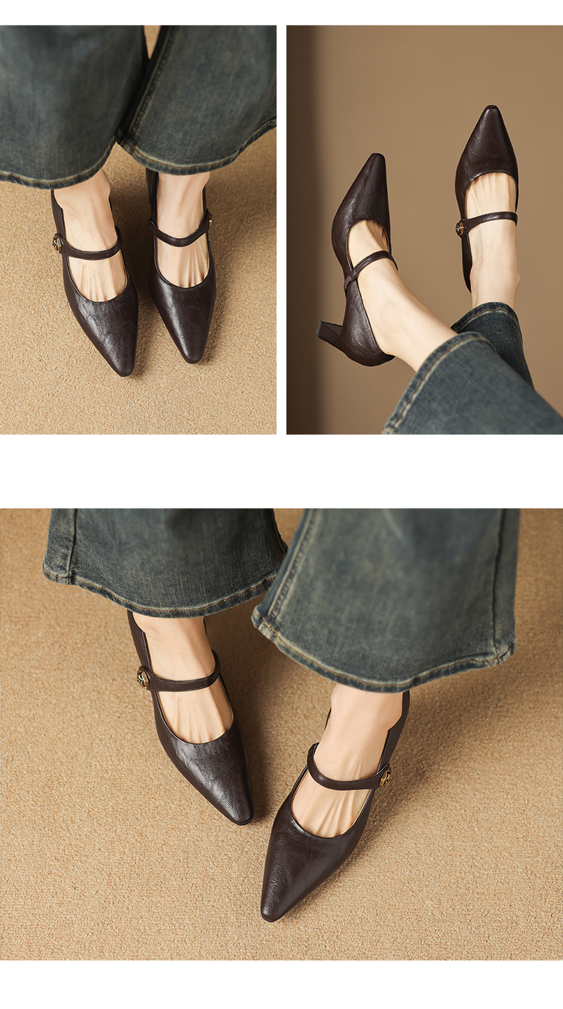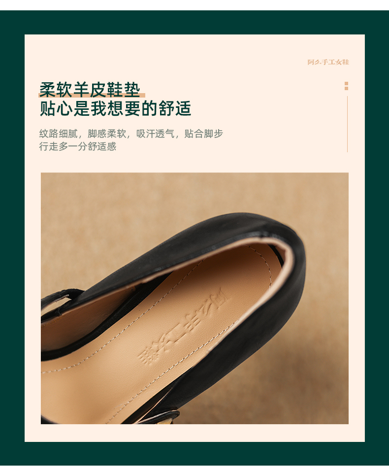 阿么手工女鞋极简风一字带高跟鞋气质高级感百搭女款真皮单鞋7CM 商品图4