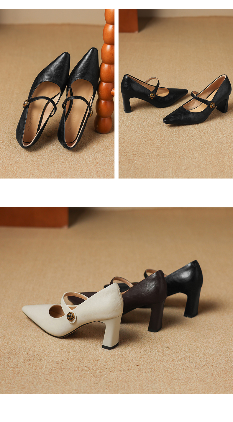 阿么手工女鞋极简风一字带高跟鞋气质高级感百搭女款真皮单鞋7CM 商品图1
