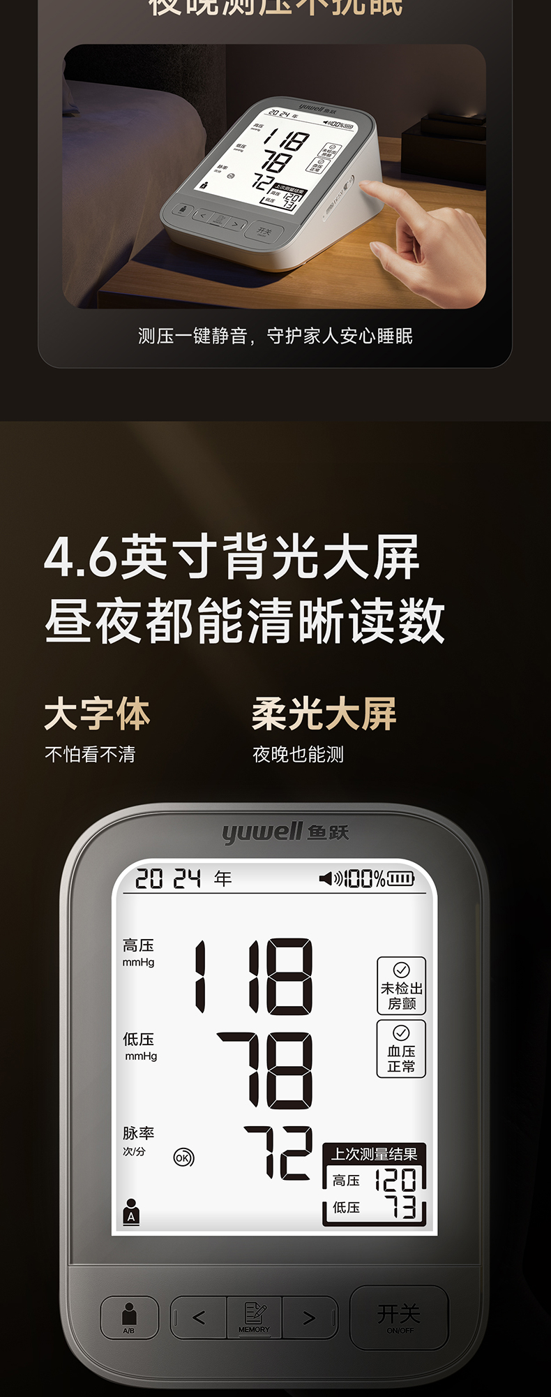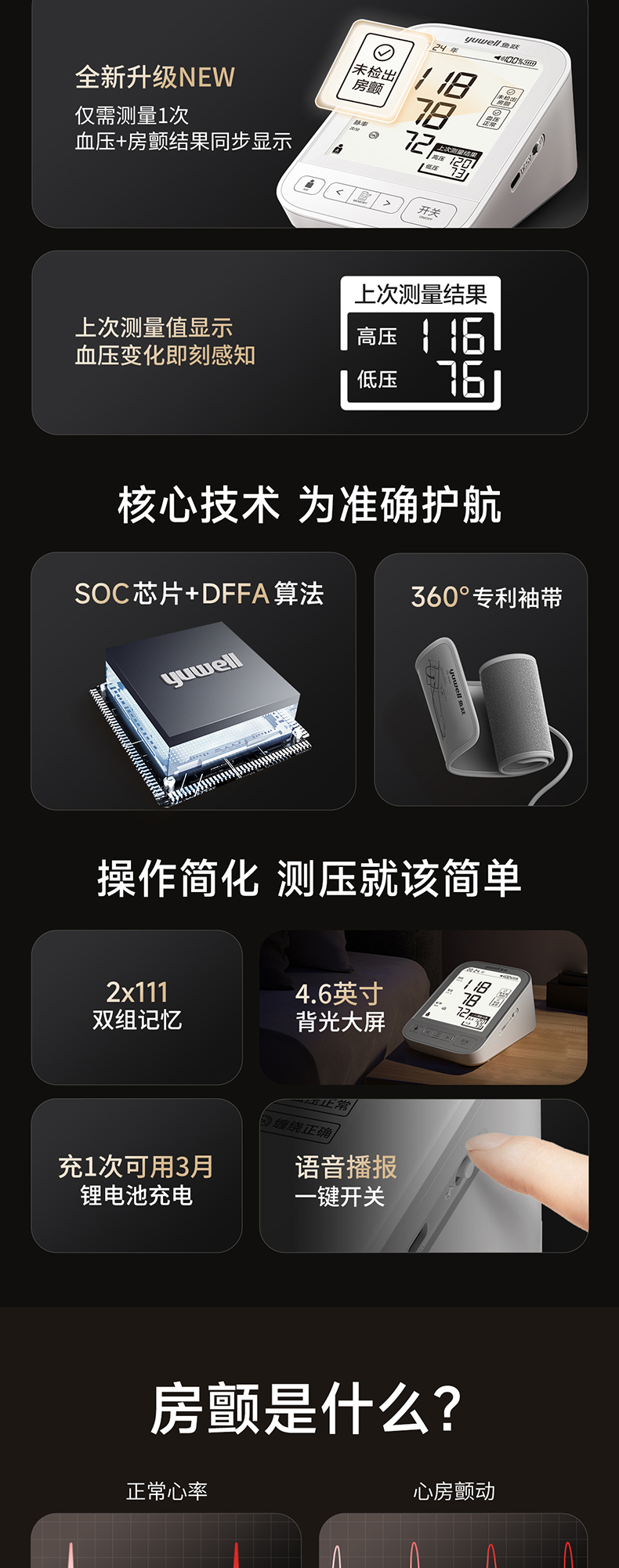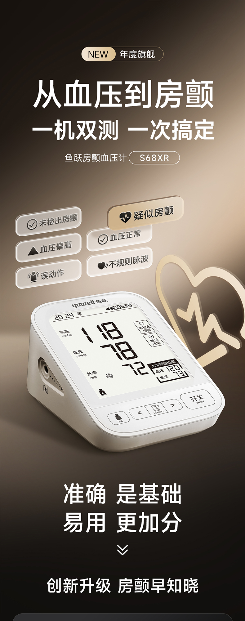 鱼跃S68XR电子血压计上臂式血压房颤双测充电款