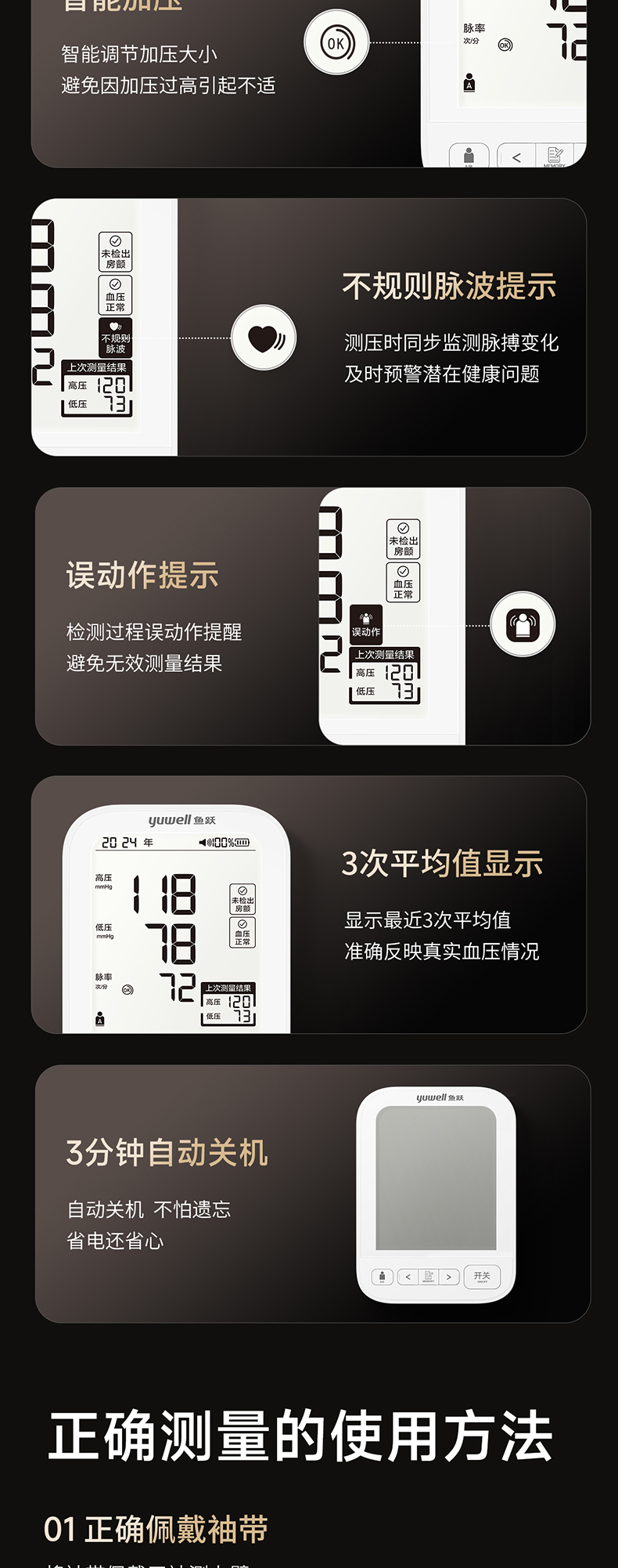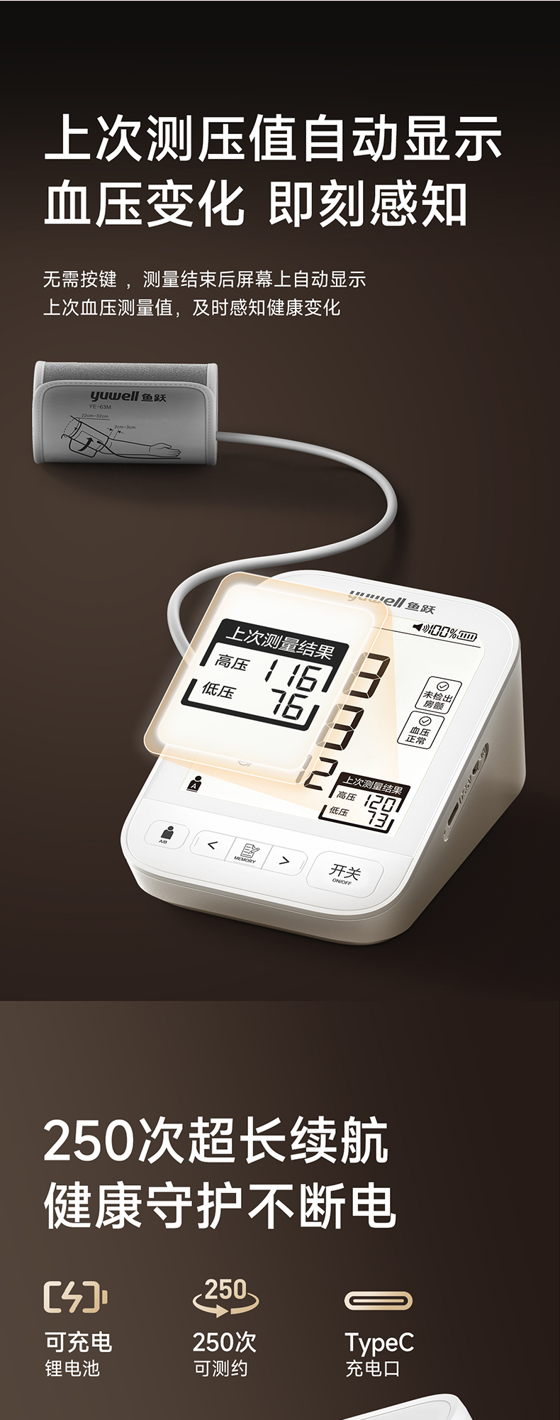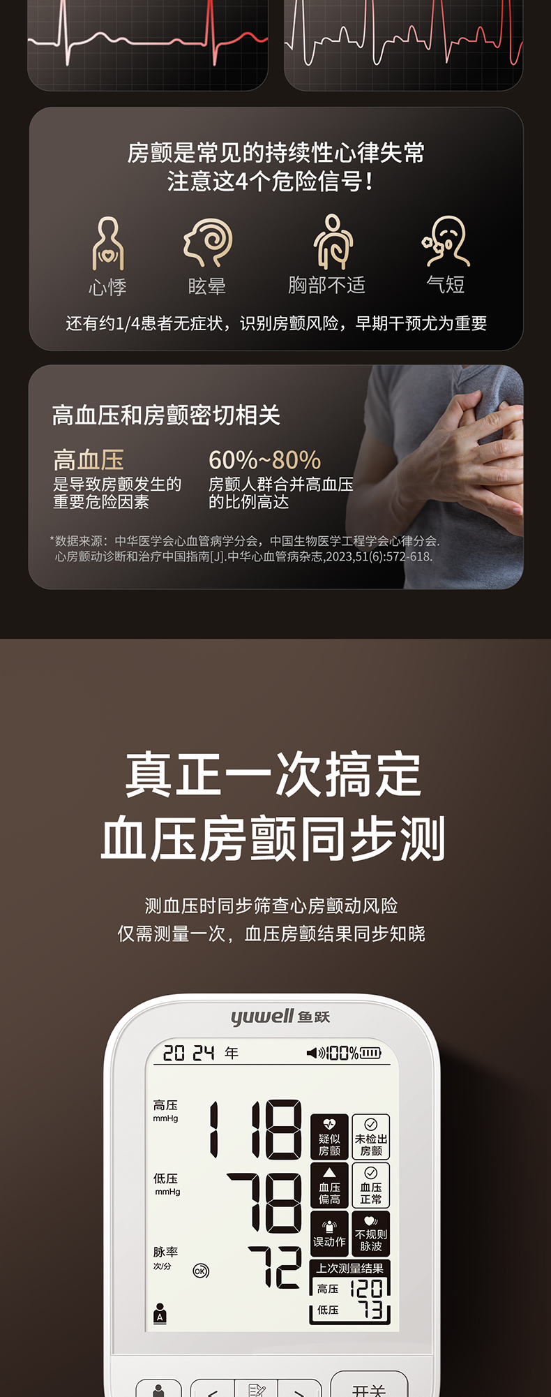 鱼跃S68XR电子血压计上臂式血压房颤双测充电款