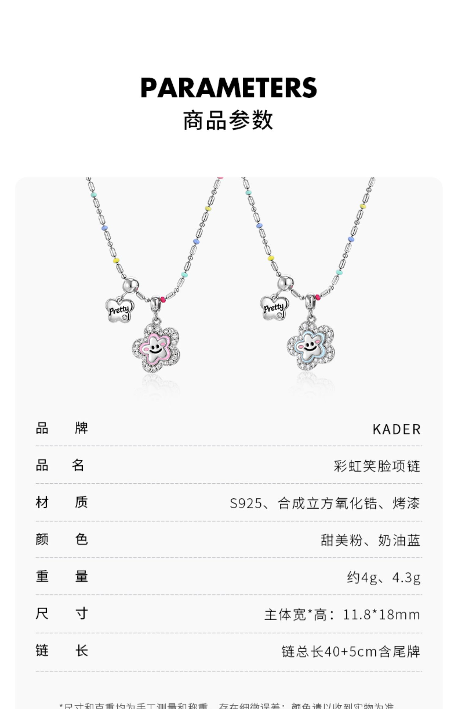 卡蒂罗彩虹笑脸项链女纯银轻奢小众设计2023年新款锁骨链生日礼物