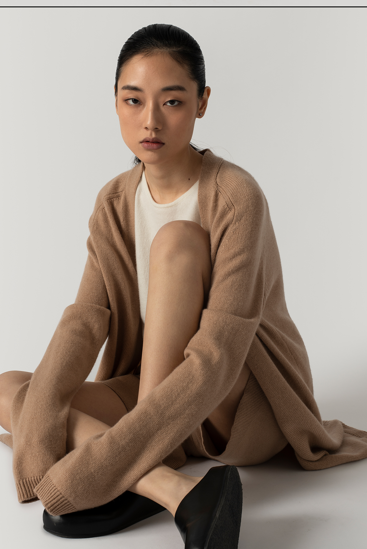 322工房轻柔质感羊毛羊绒针织外套2022年秋冬款休闲中长款开衫女