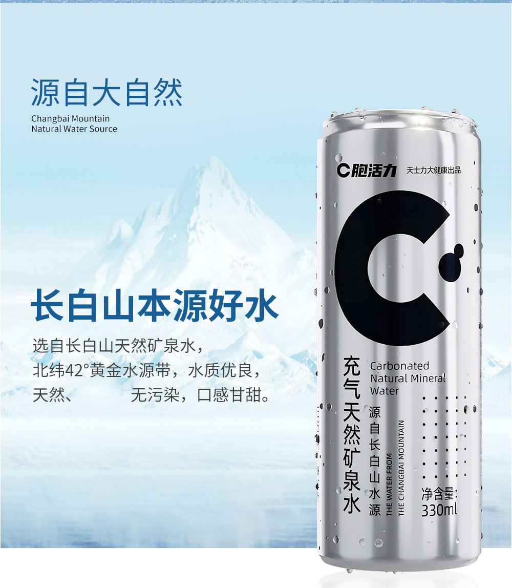 C胞活力充气天然矿泉水330ml/瓶 24瓶/箱(4x6瓶/箱)