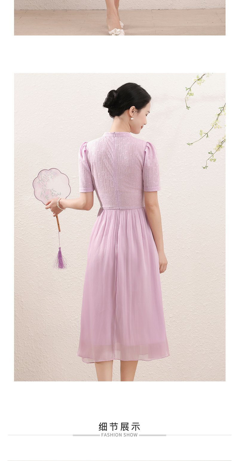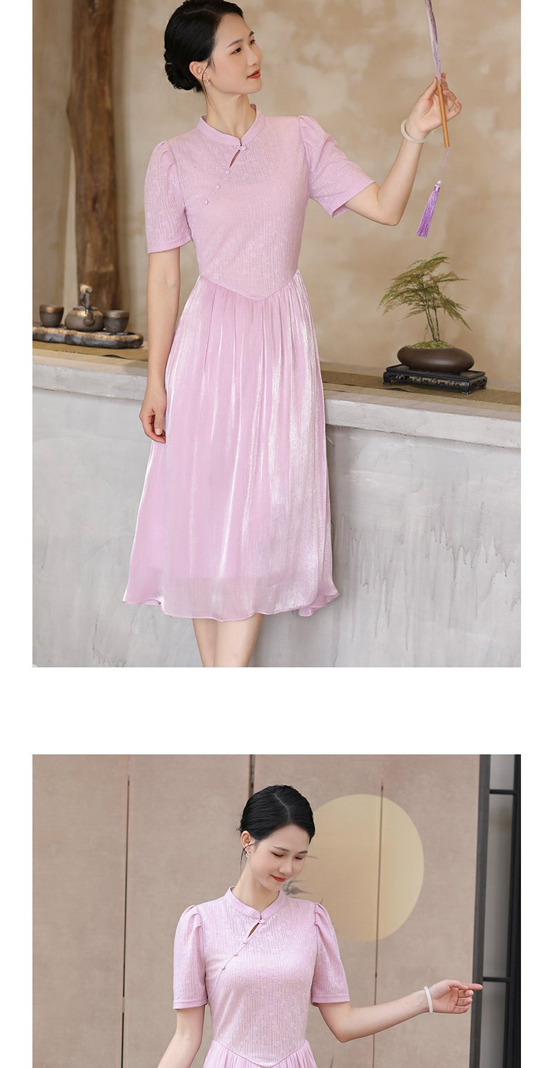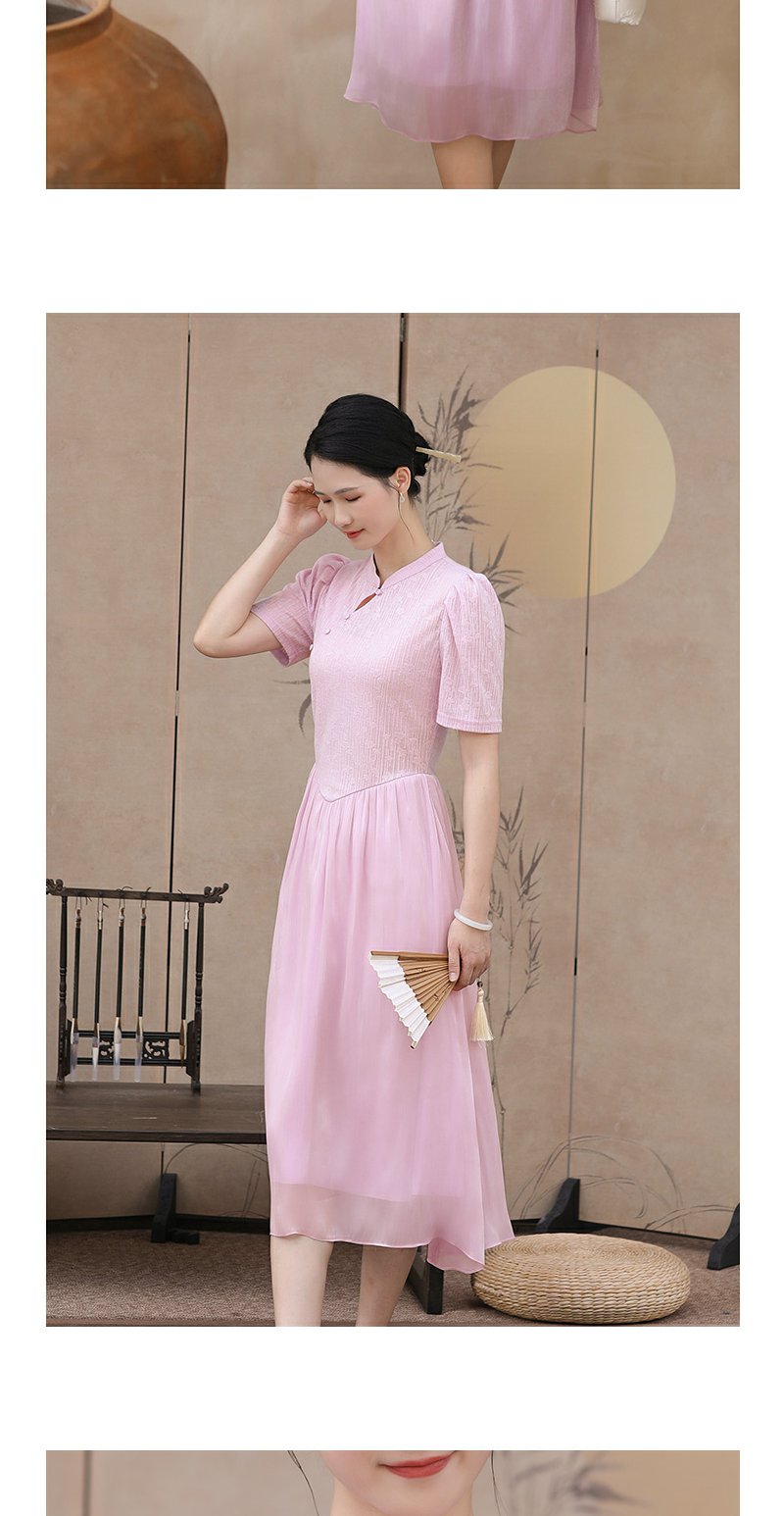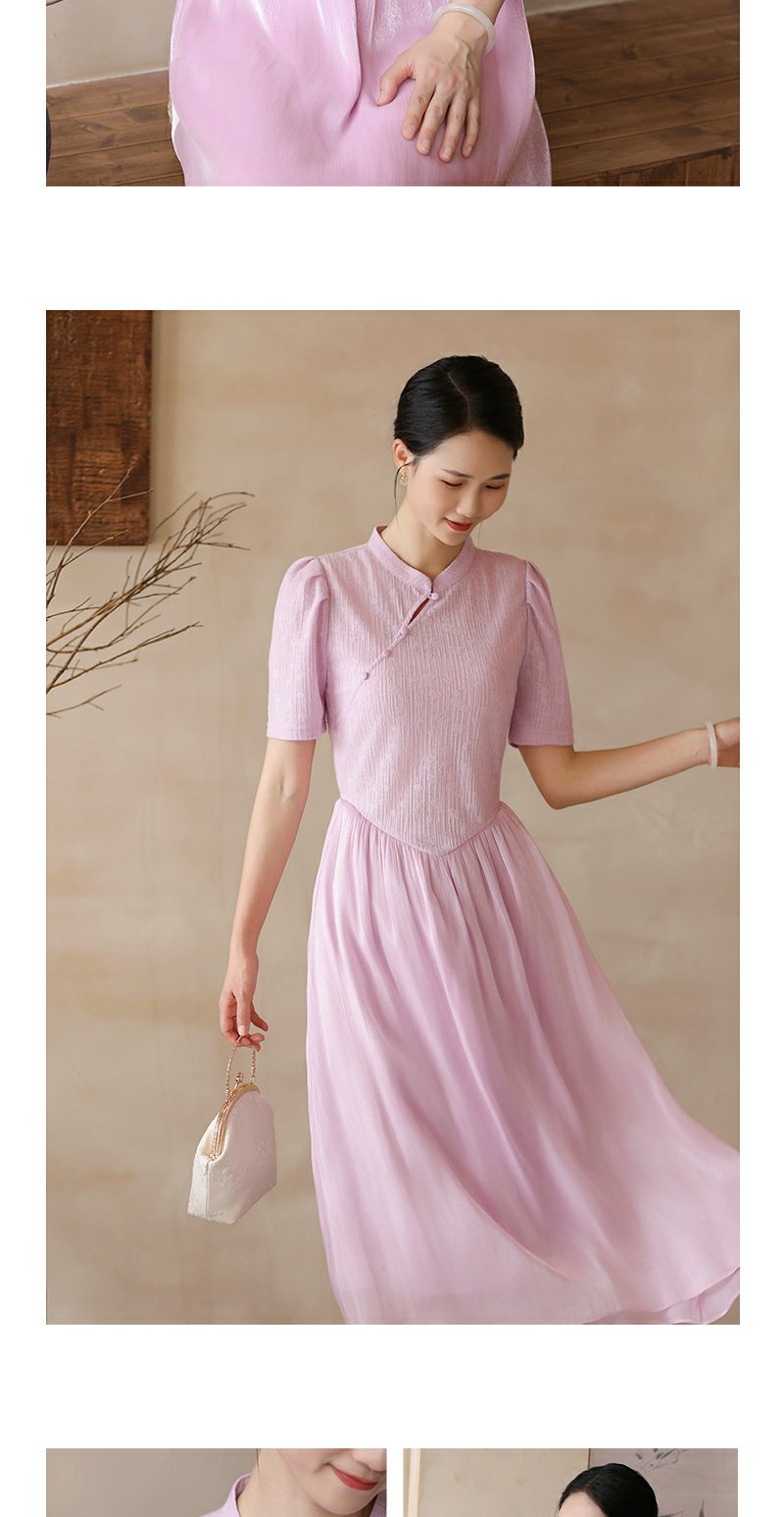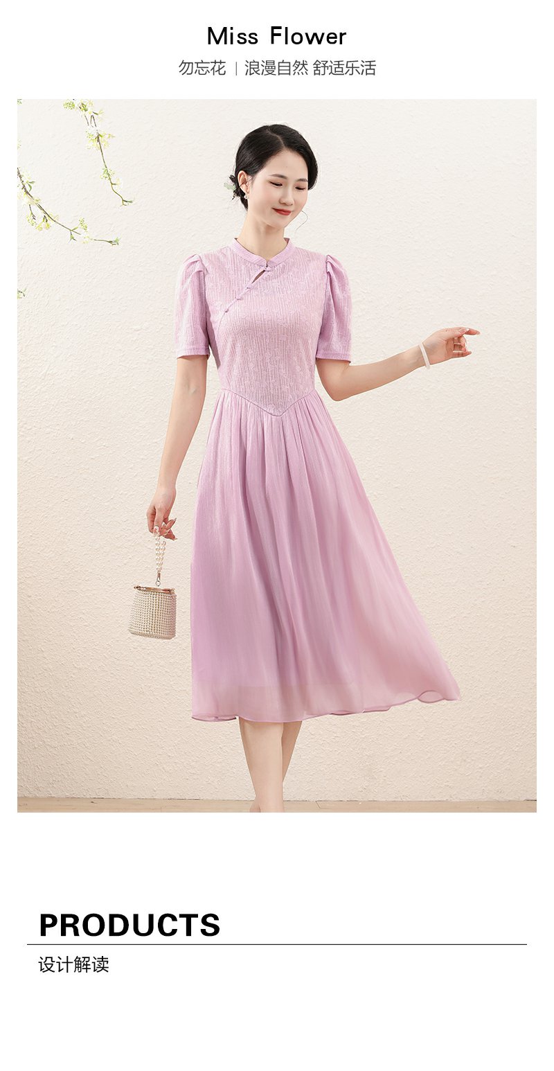 勿忘花粉色新中式连衣裙女2025新款夏季改良旗袍裙气质*风裙子