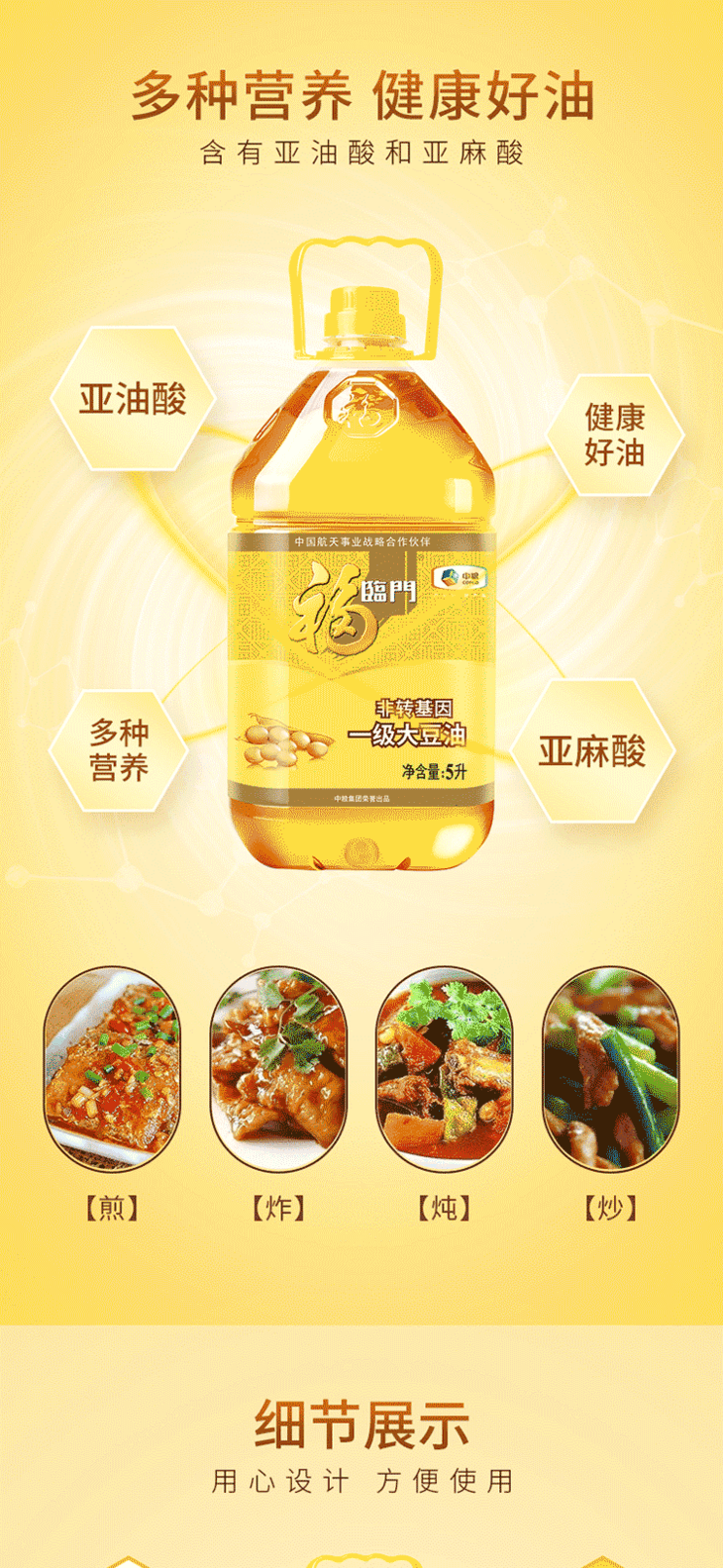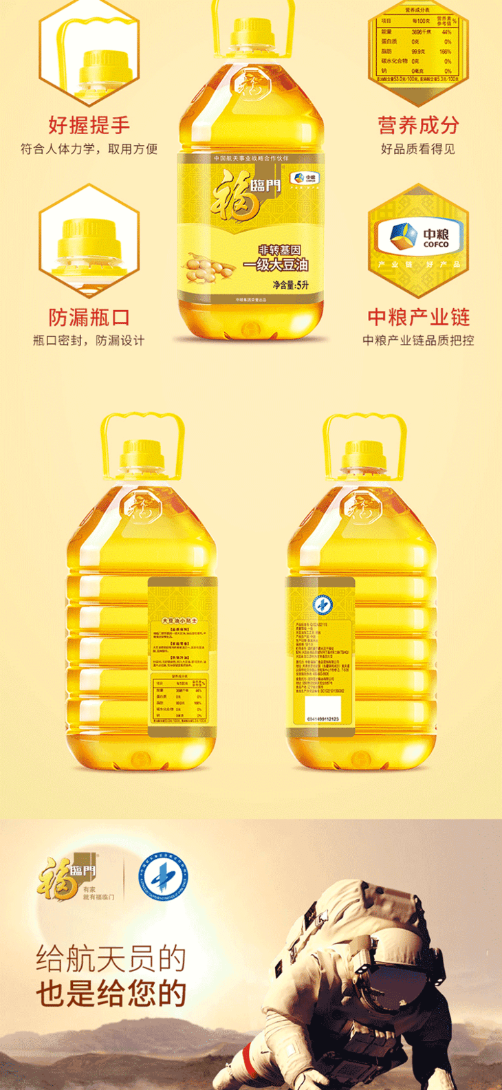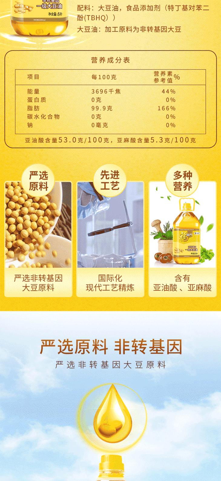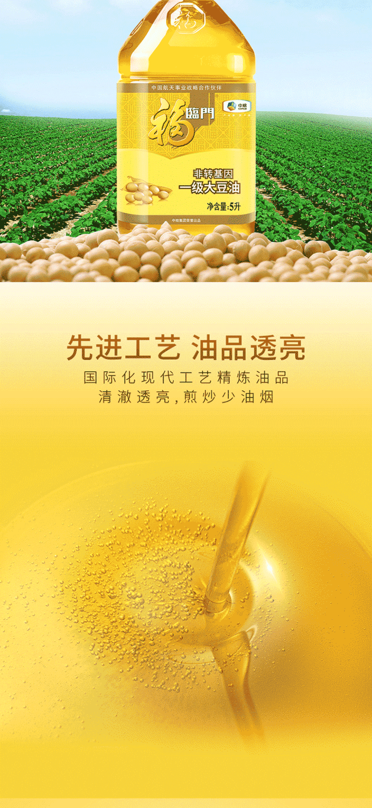 福临门 食用油 非转基因一级大豆油 5L 中粮出品