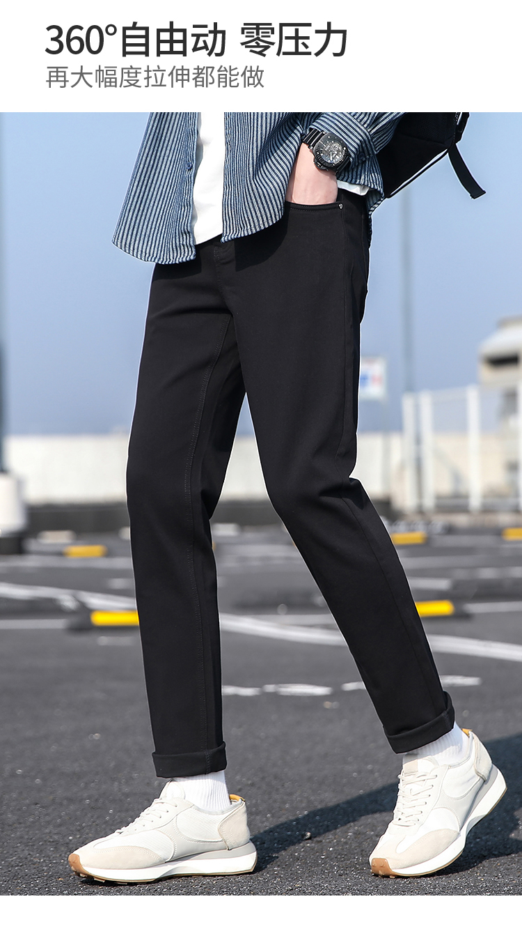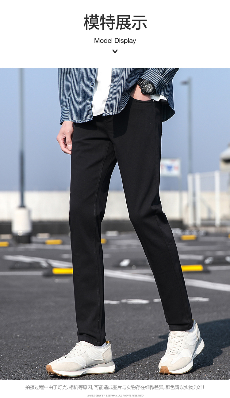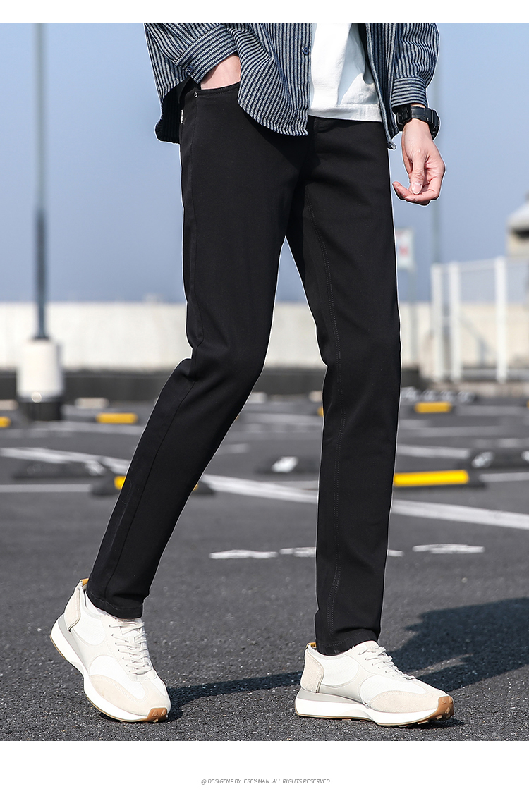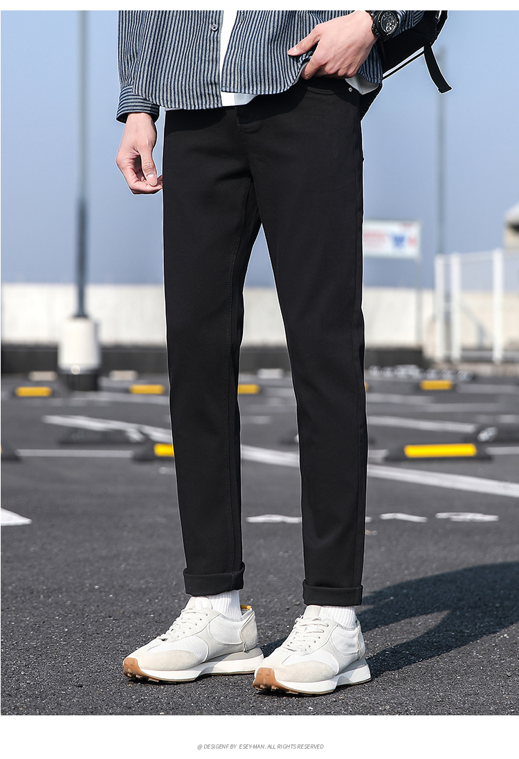 【不易褪色-小黑裤】逸阳秋季男士韩版潮牌弹力修身小脚裤百搭休闲牛仔裤1367