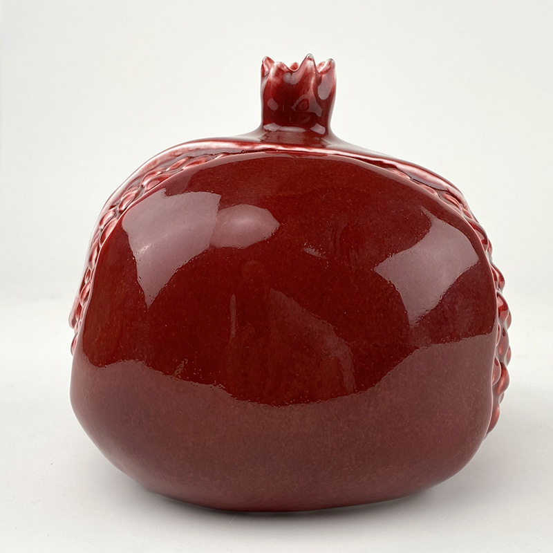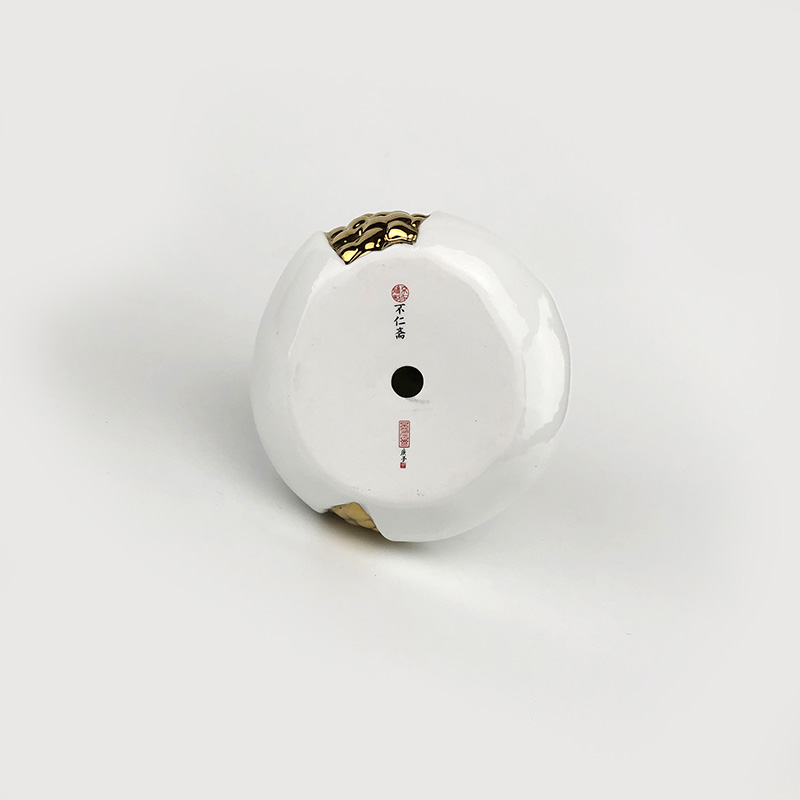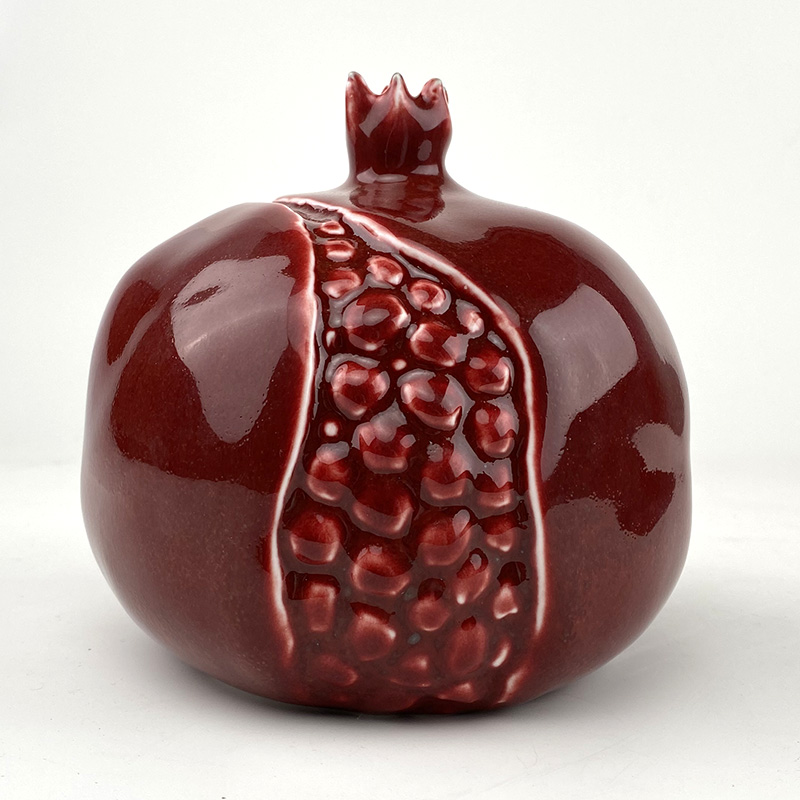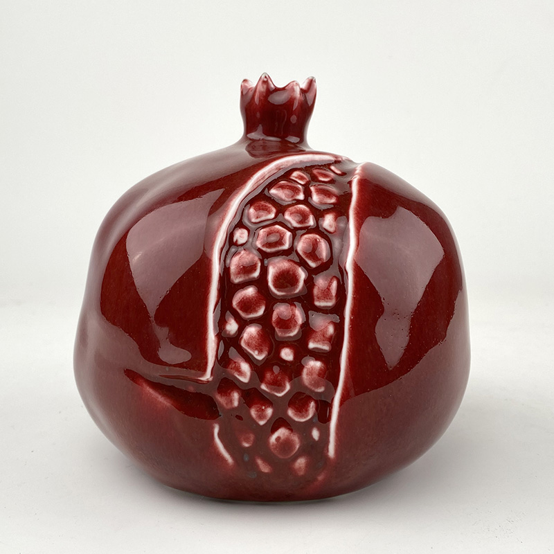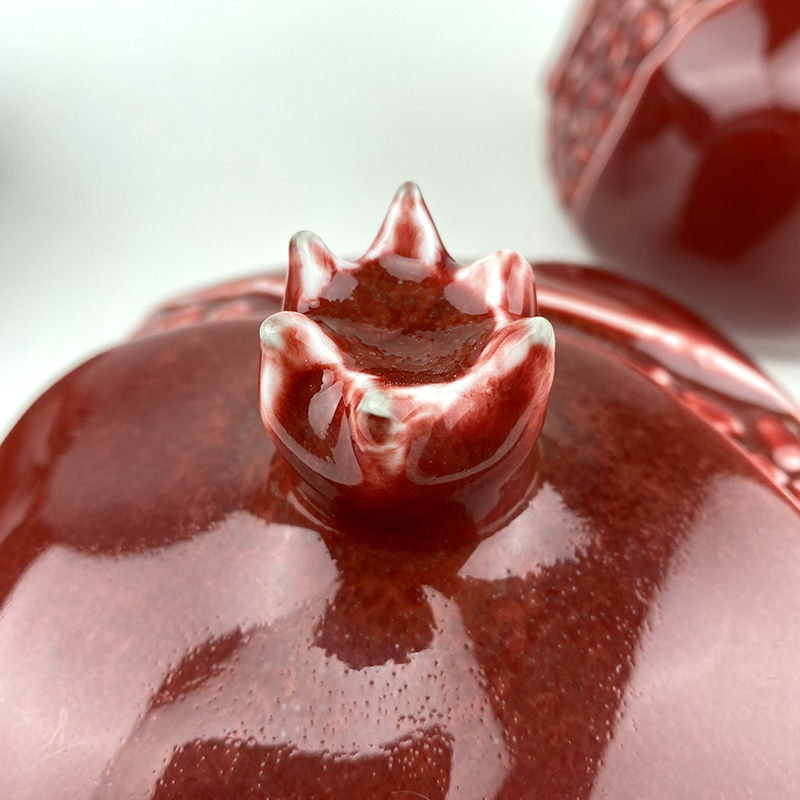 镀金石榴由薛继业老师亲手制作设计,通体高白瓷泥高白釉,开裂出金仔,大气磅礴,石榴在中国一只有吉祥的寓意,多子多福。尺寸:高:15厘米 宽:15厘米镀金石榴朗红石榴