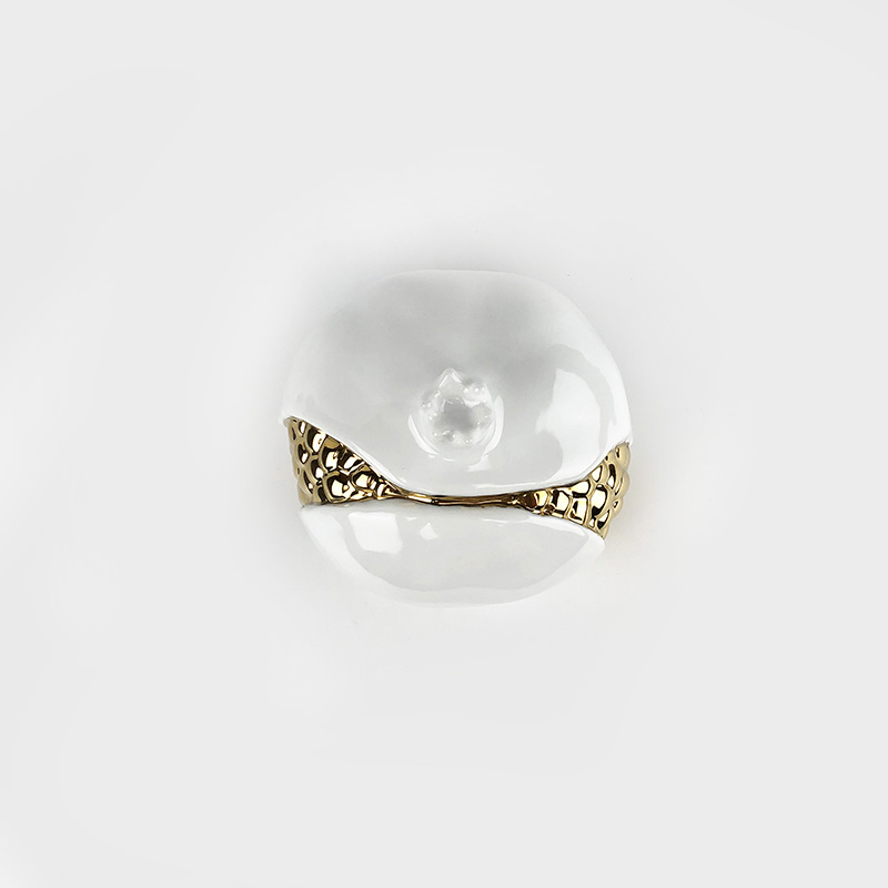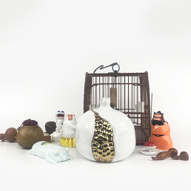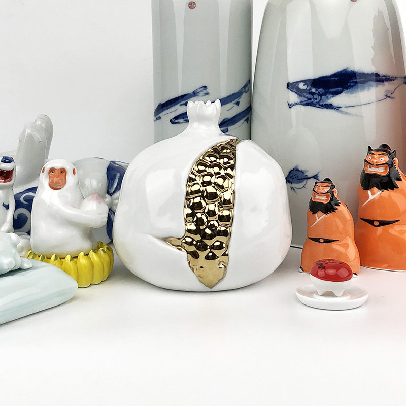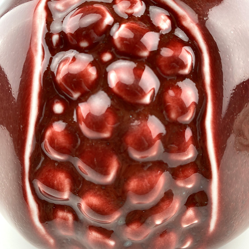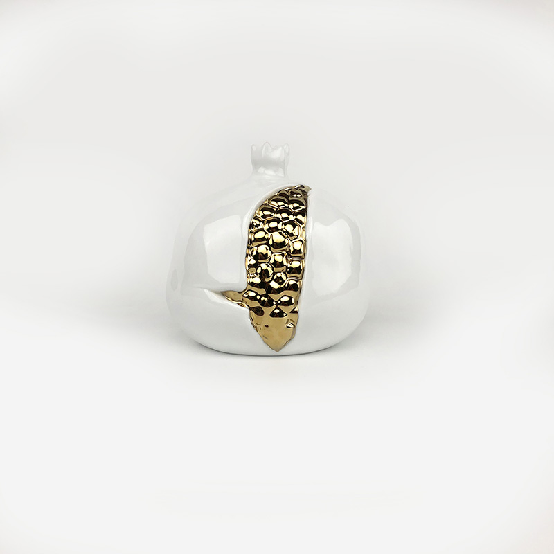 镀金石榴由薛继业老师亲手制作设计,通体高白瓷泥高白釉,开裂出金仔,大气磅礴,石榴在中国一只有吉祥的寓意,多子多福。尺寸:高:15厘米 宽:15厘米镀金石榴朗红石榴