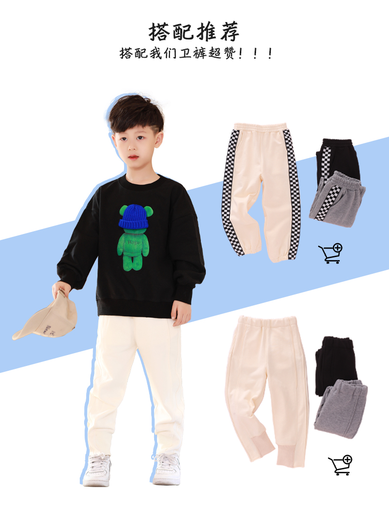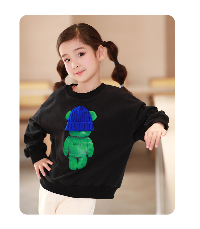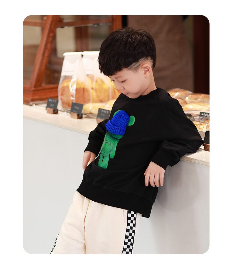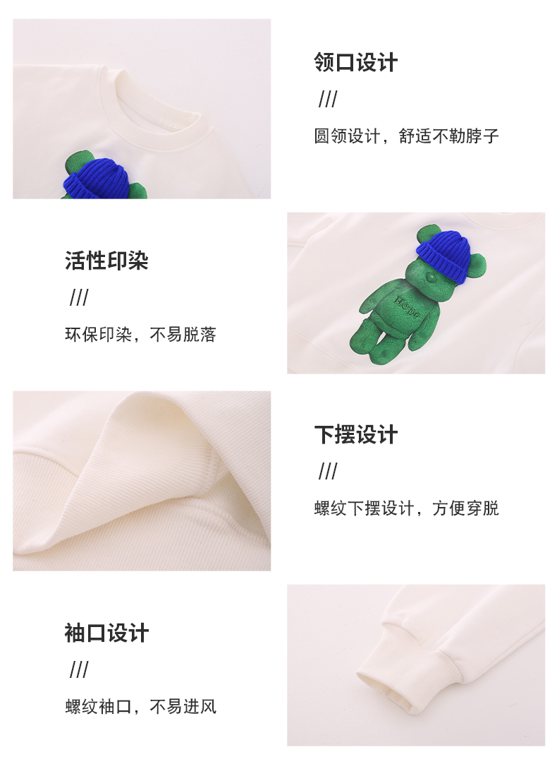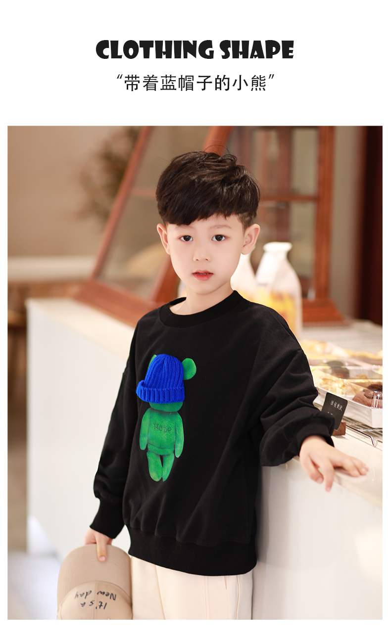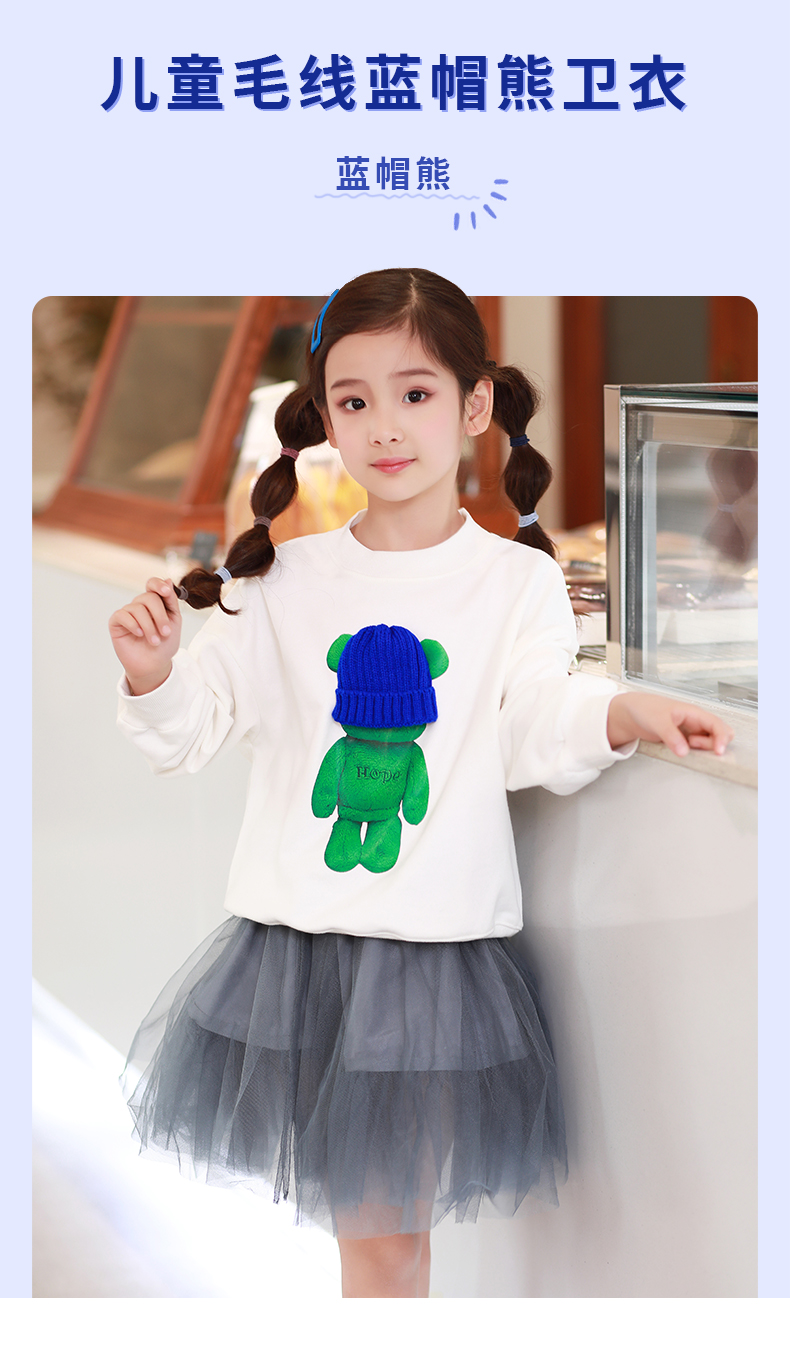 【早春特价清仓】龙之涵 儿童毛线蓝帽熊印花卫衣 全棉 春款中大童套头上衣 婴幼儿A类标准