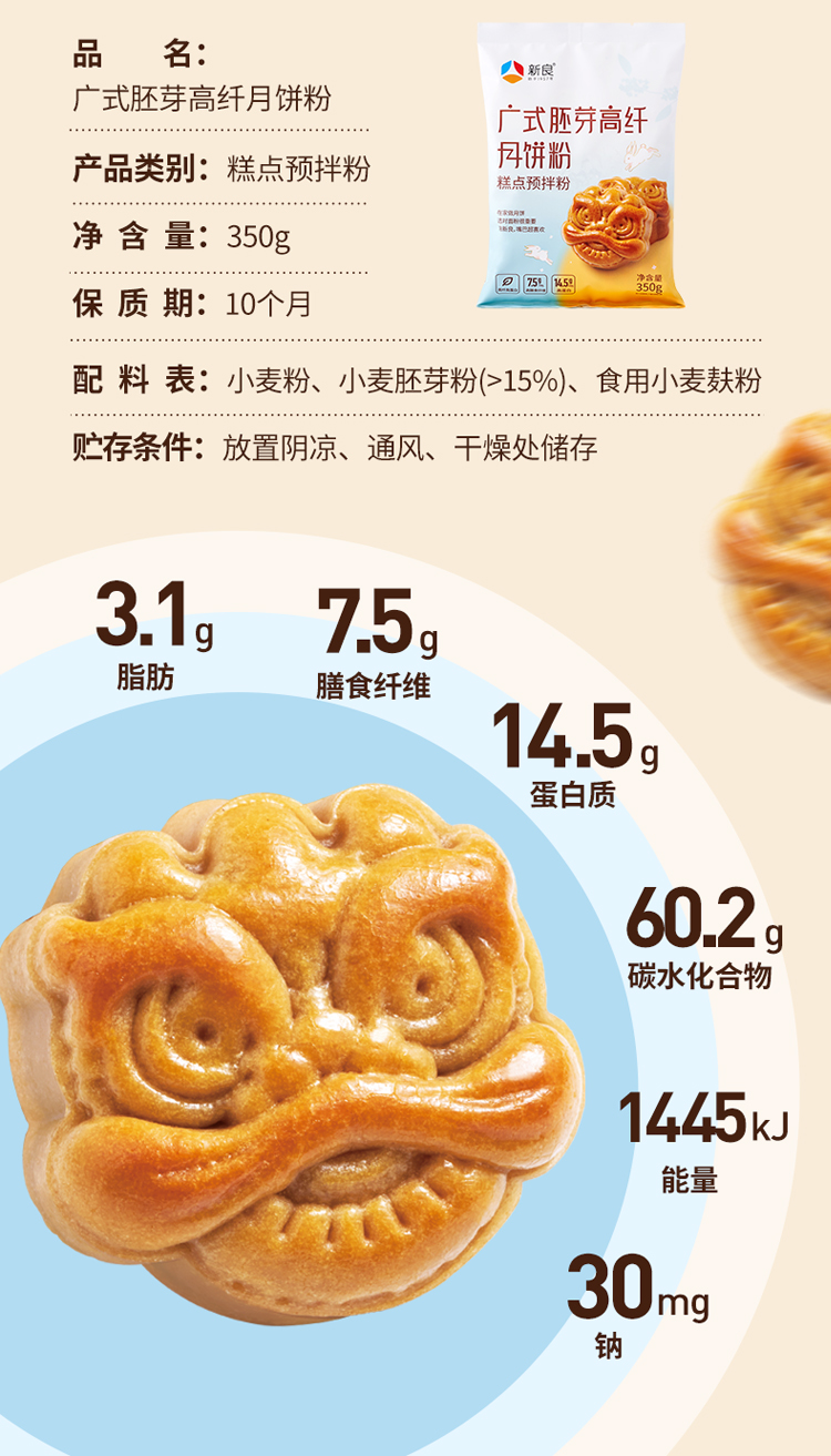 新良广式胚芽高纤月饼粉350g中低筋面粉广式月饼糕点专用烘焙原料