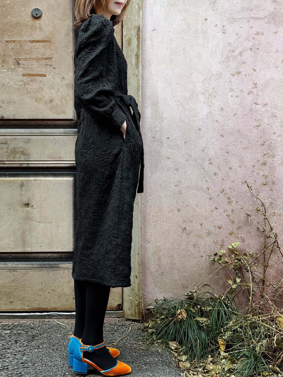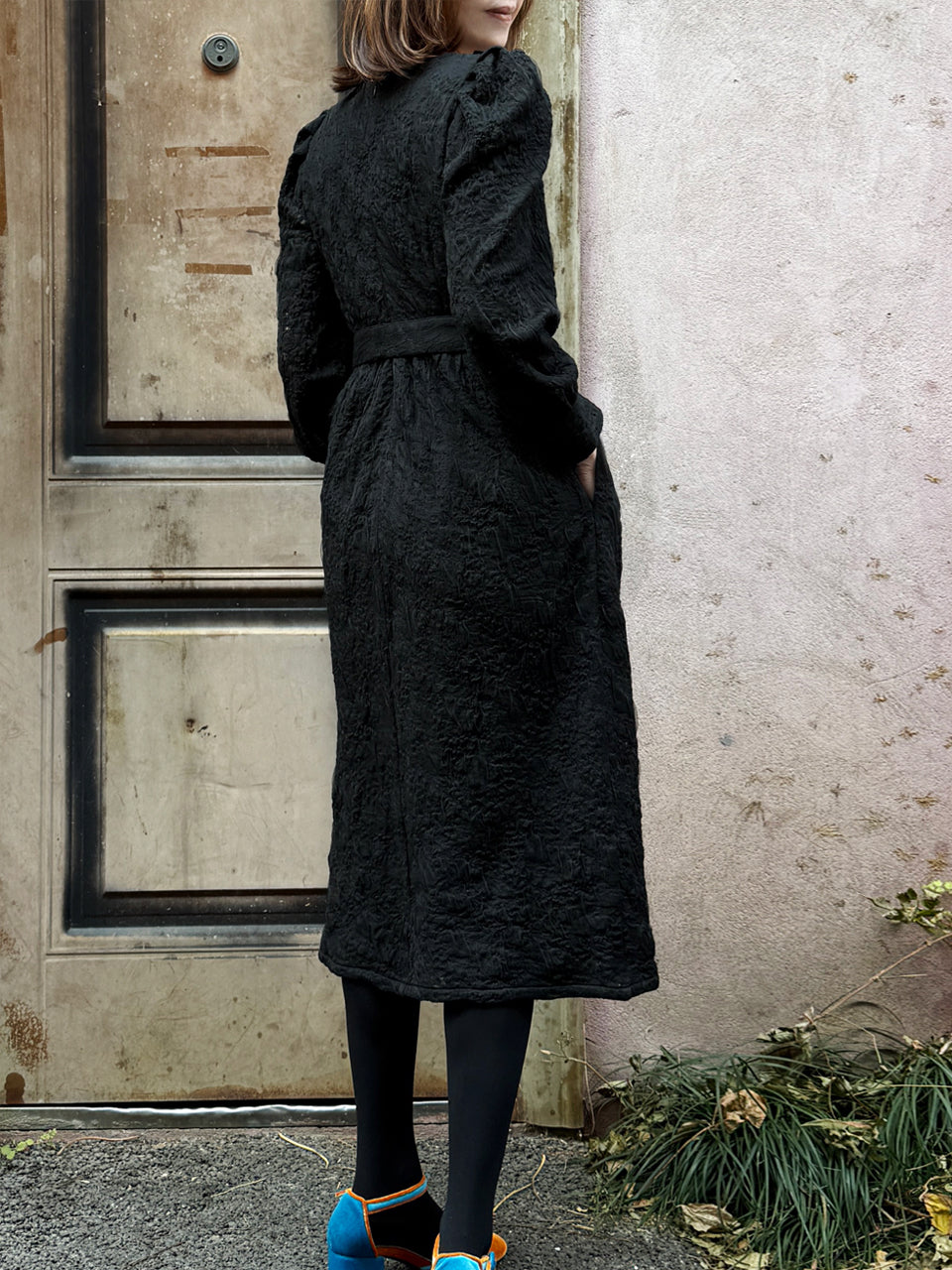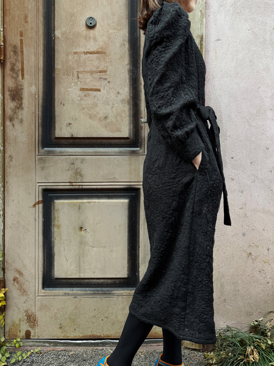 TYNVIE 提花泡泡袖中长连衣裙 - 黑色