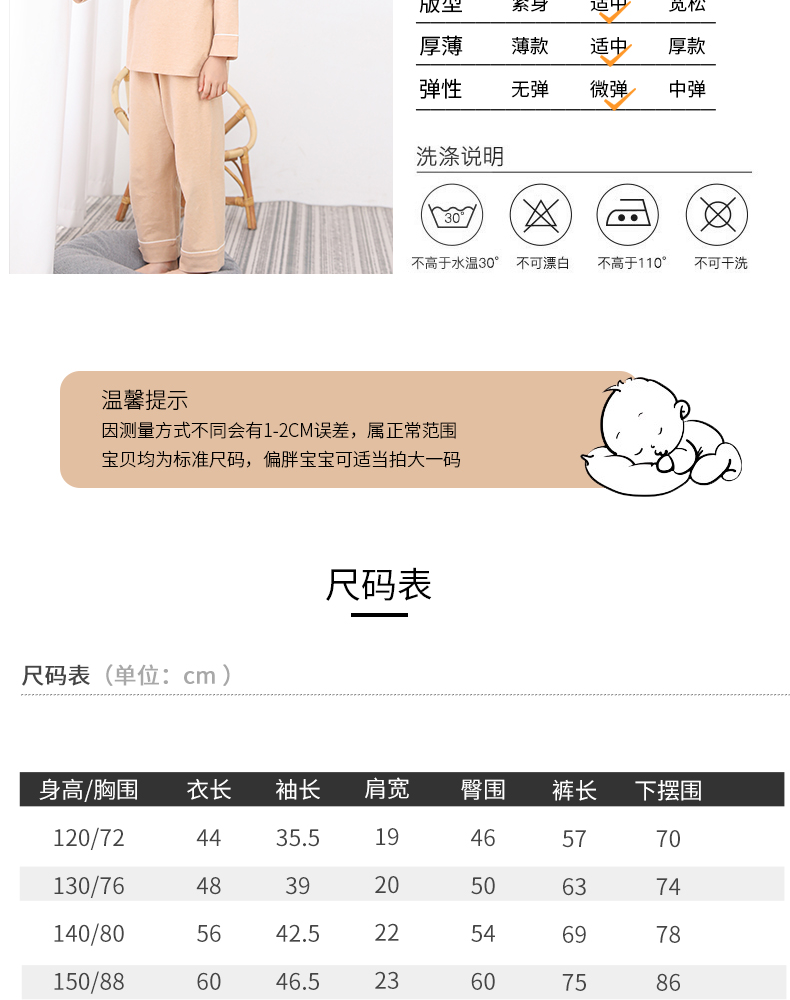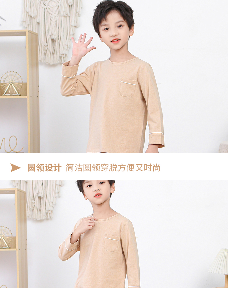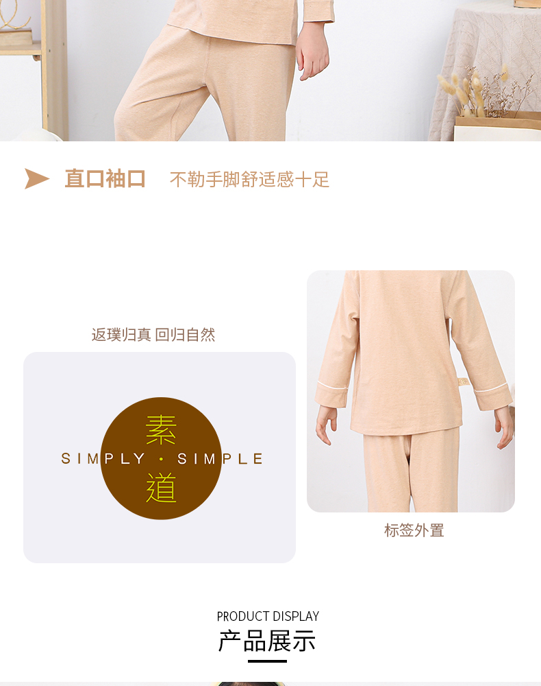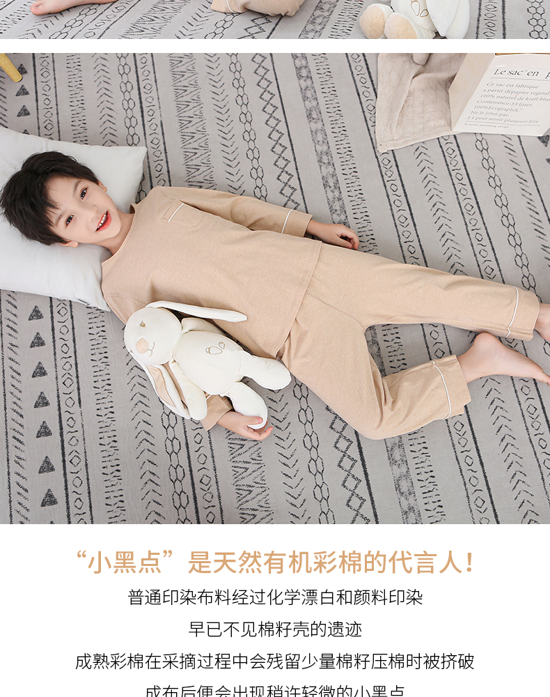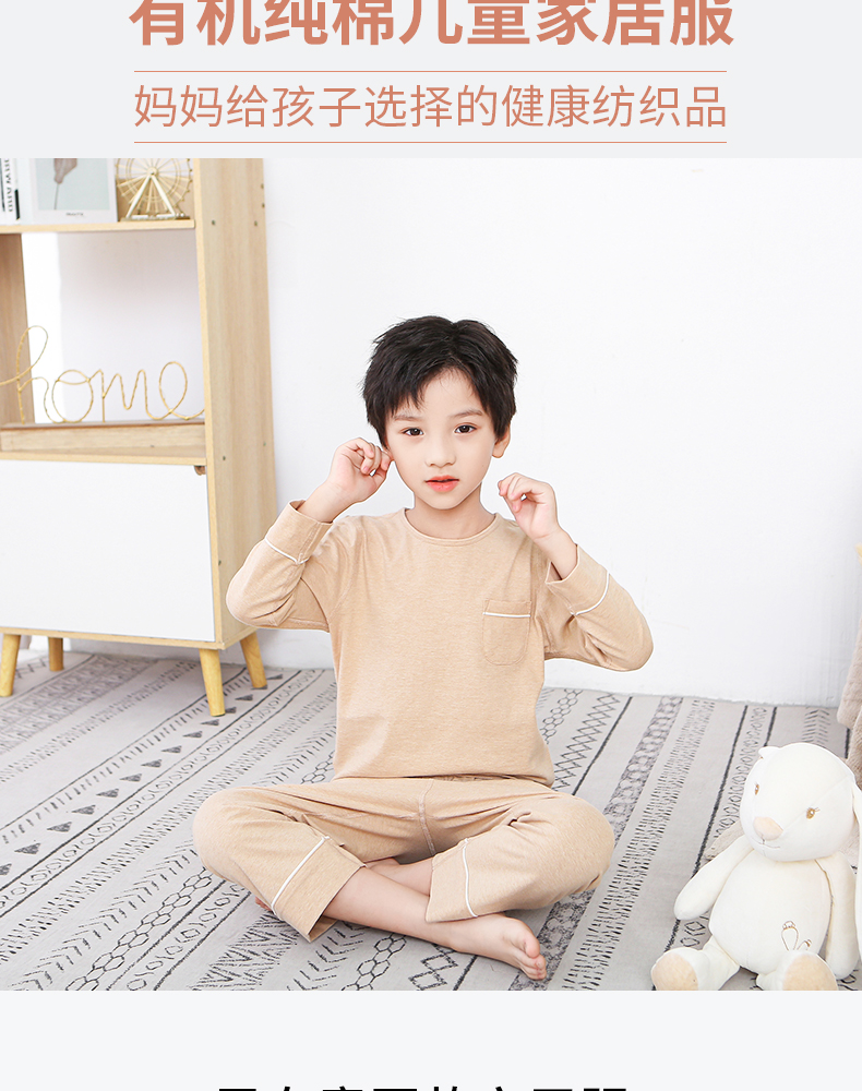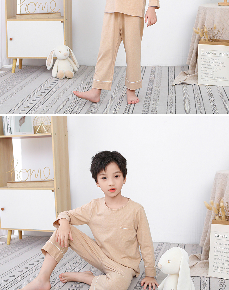 断码清仓 素道天然有机彩棉 儿童纯棉长袖家居服 纯色宝宝居家套装 睡衣