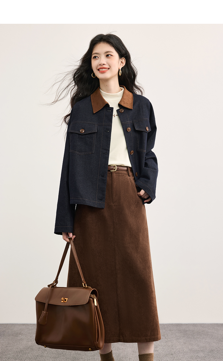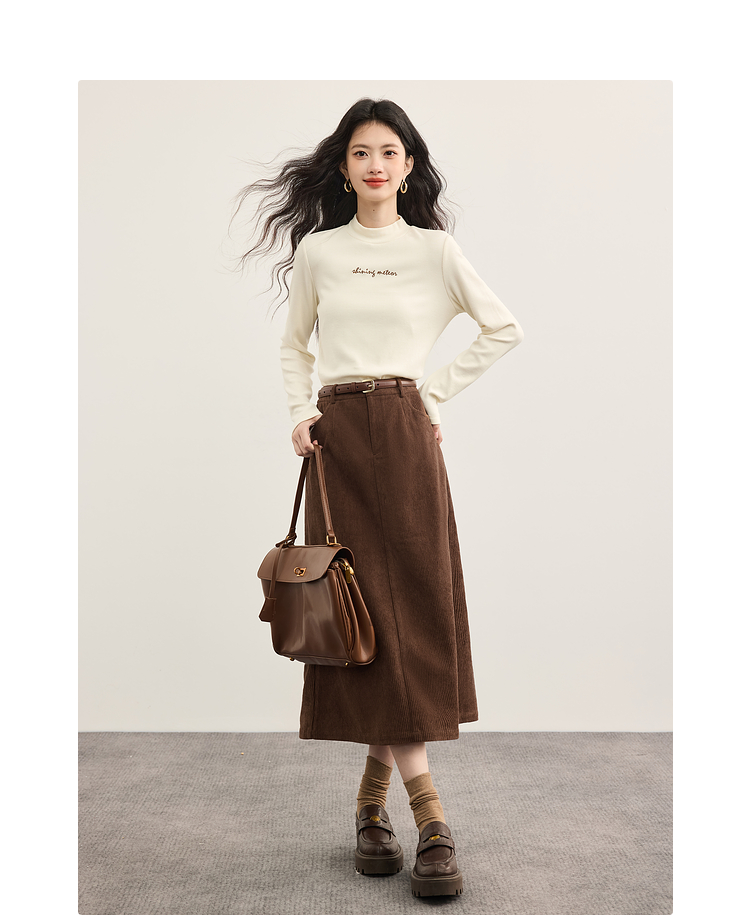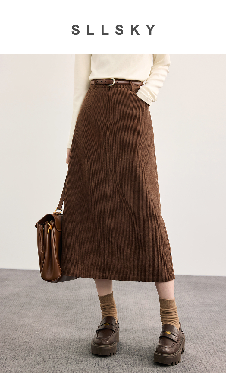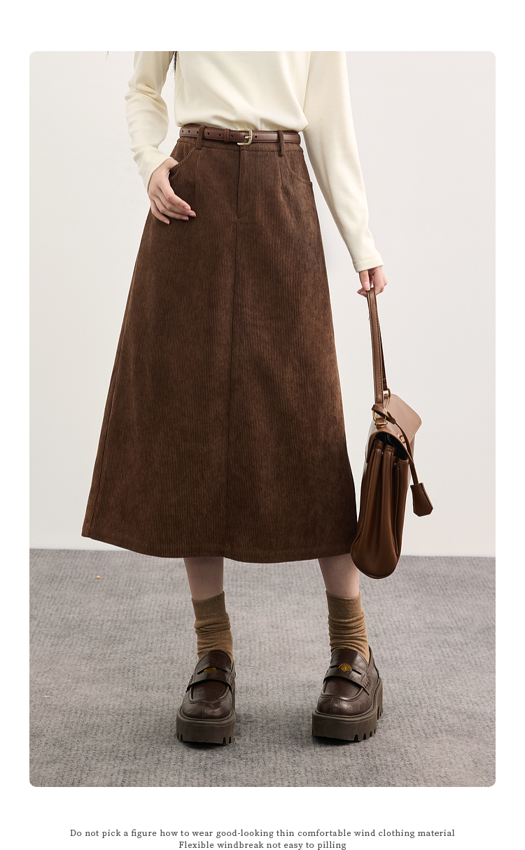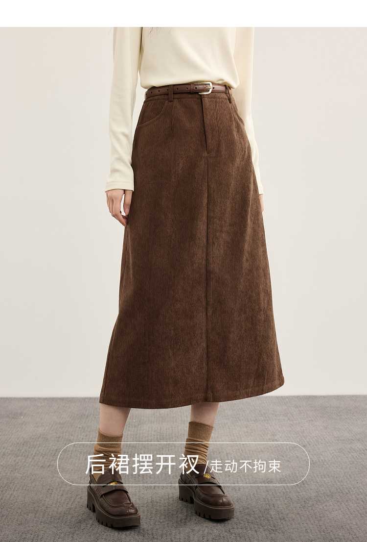 【09/10新品】熙世界摩登复古灯芯绒半身裙女2025秋冬新款美拉德咖色直筒a字裙