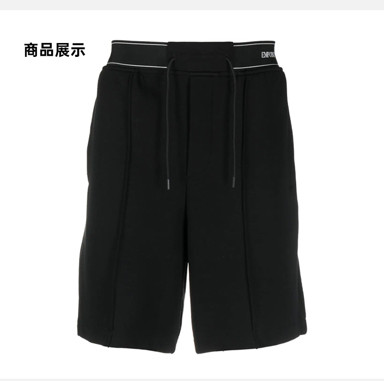 EMPORIO ARMANI 阿玛尼 男士抽绳系带拼接休闲运动短裤 黑色 3R1PZ7 1JHSZ 0999