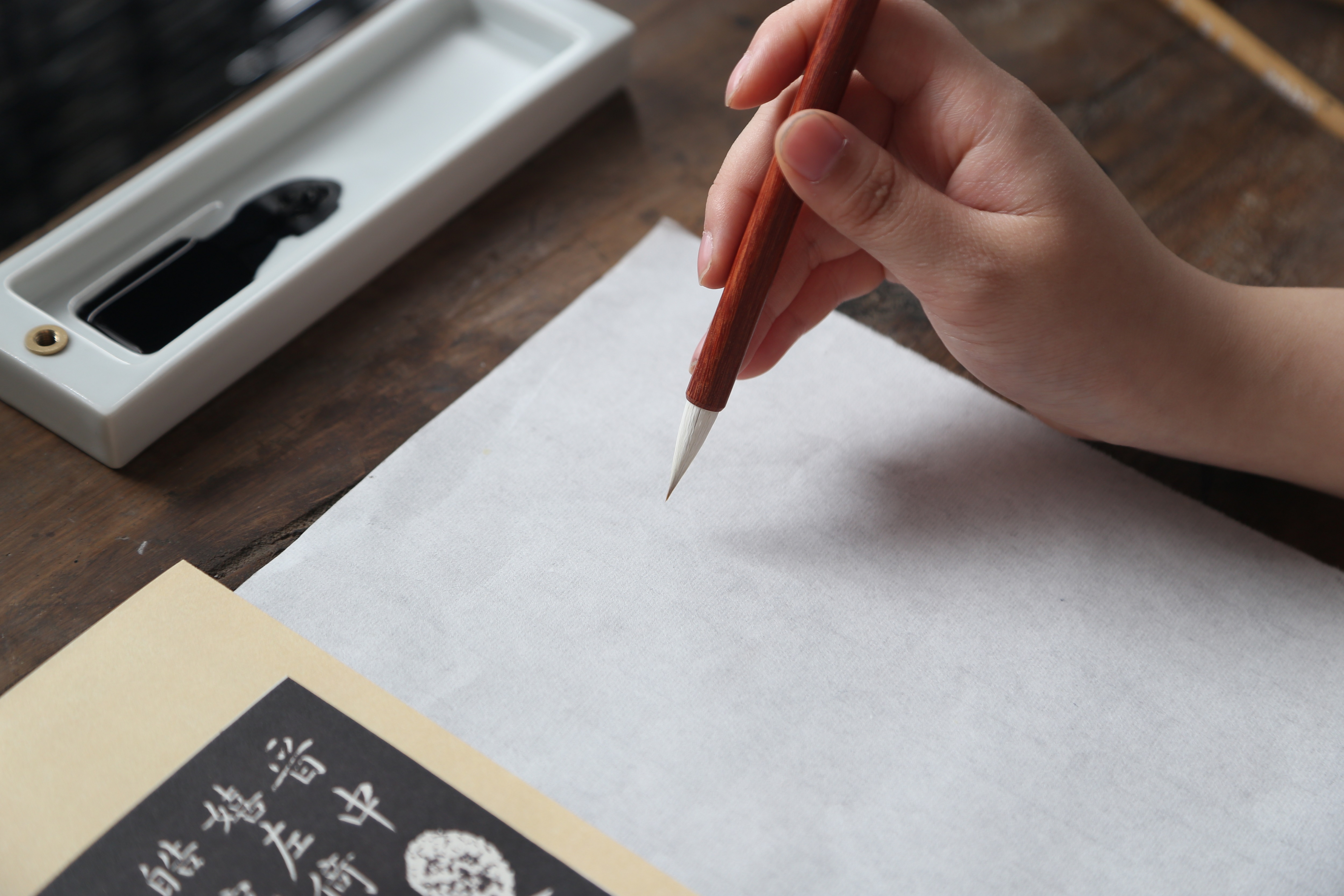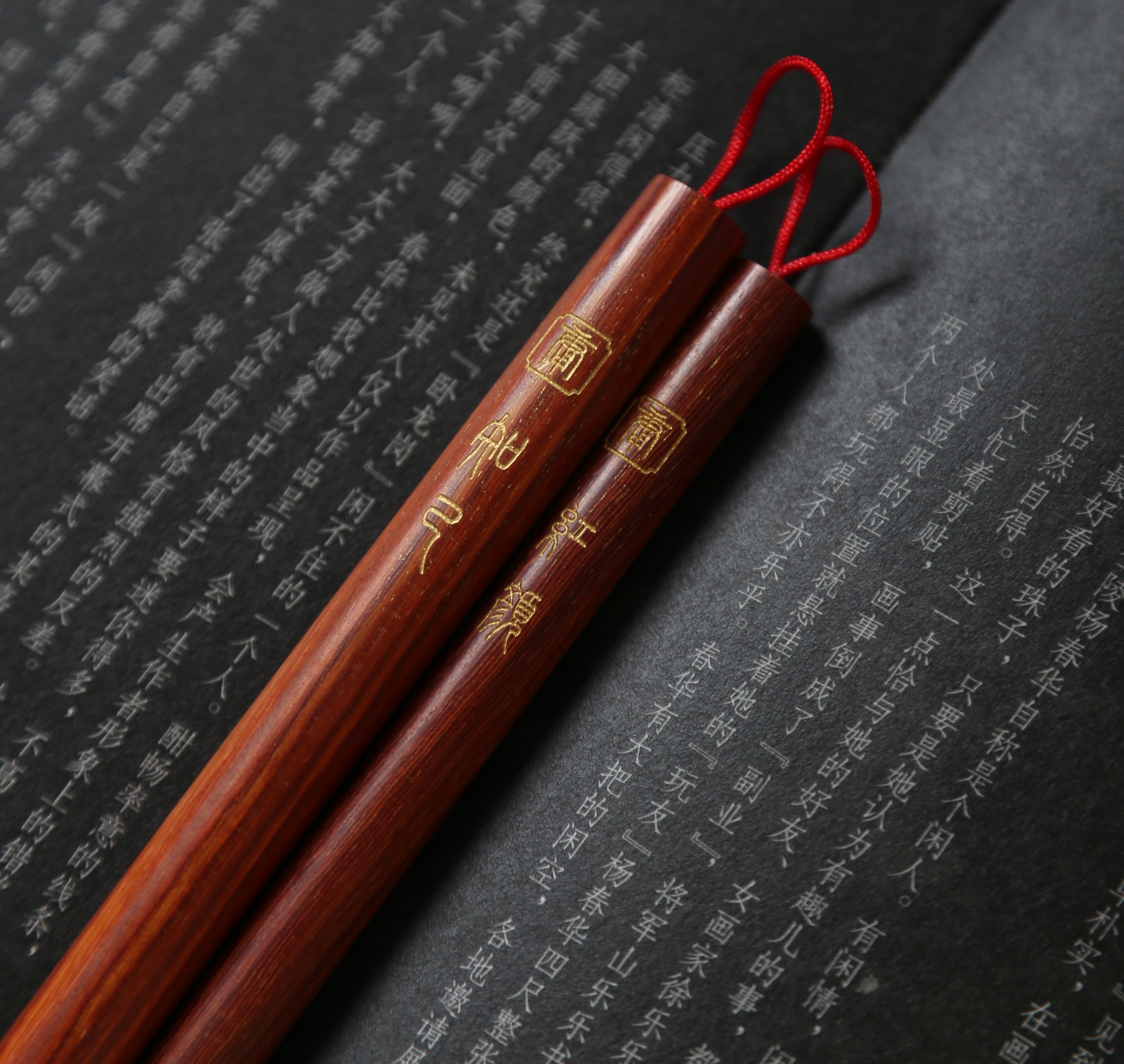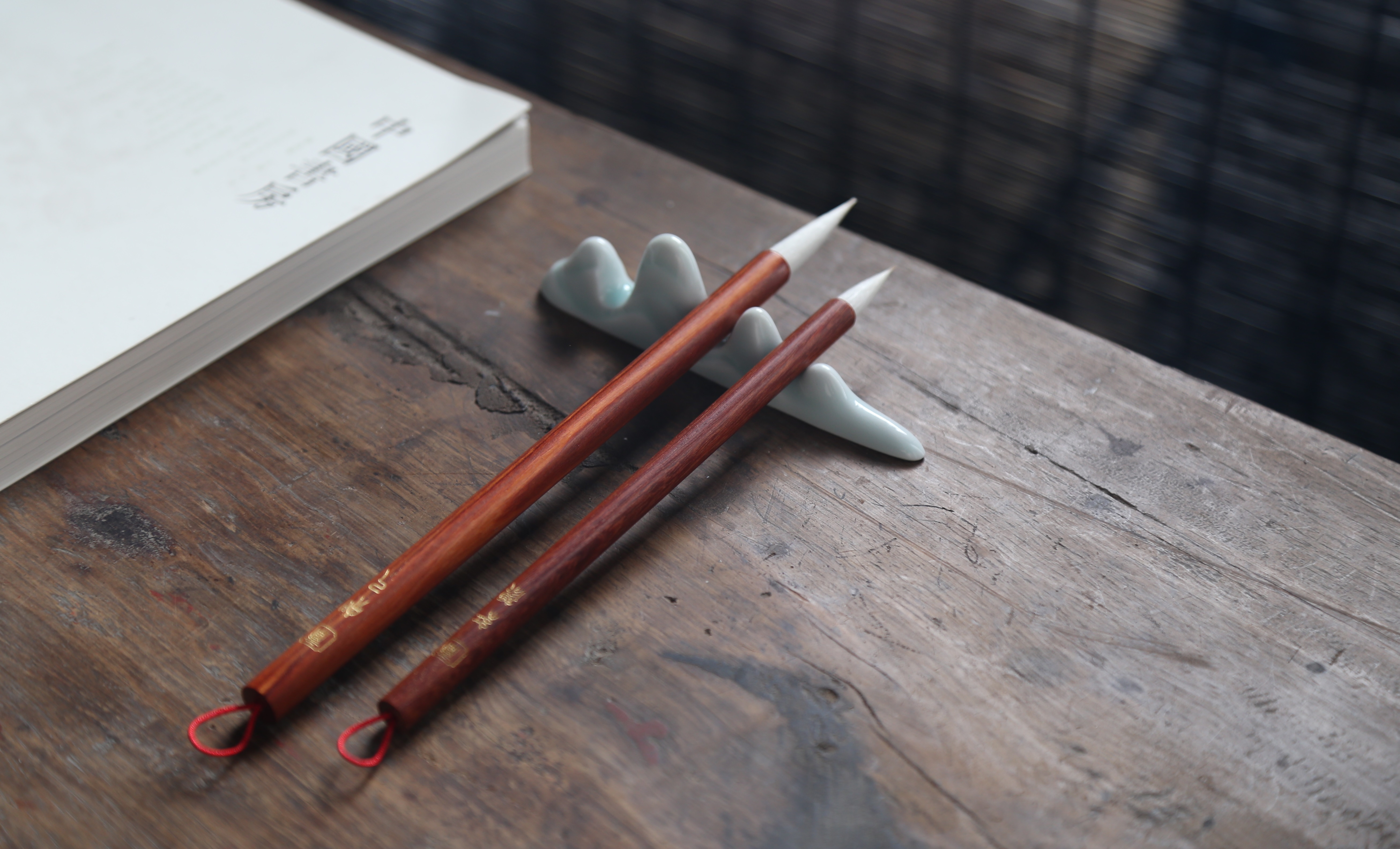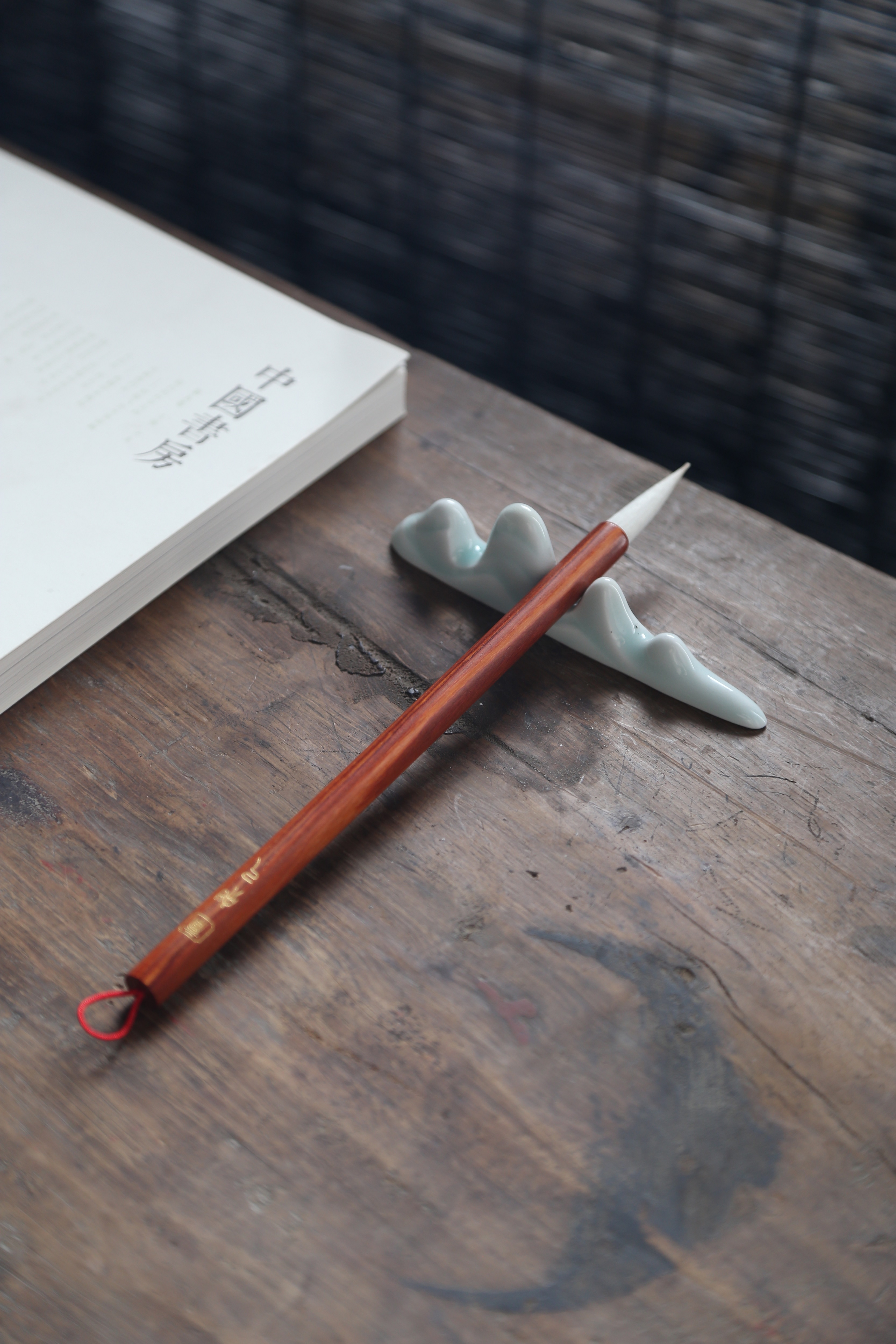 采用红檀木精制笔杆,非镂空,比一般竹杆笔更易于控笔。